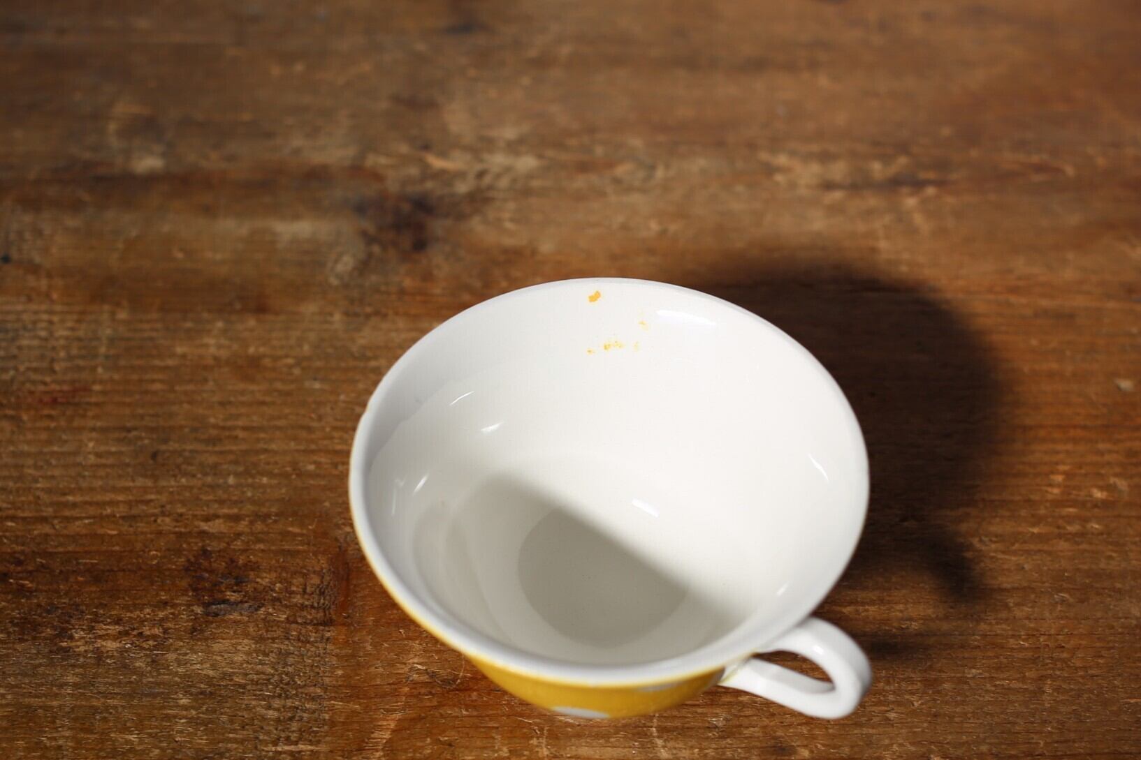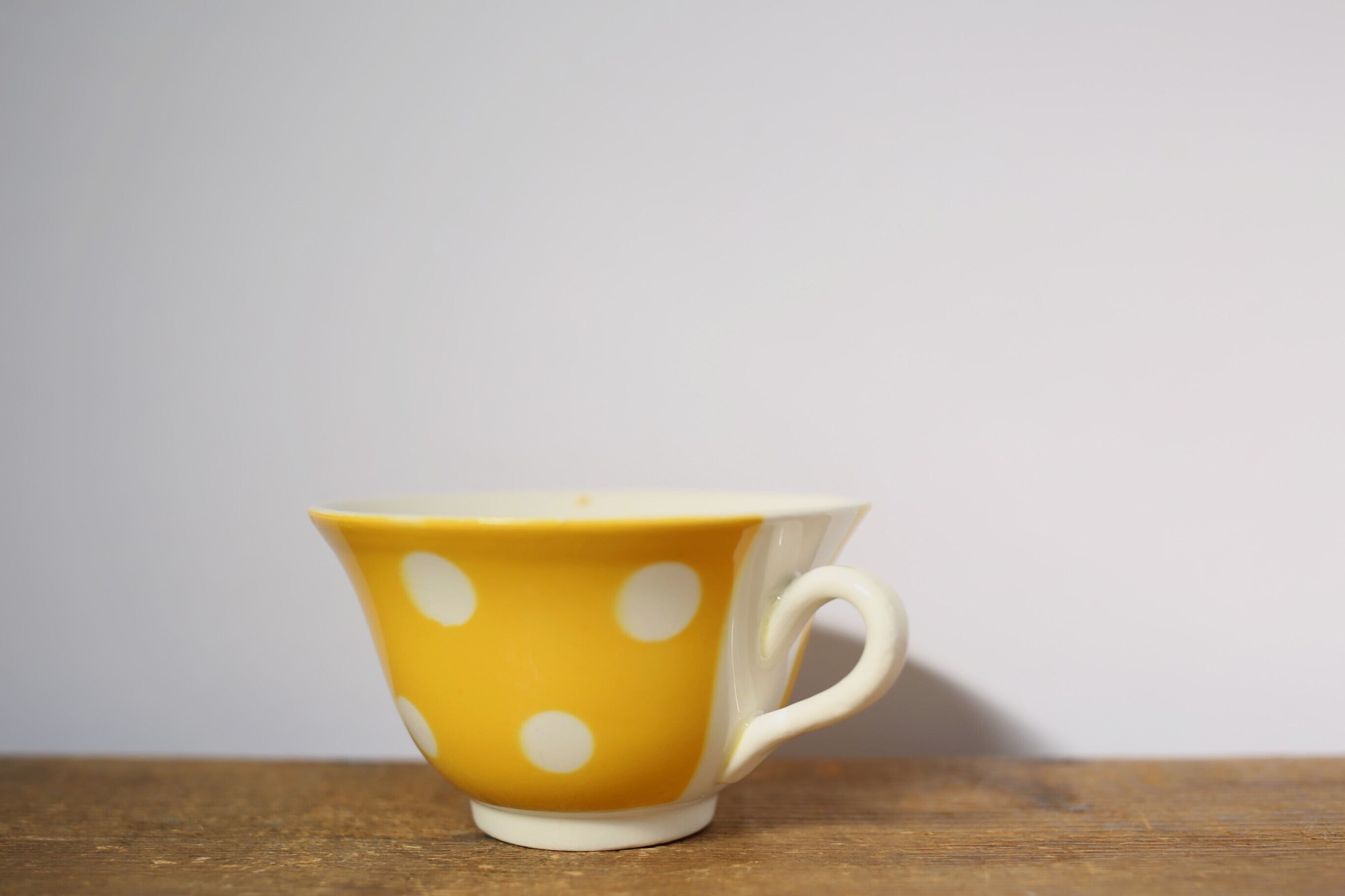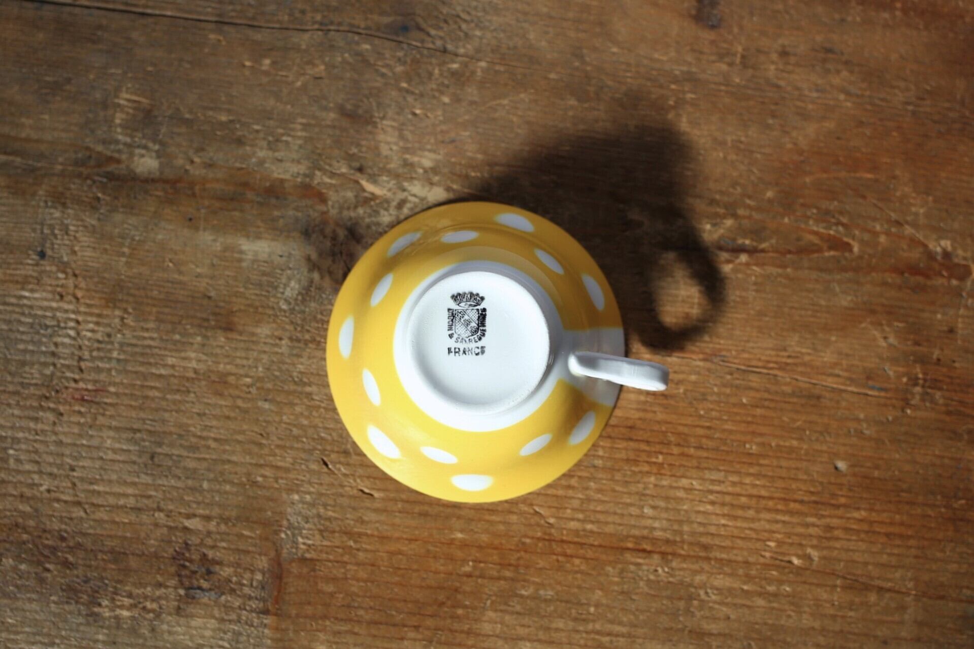 フランス アンティーク ヴィンテージ DIGOIN&SARREGUEMINES サルグミンヌ カップ 黄色 水玉 N-06166