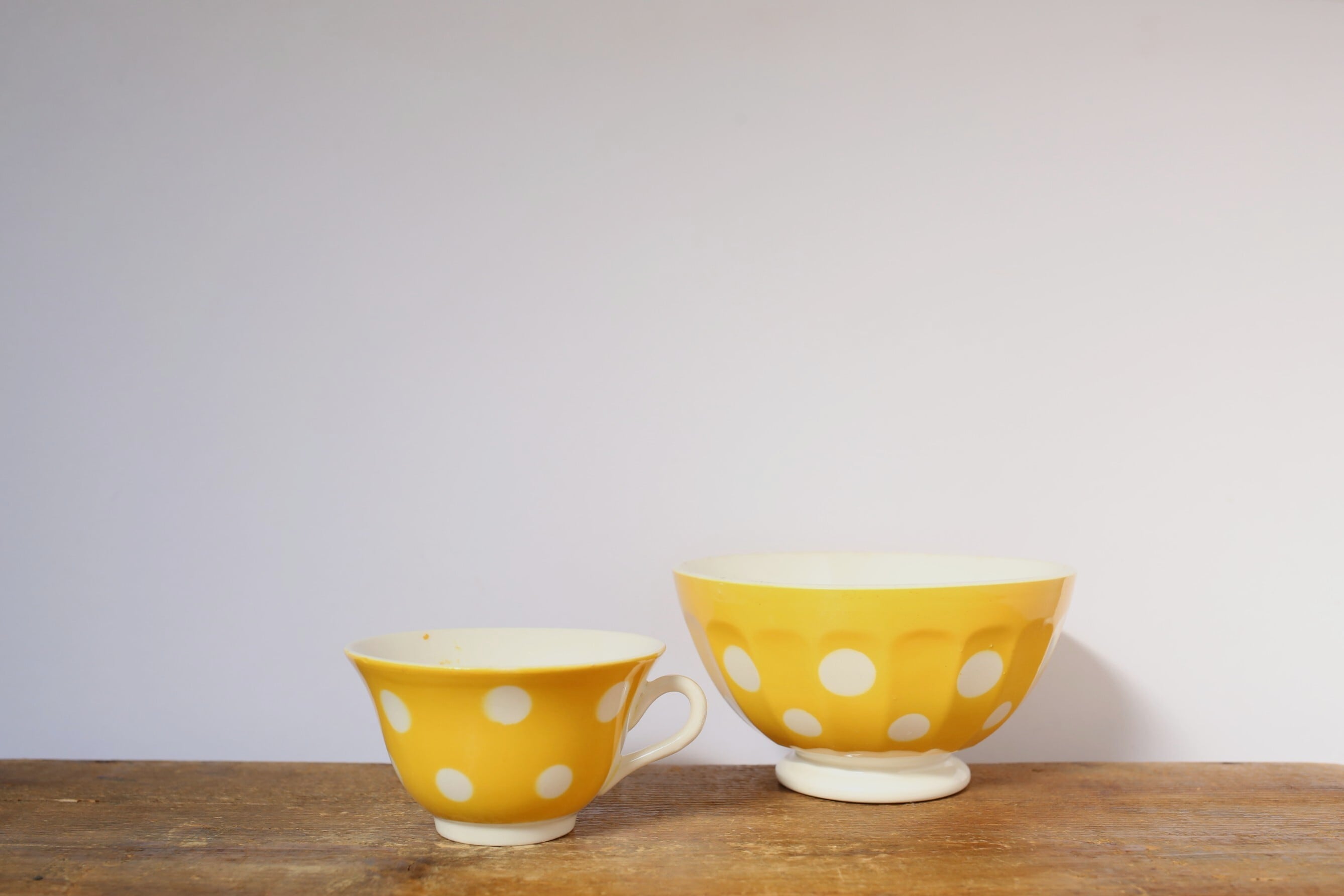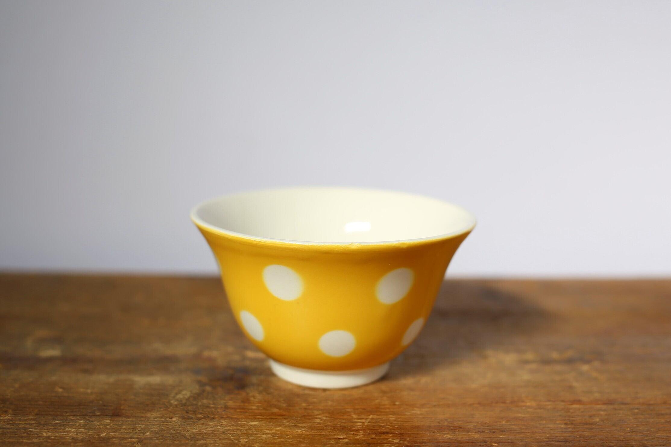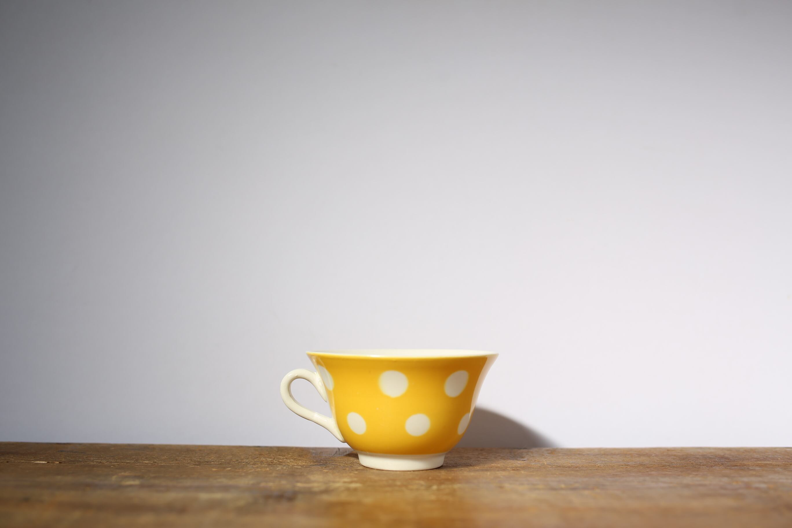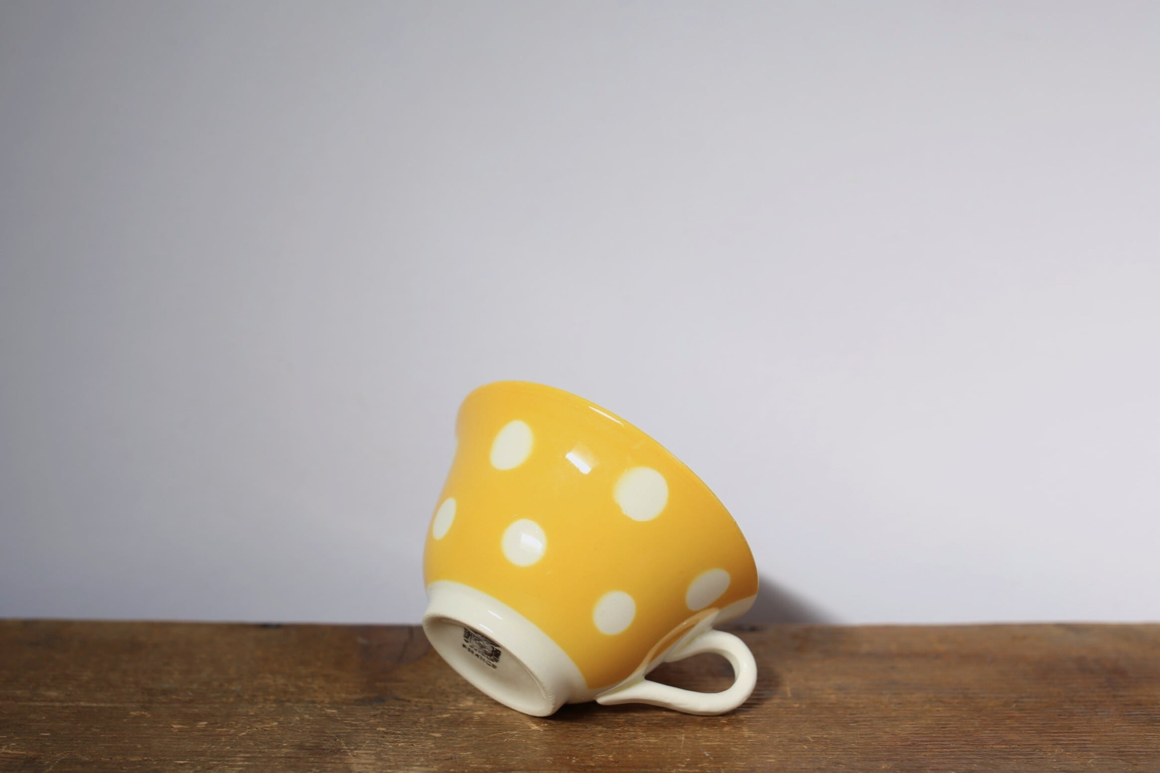 フランス アンティーク ヴィンテージ DIGOIN&SARREGUEMINES サルグミンヌ カップ 黄色 水玉 N-06166