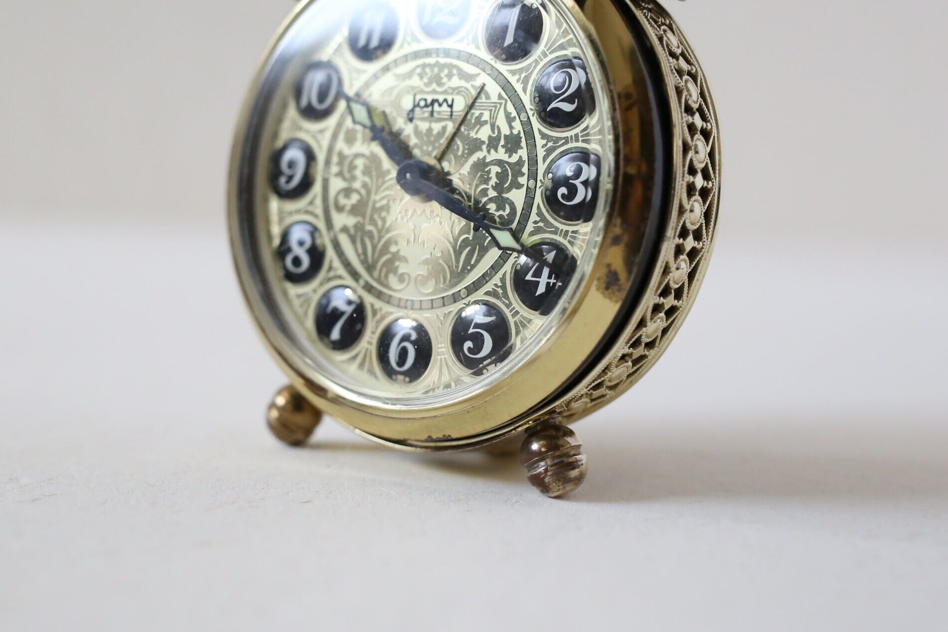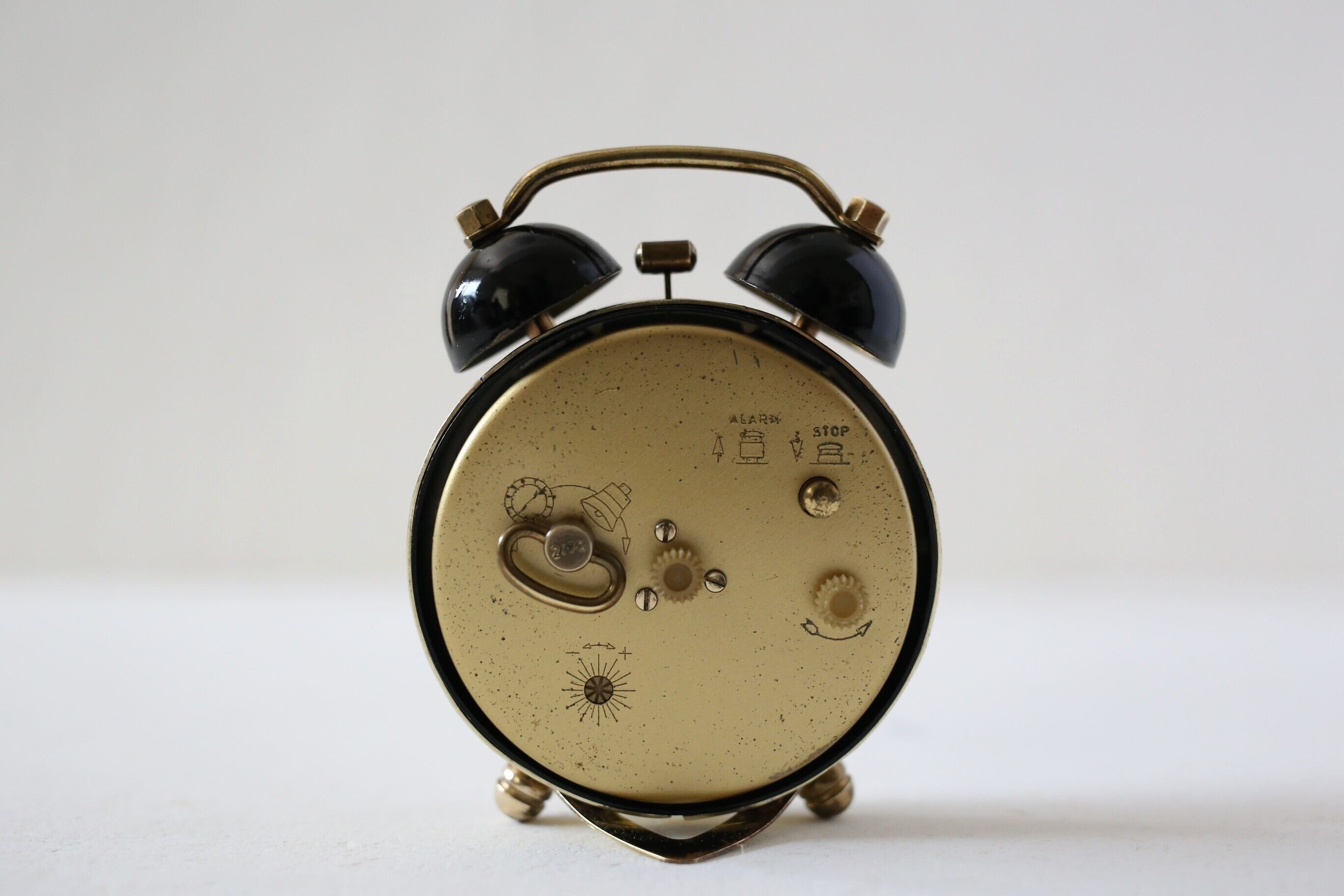 今でもゼンマイを巻けばカチカチと動きだし、上部のベルを打ち鳴らすタイプのアラームも機能しています。