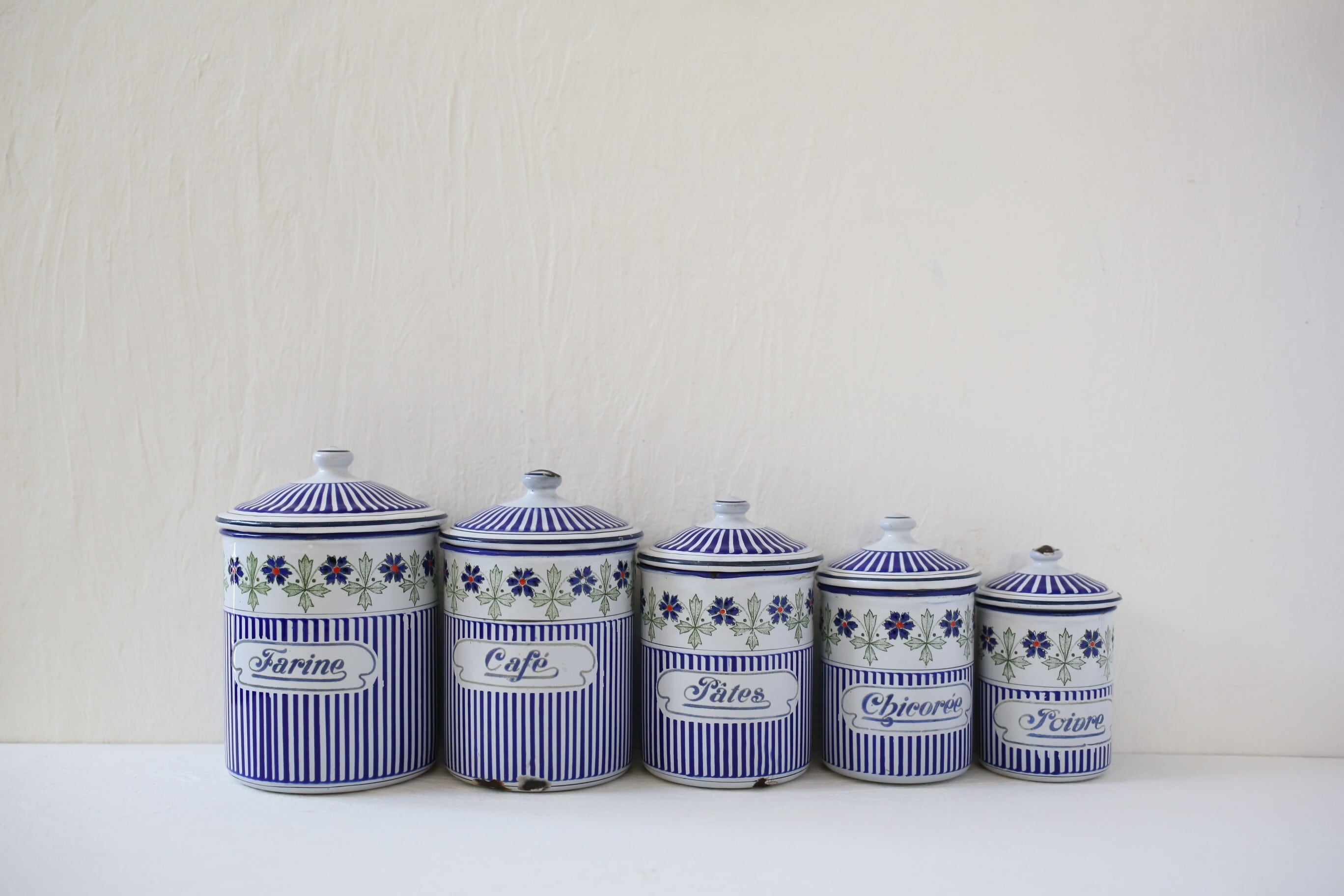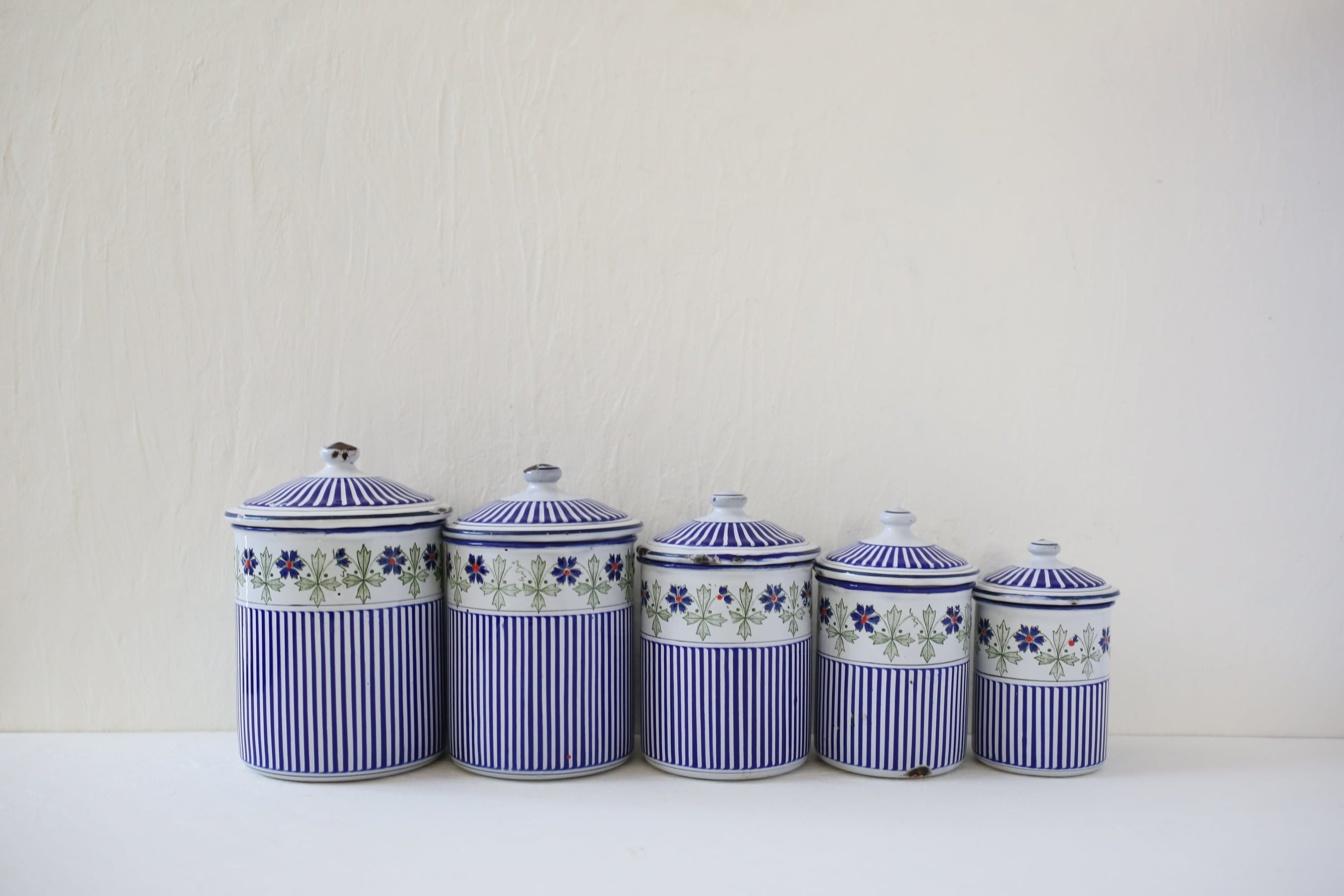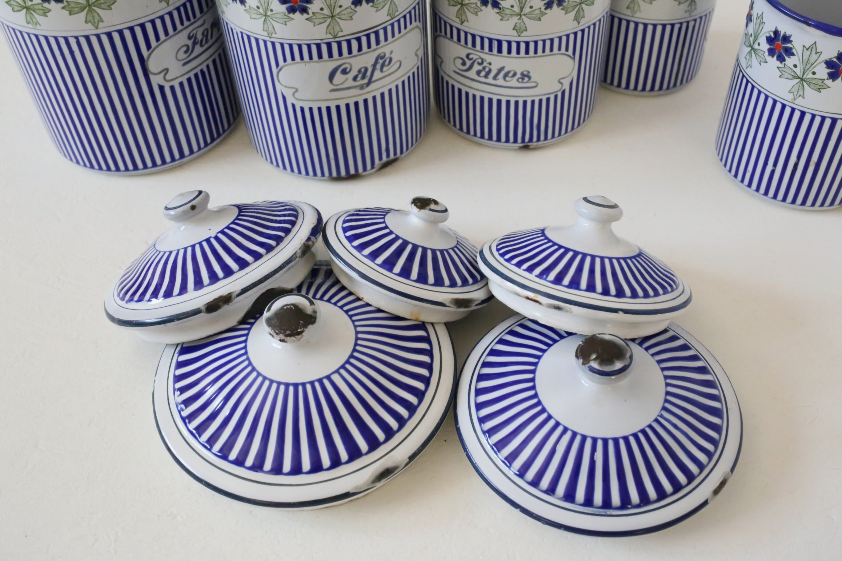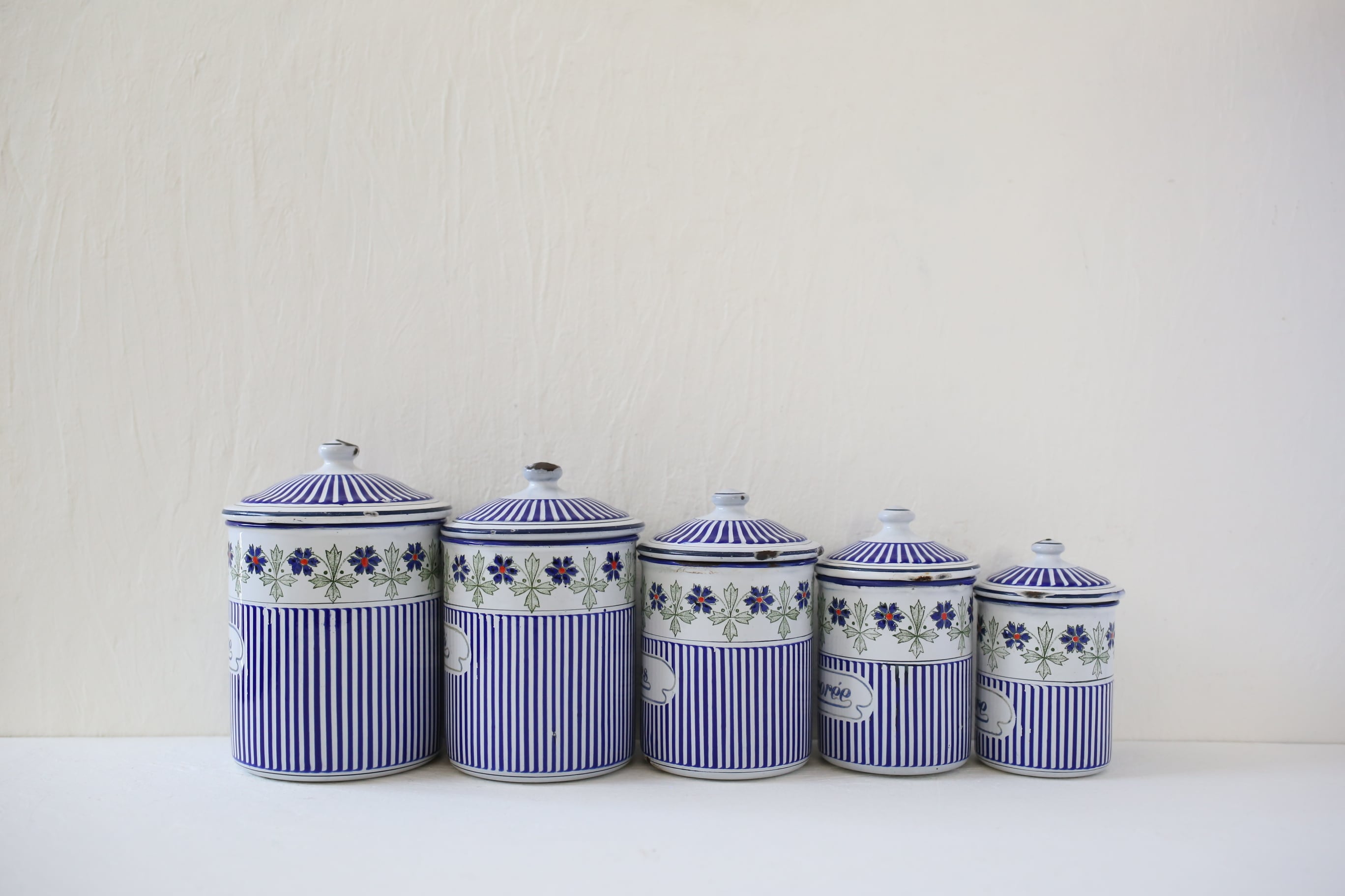 フランス アンティーク BB社 ホーロー キャニスター ブルー ガーランド 5個セット N-06172