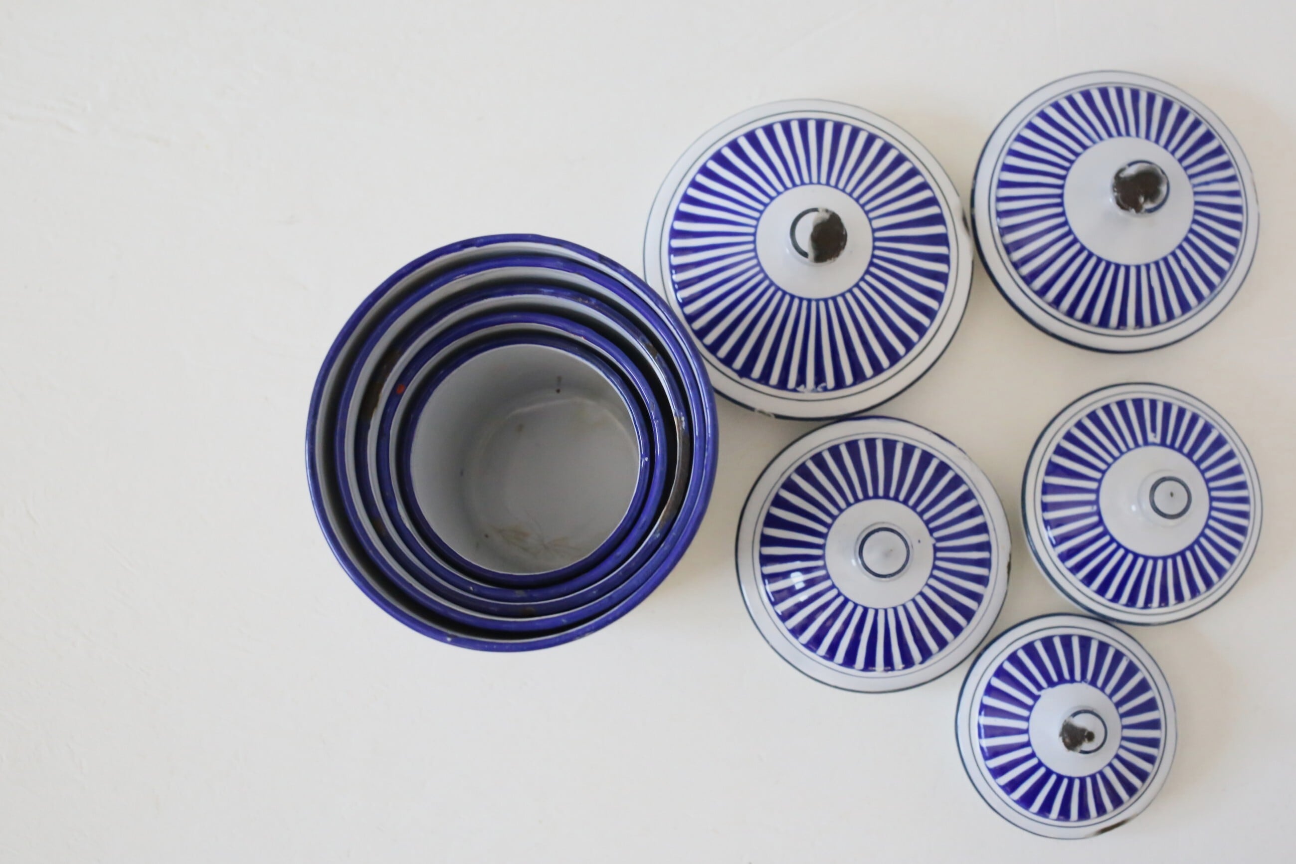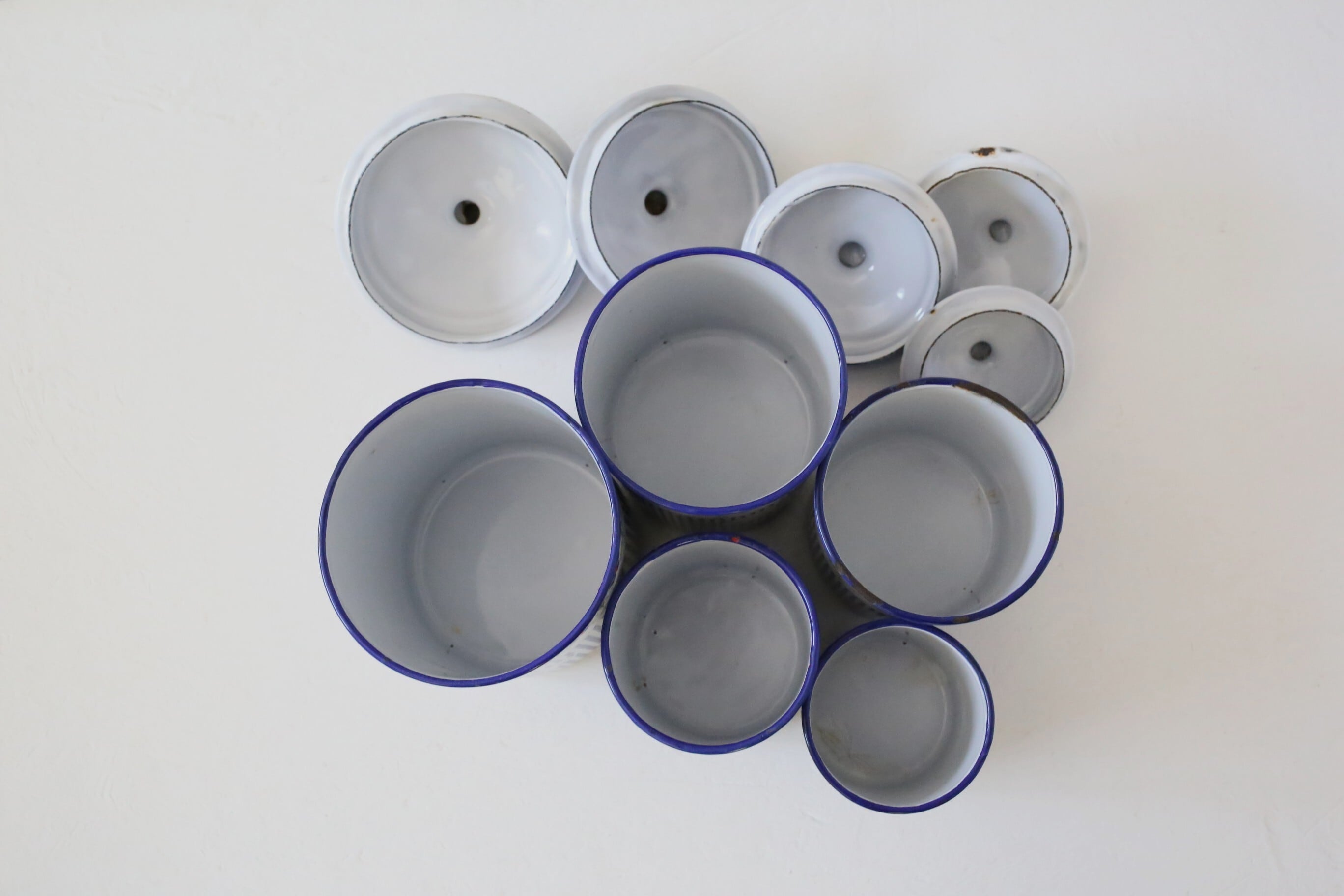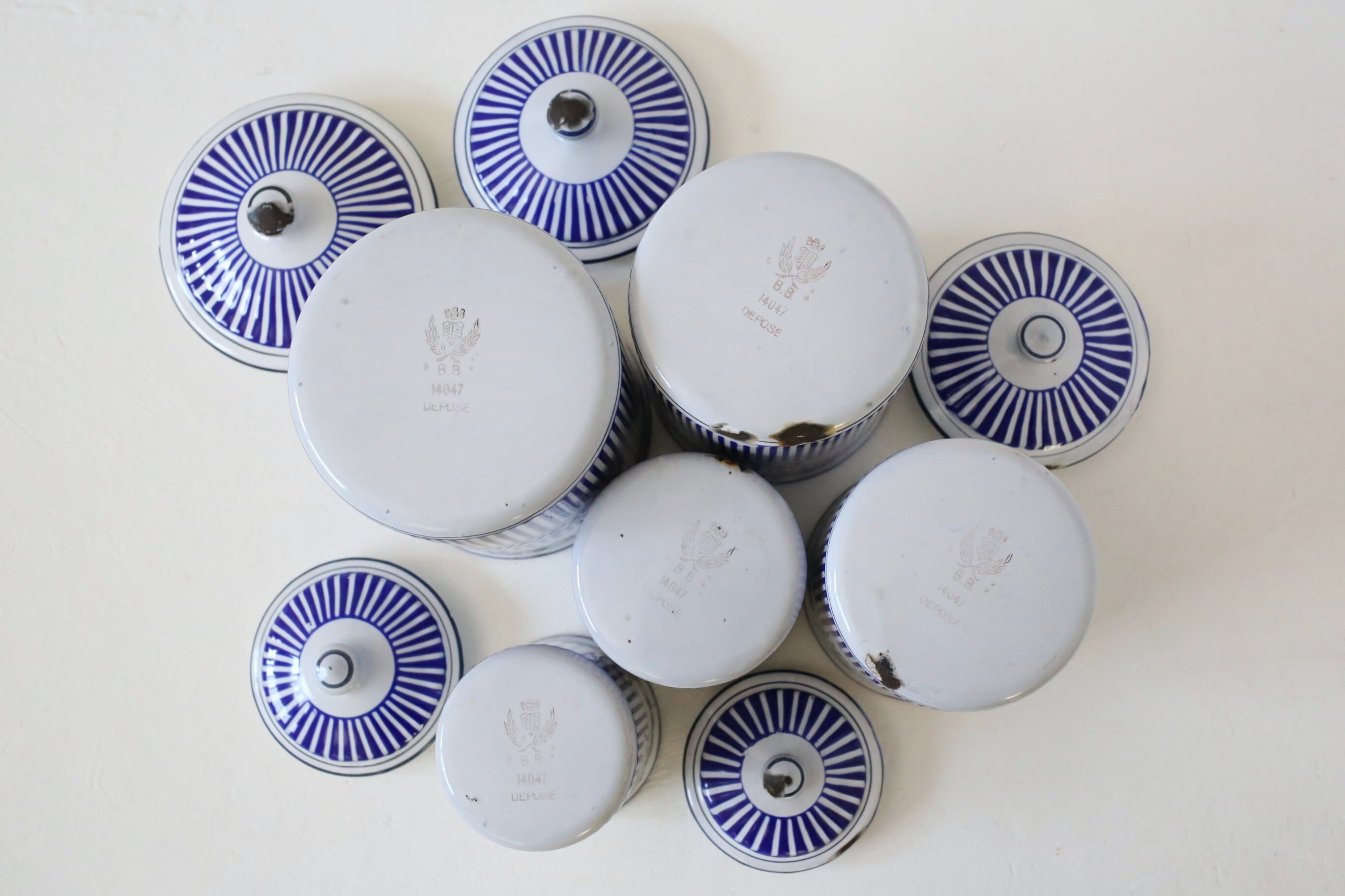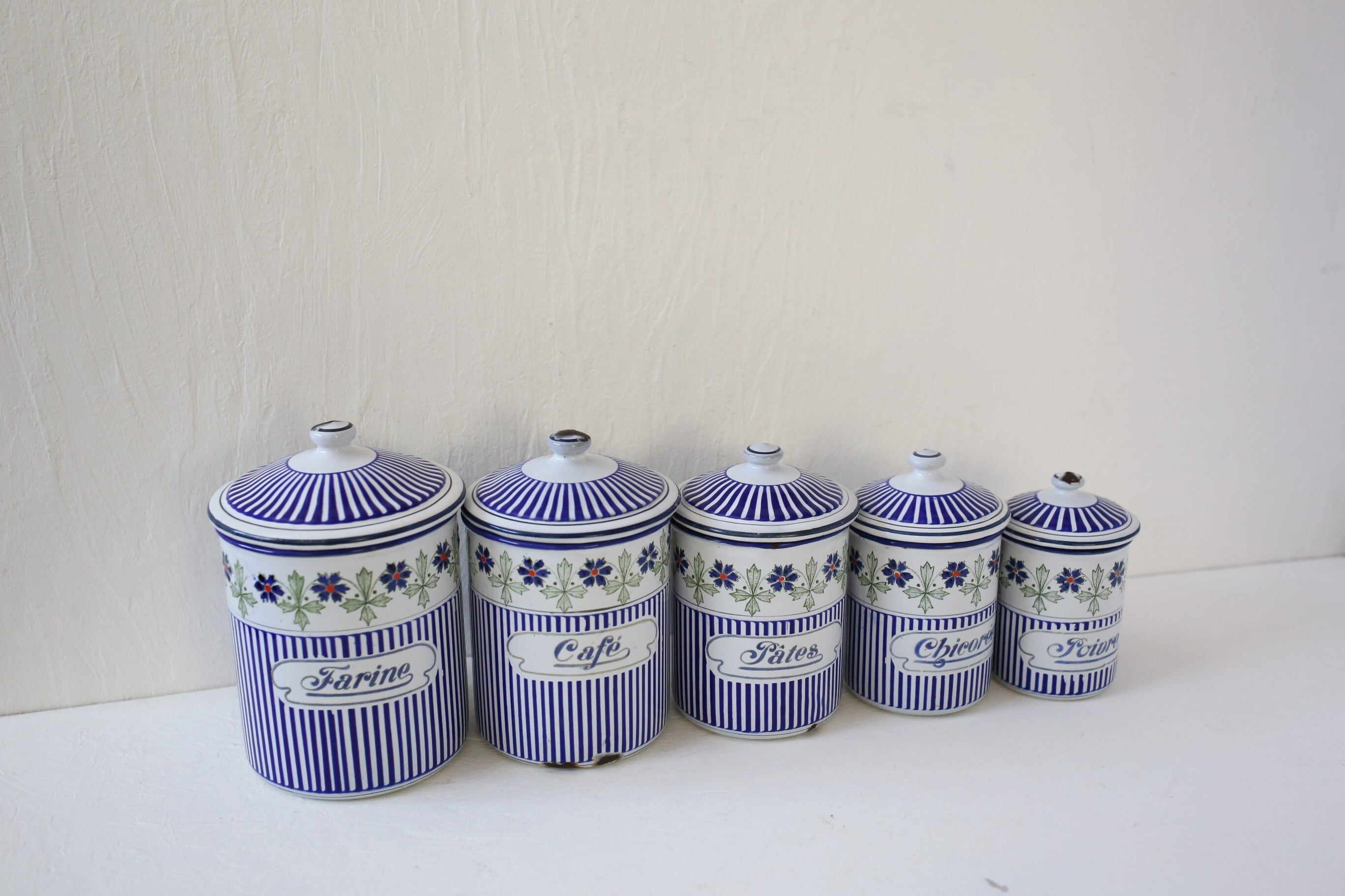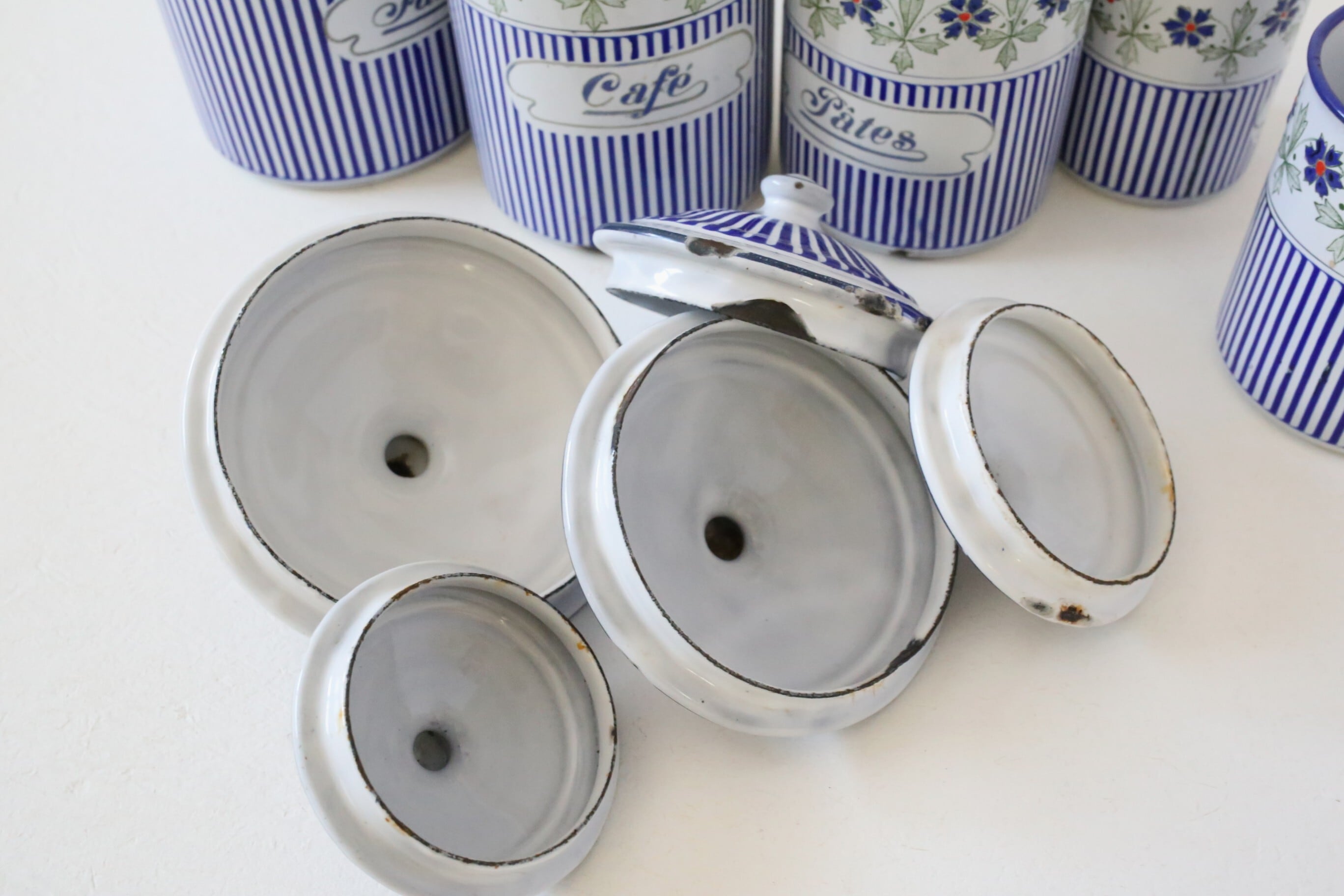 フランス アンティーク BB社 ホーロー キャニスター ブルー ガーランド 5個セット N-06172