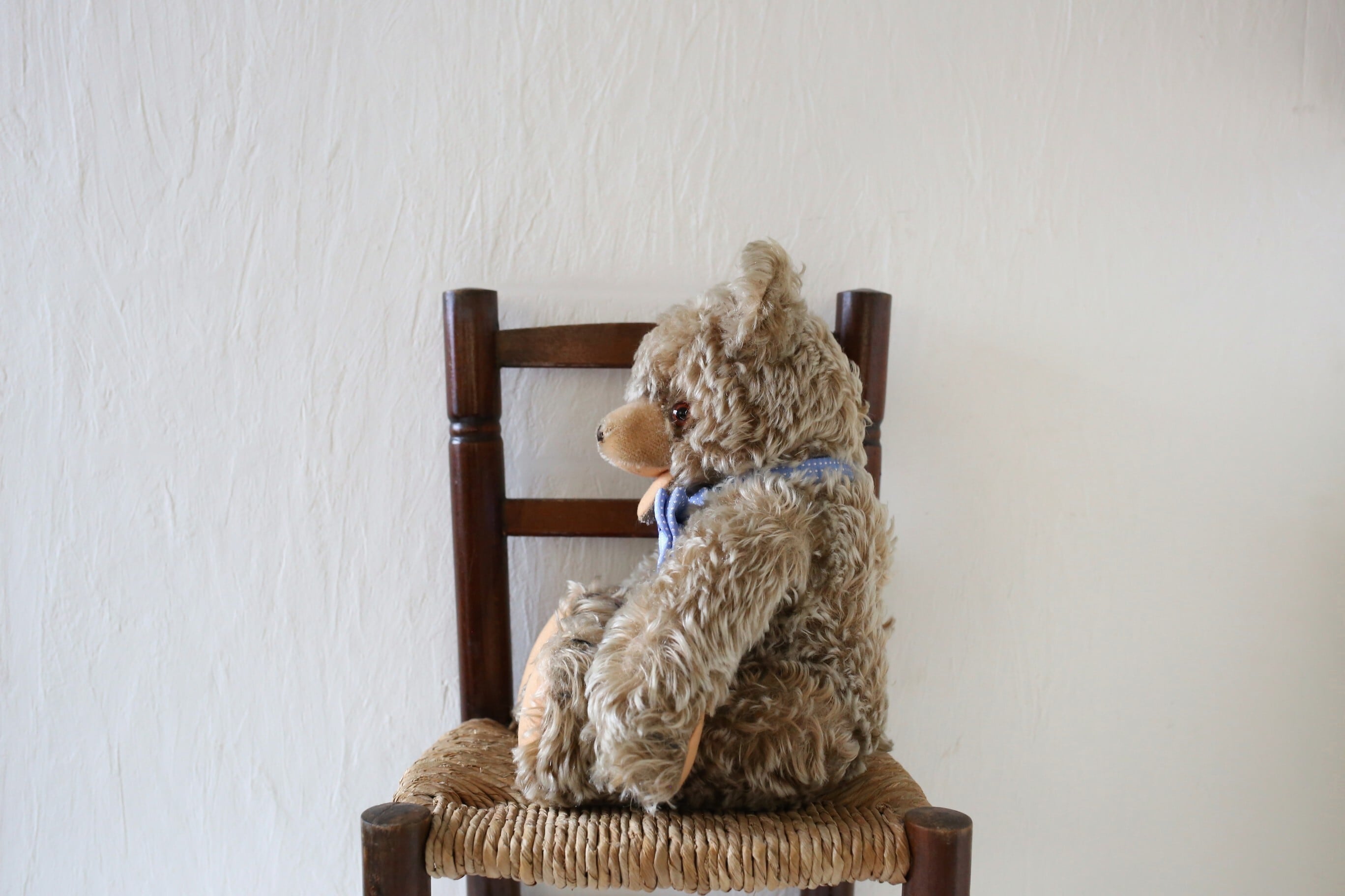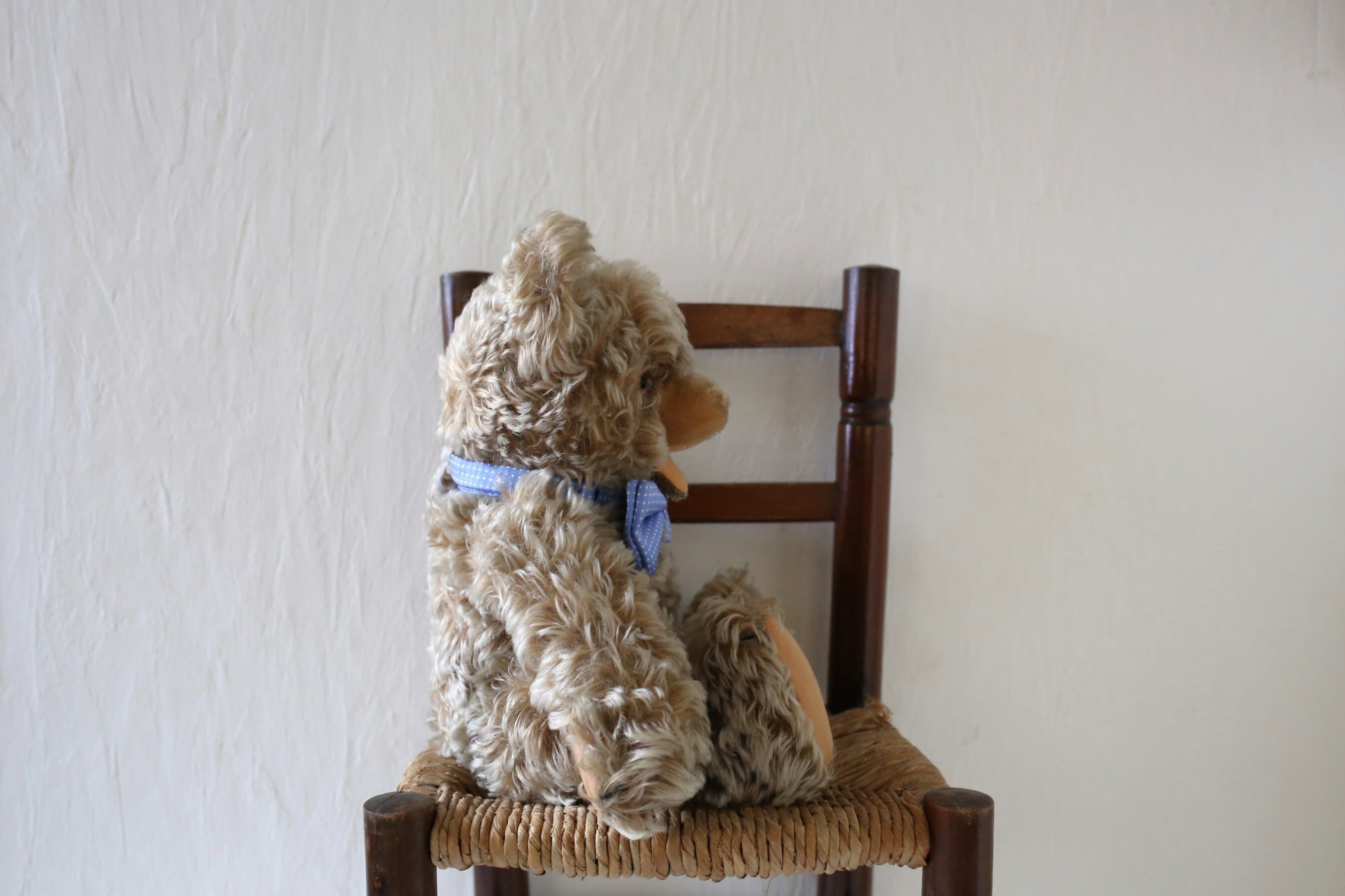 口の中の上側と右足の裏のフェルトに若干のシミはありますが、それ以外は薄っすらと経年の汚れがある程度で目立つダメージもなく、毛も光沢が残った大変良い状態です。