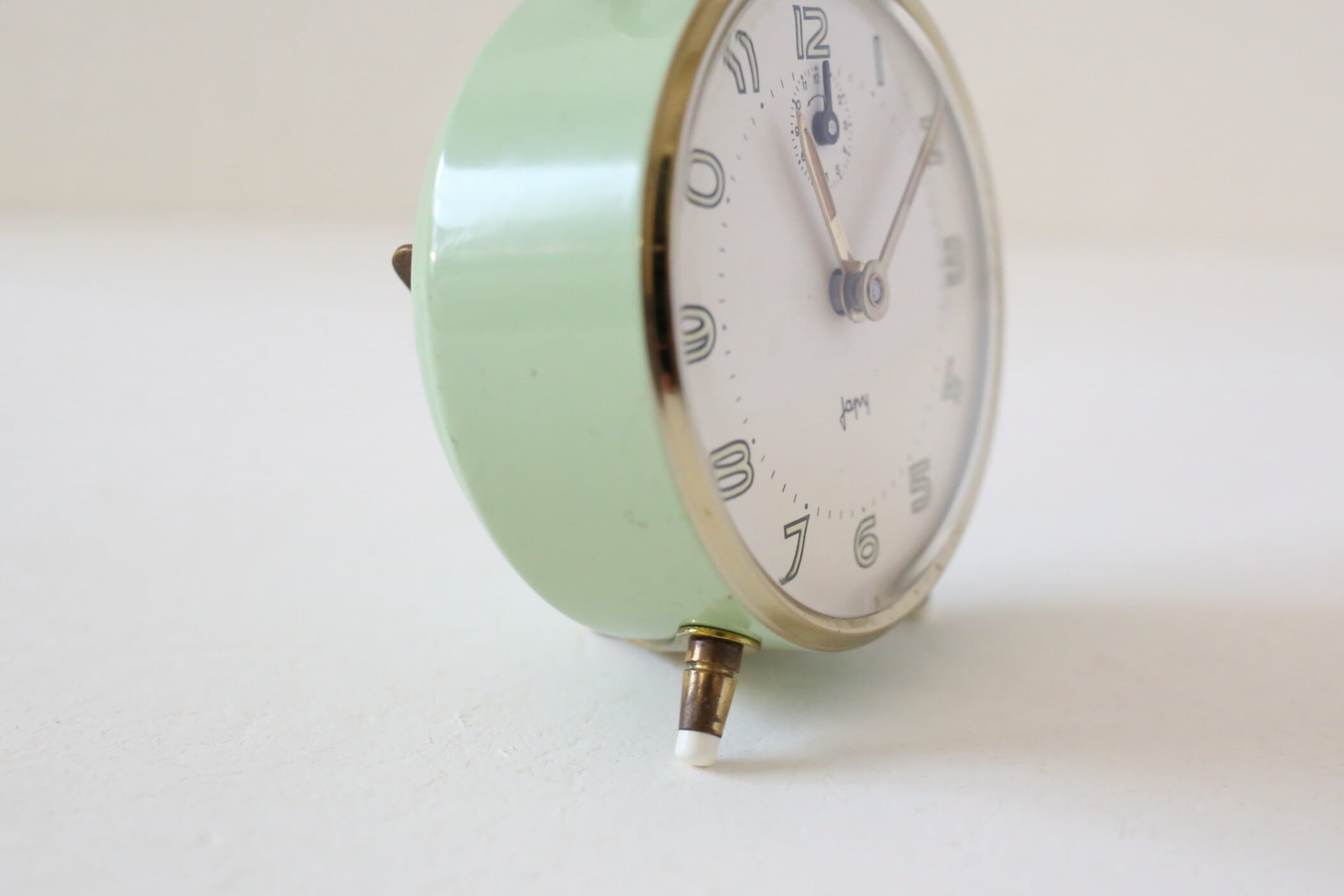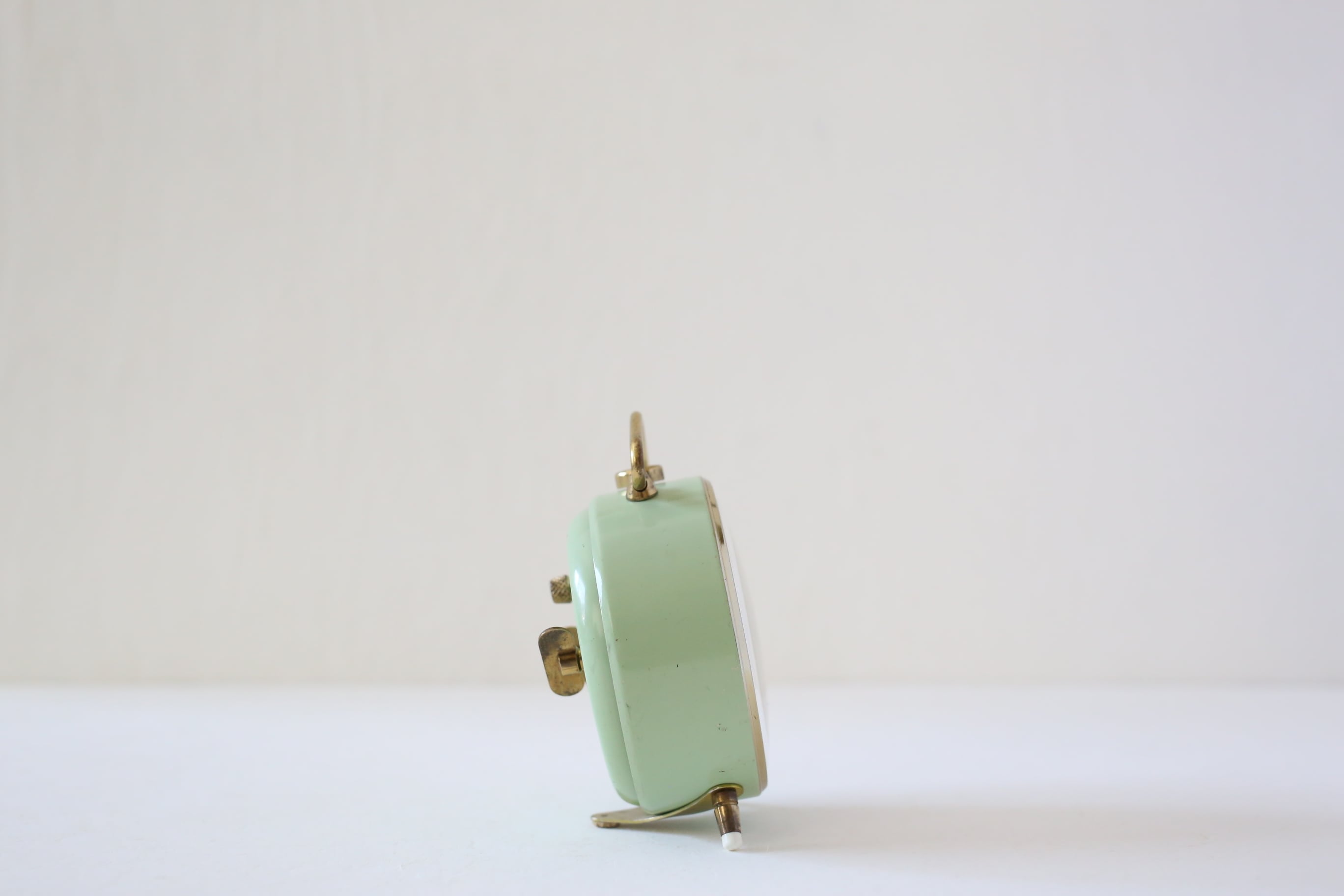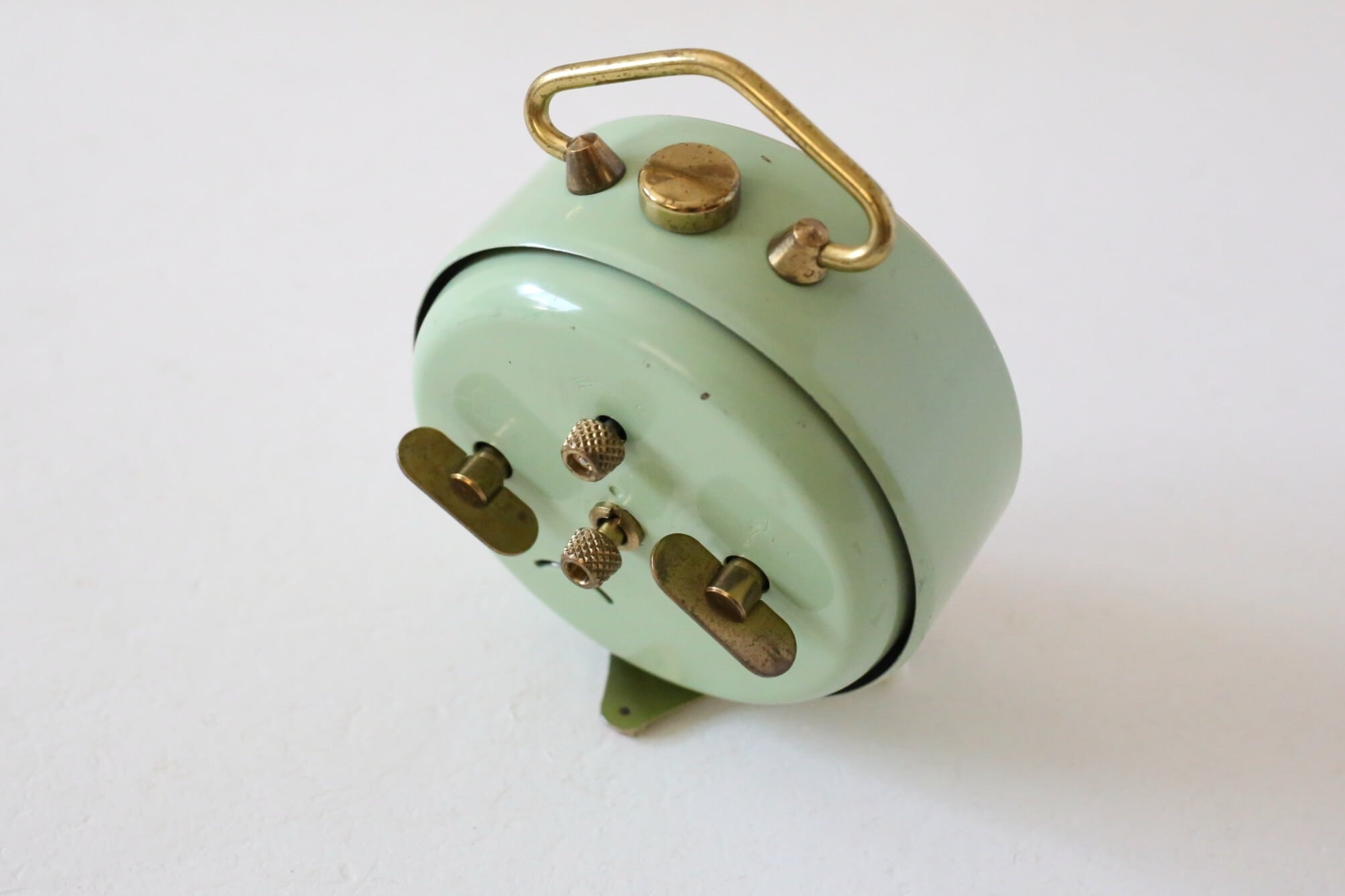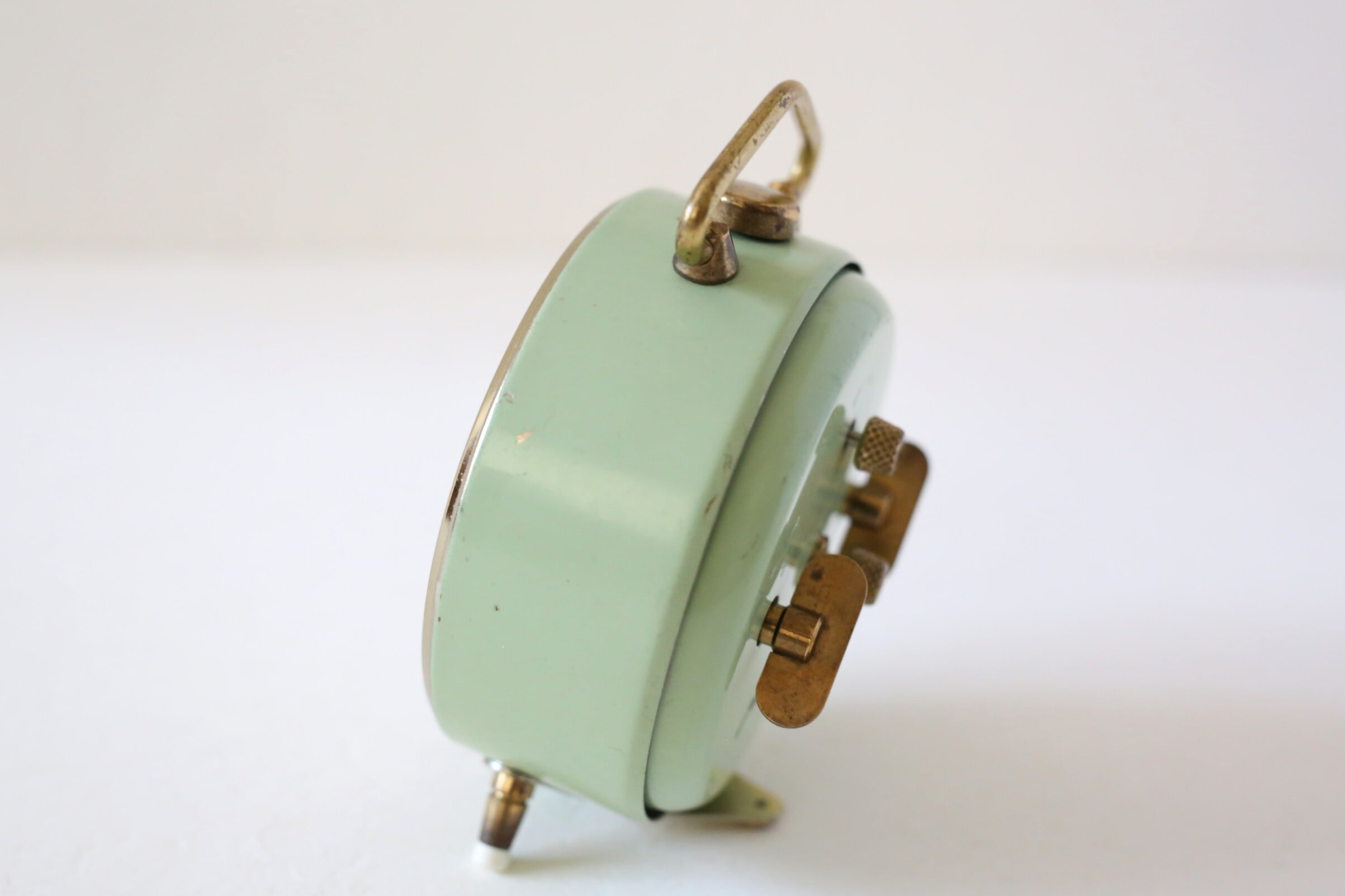 フランス アンティーク ヴィンテージ JAPY 目覚まし時計 ミントグリーン×ゴールド N-06161