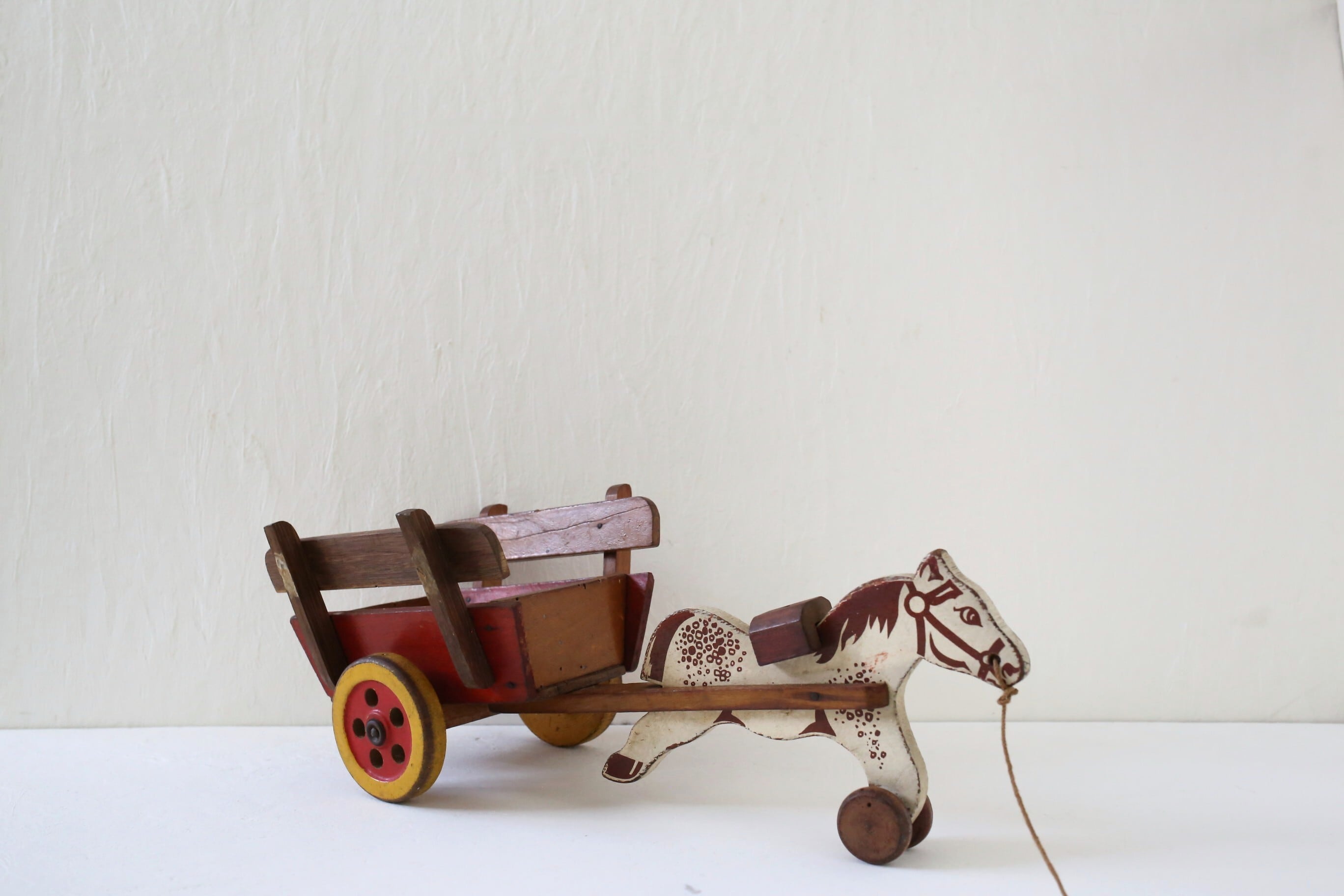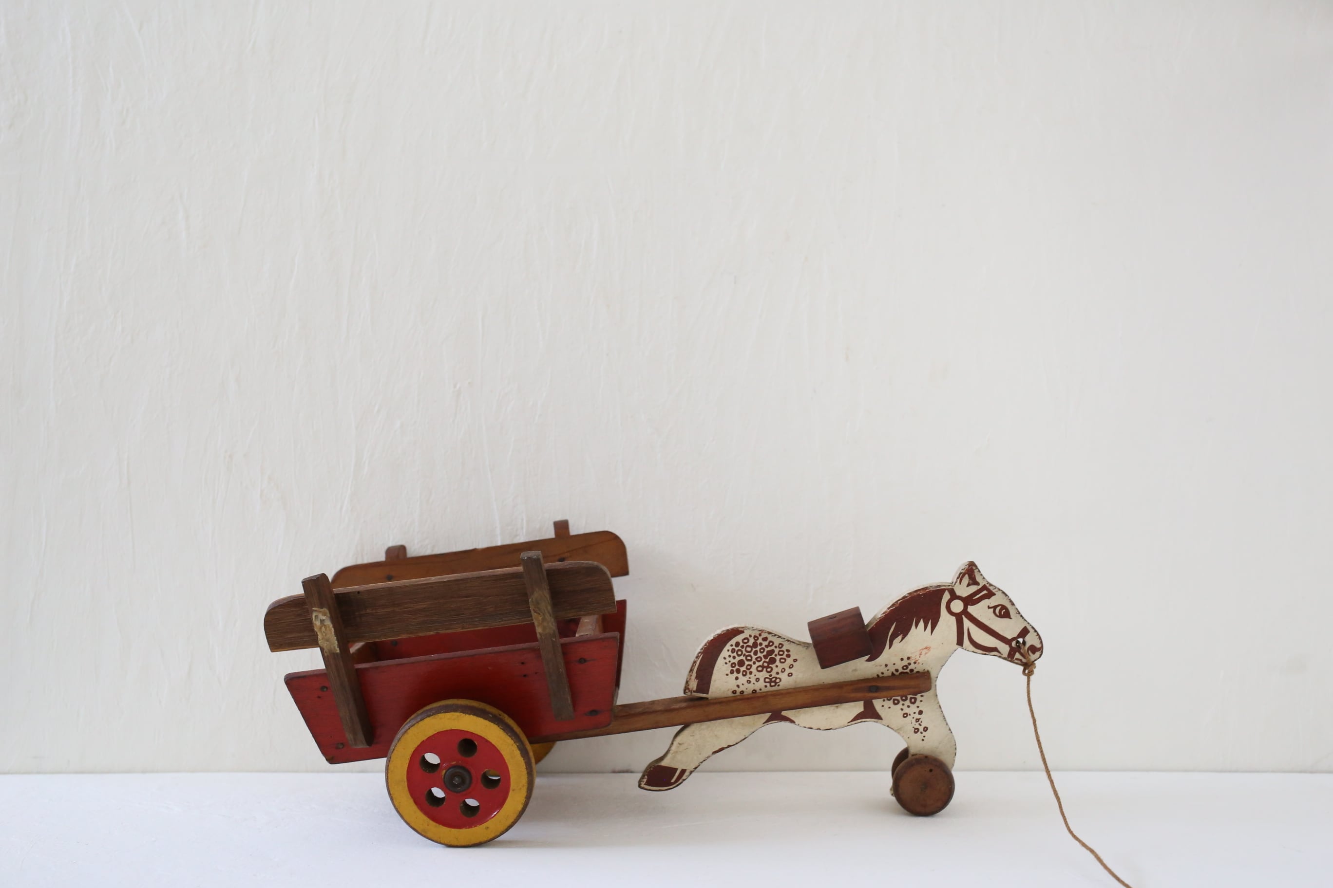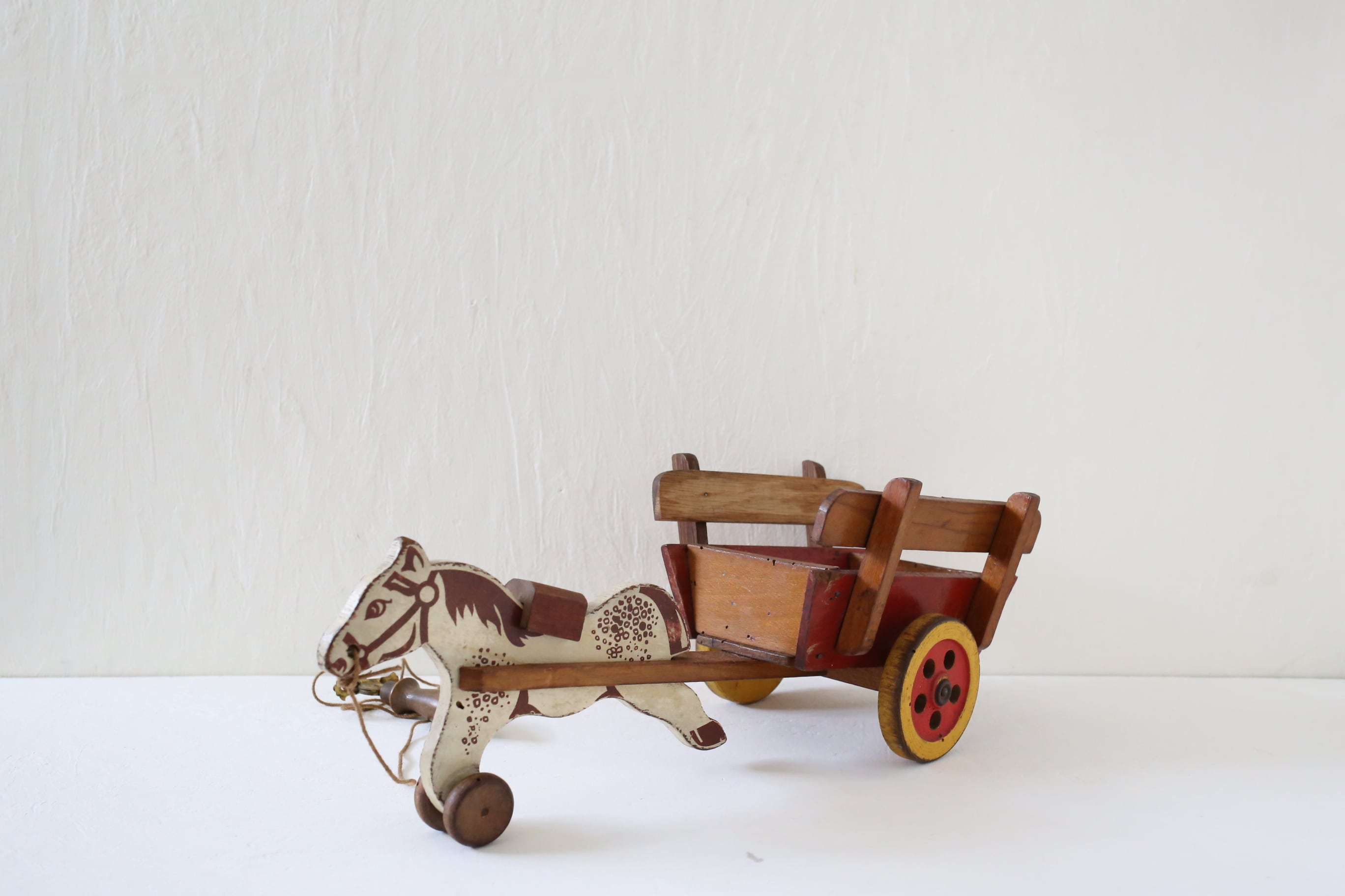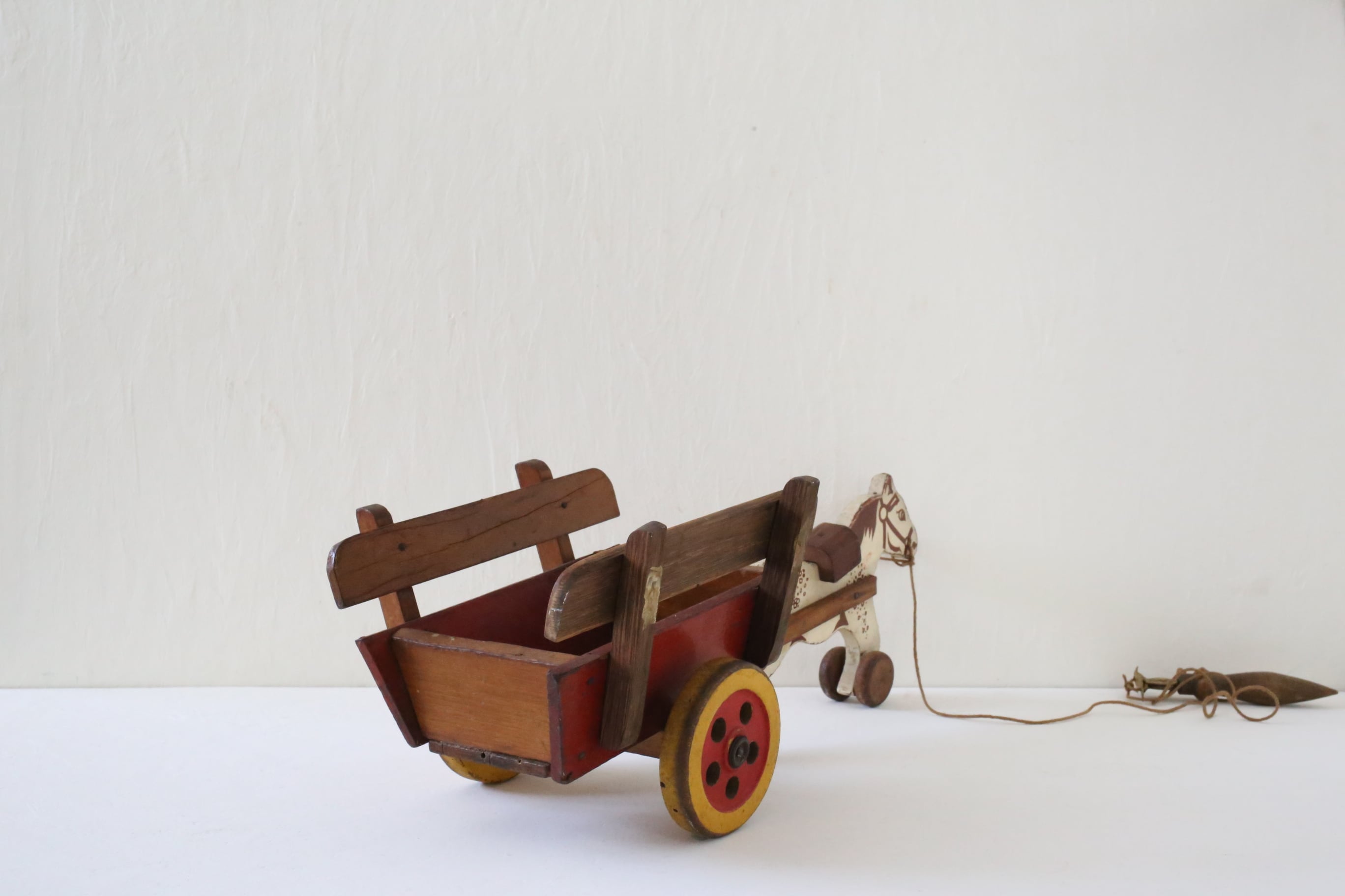 フランス アンティーク ヴィンテージ おもちゃ 大きめの木製の馬車 N-05767
