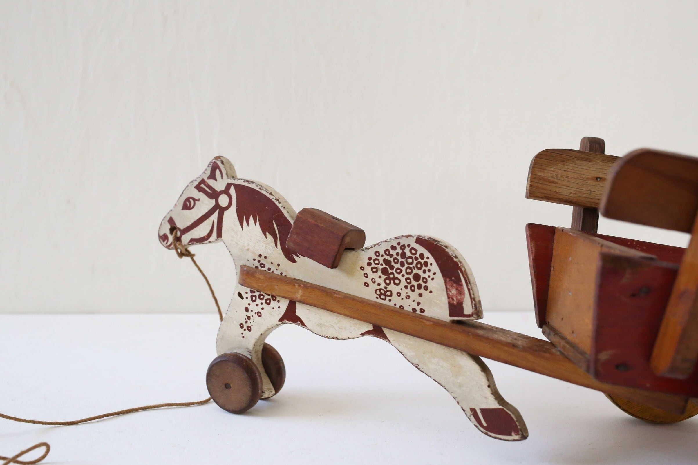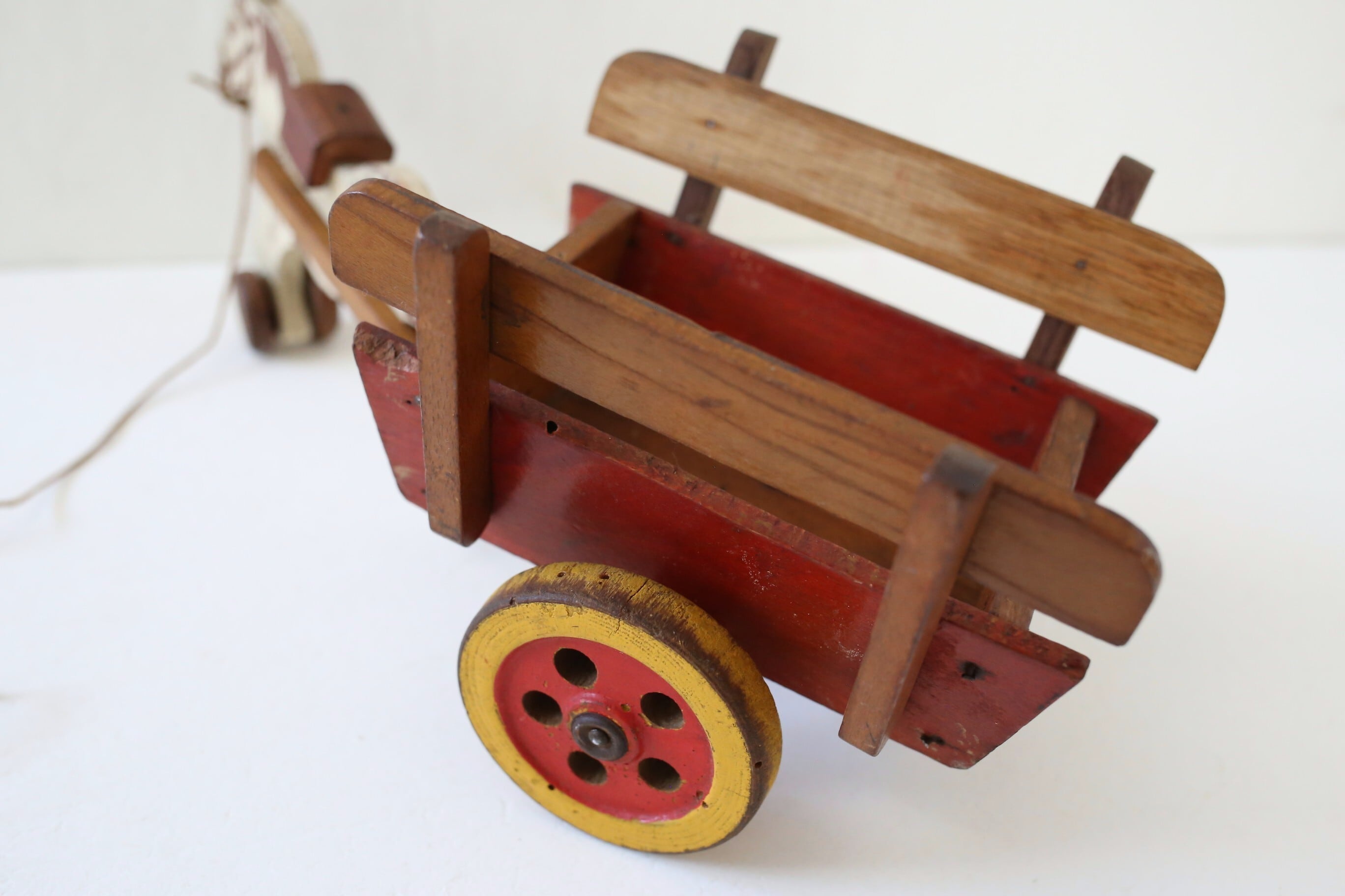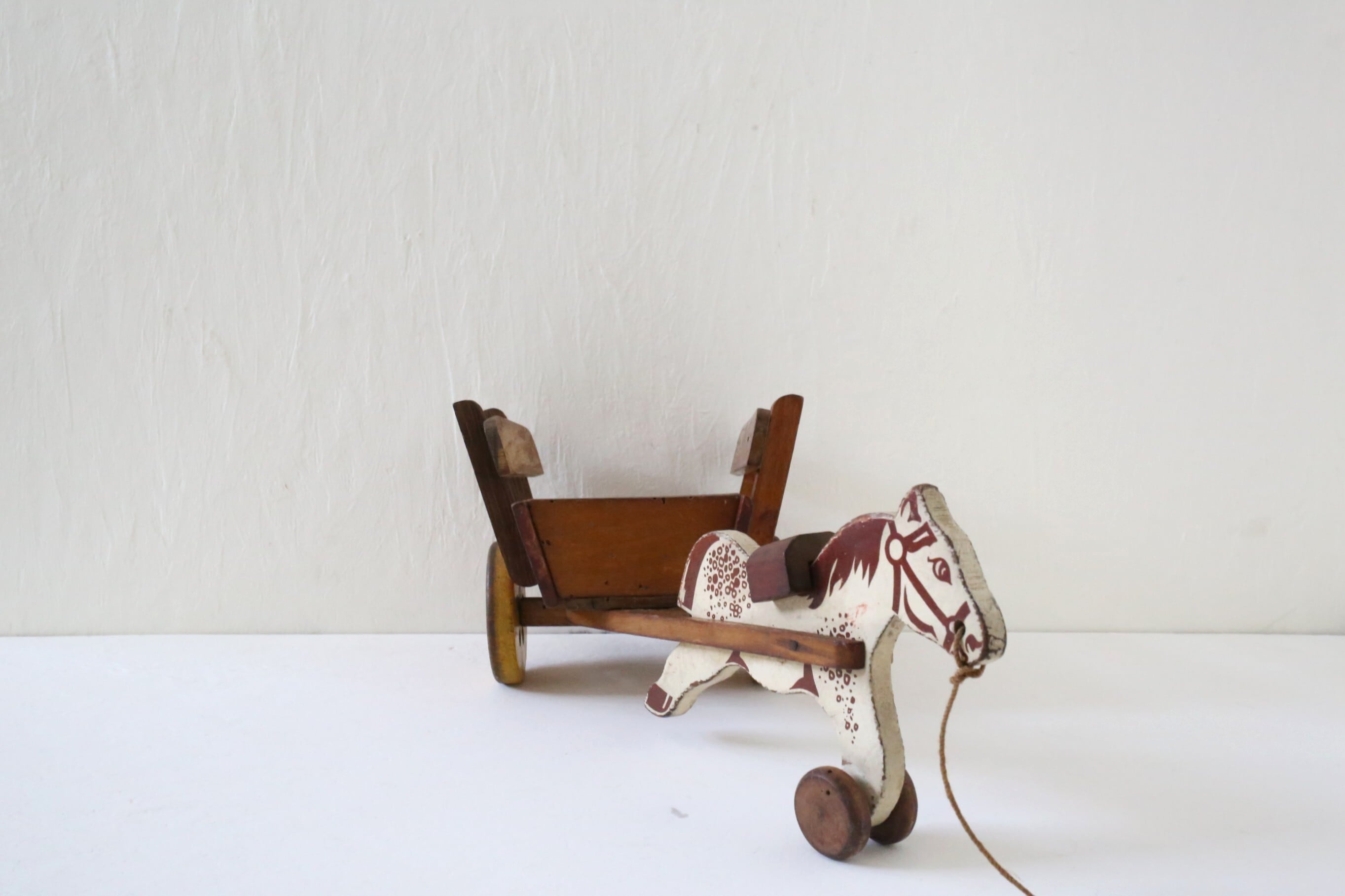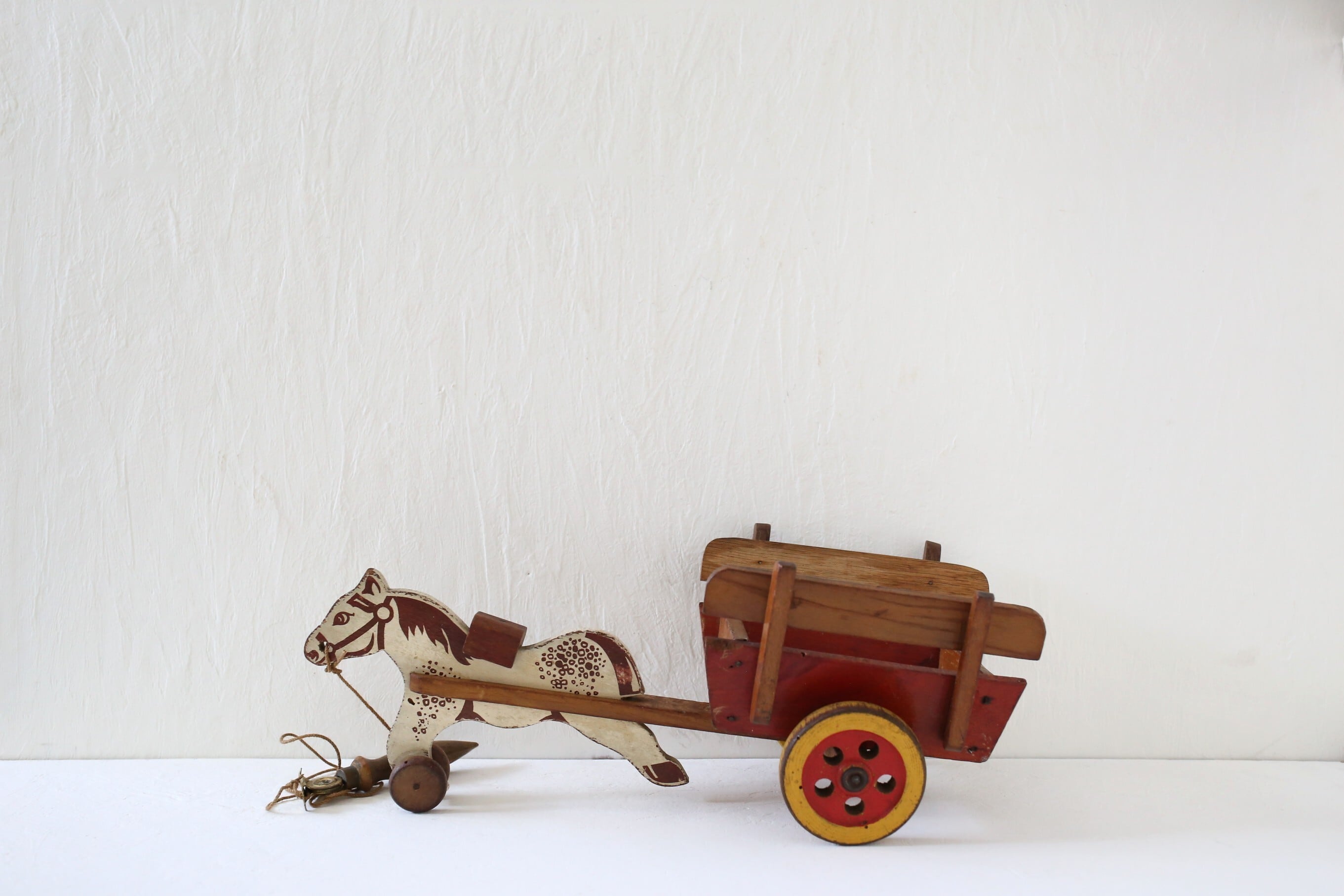 フランス アンティーク ヴィンテージ おもちゃ 大きめの木製の馬車 N-05767