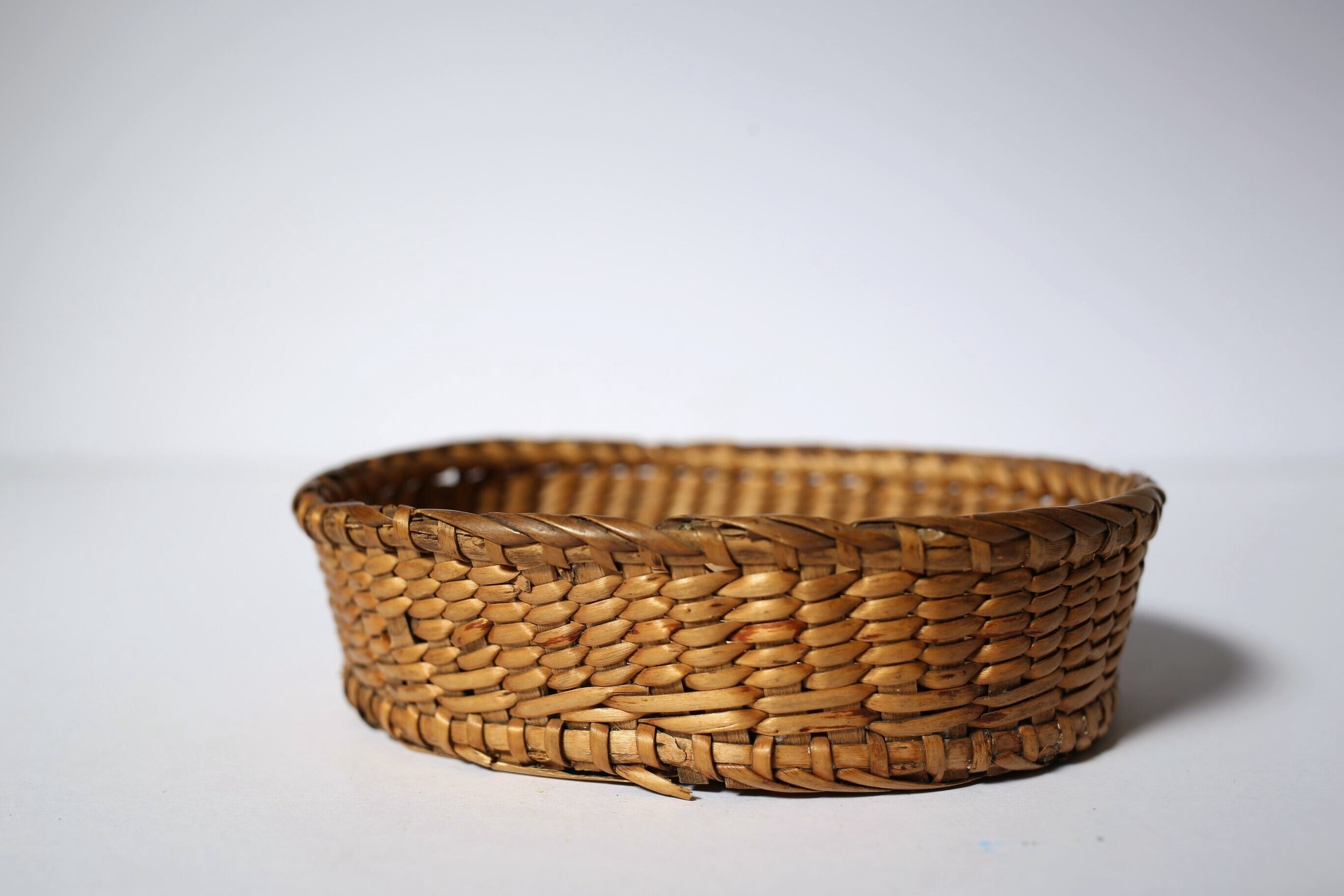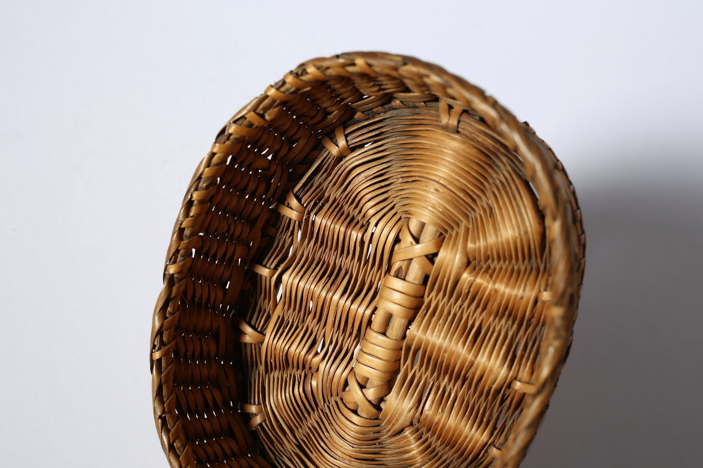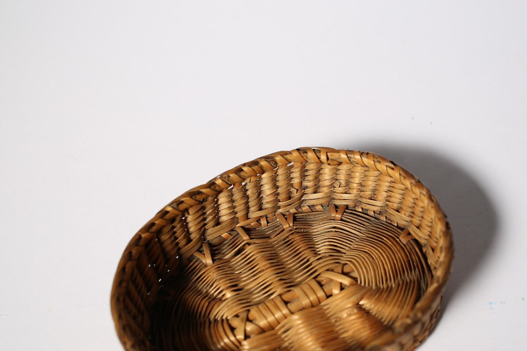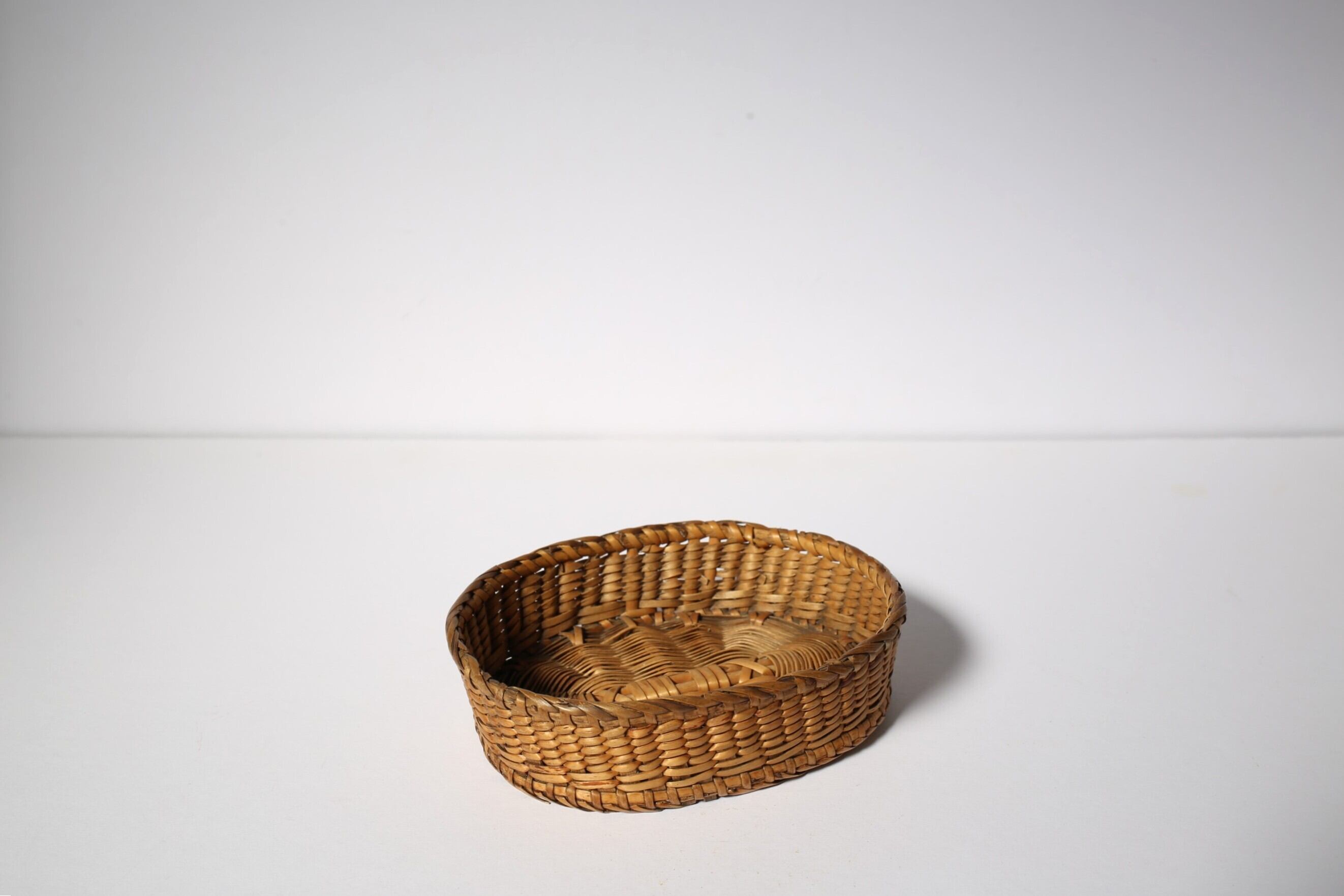 フランス アンティーク パニエ 浅く小さな細編みの美しいカゴ 約13cm×約10cm N-06186