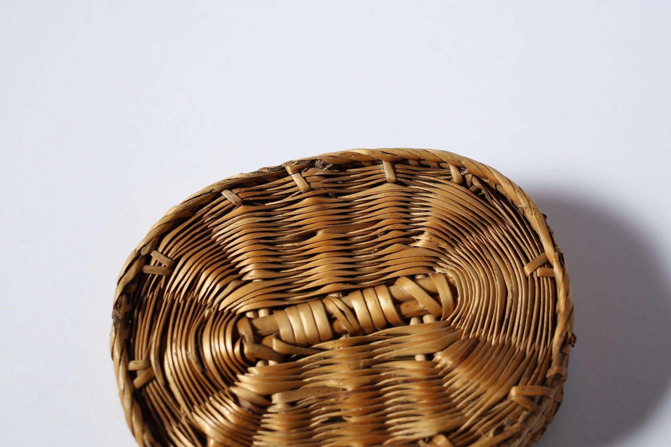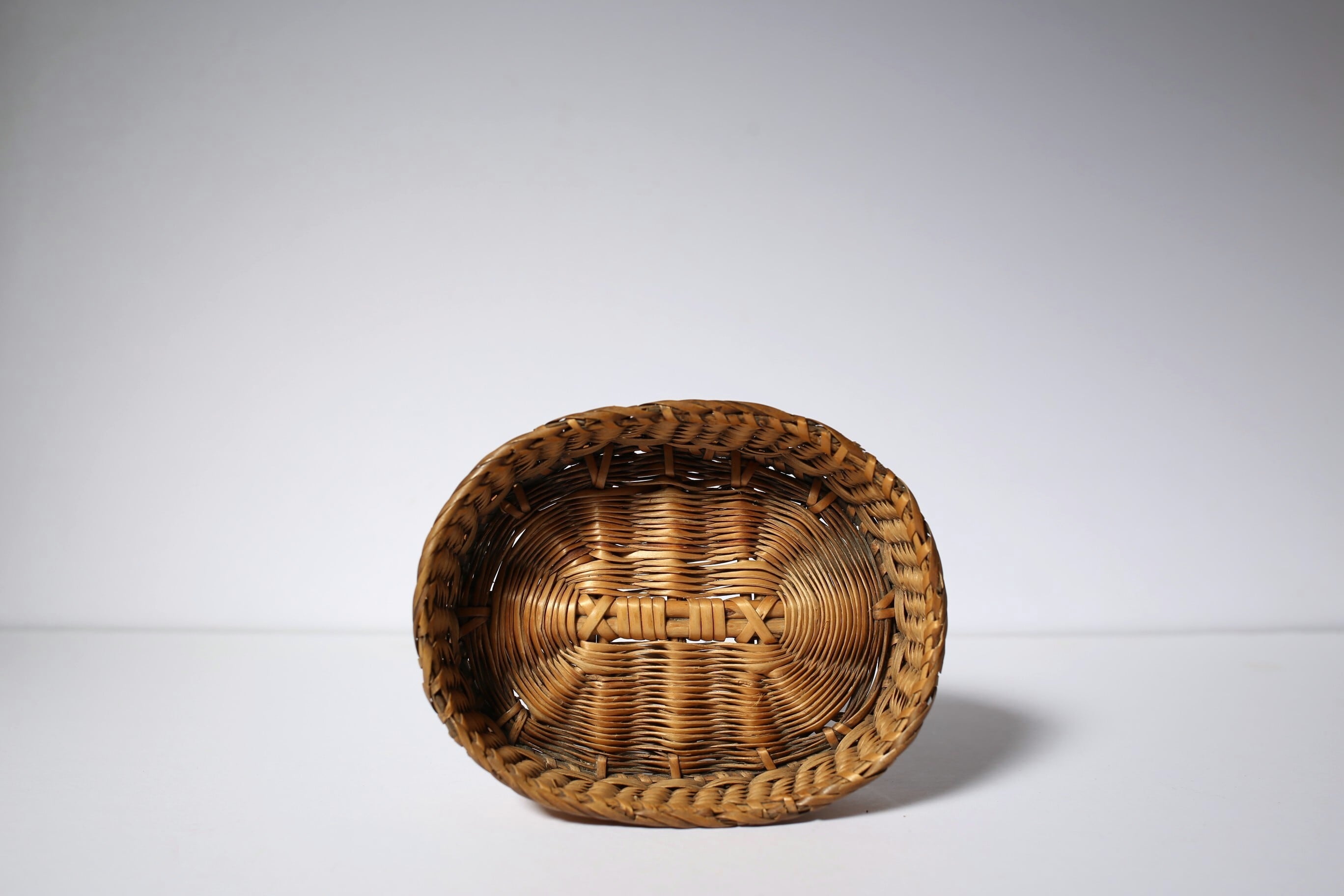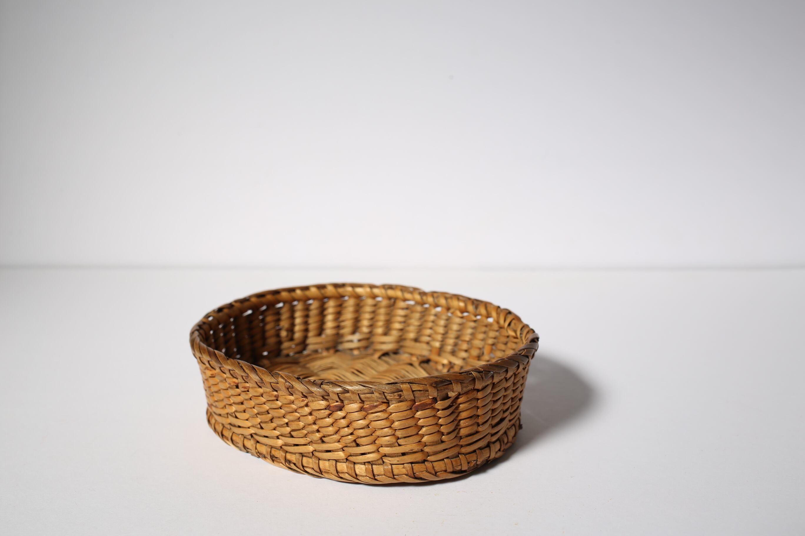 フランス アンティーク パニエ 浅く小さな細編みの美しいカゴ 約13cm×約10cm N-06186