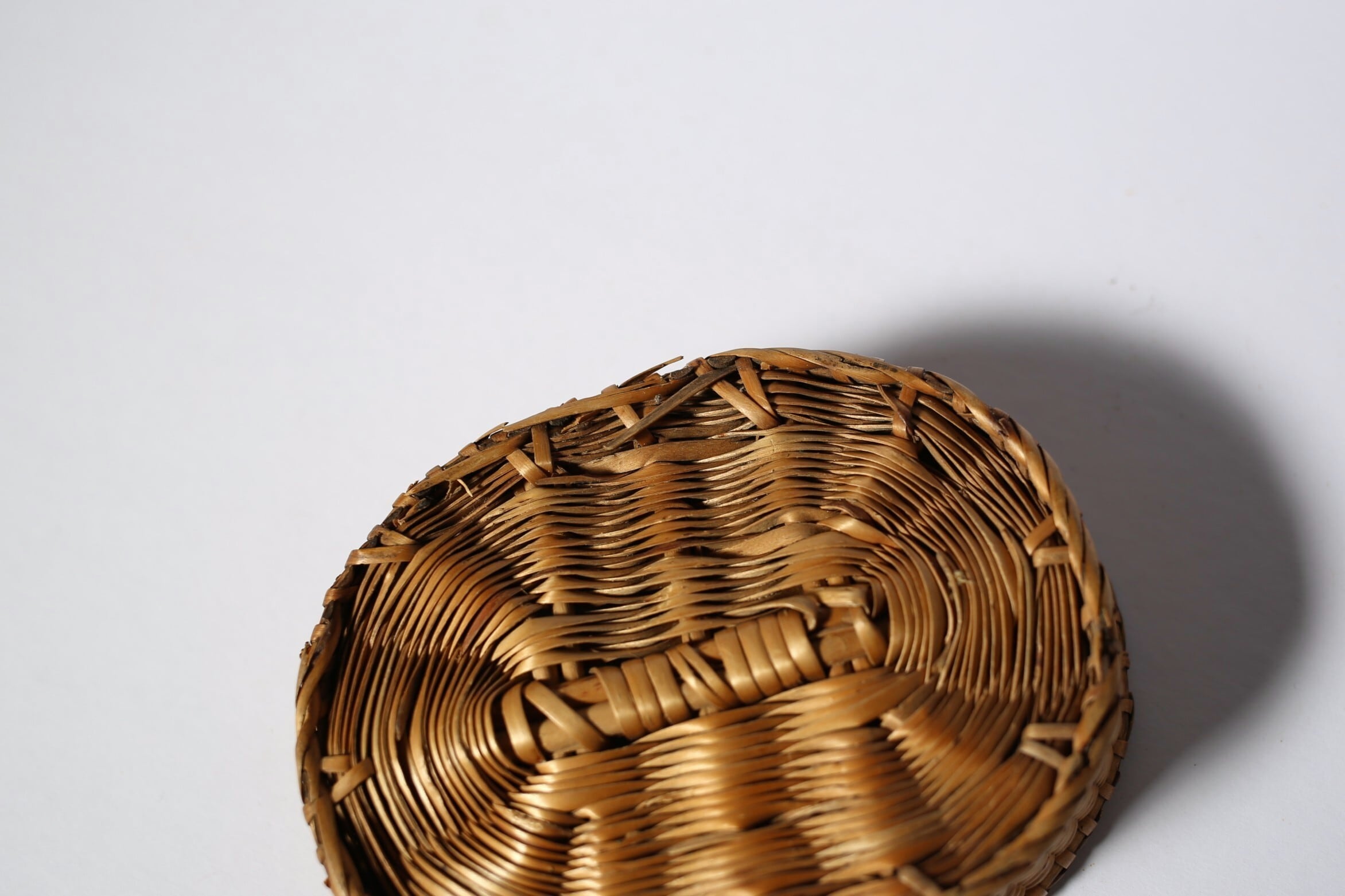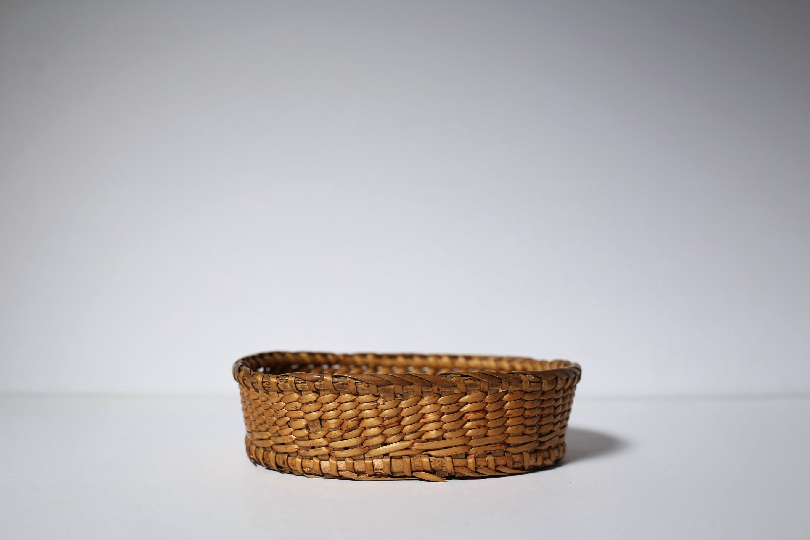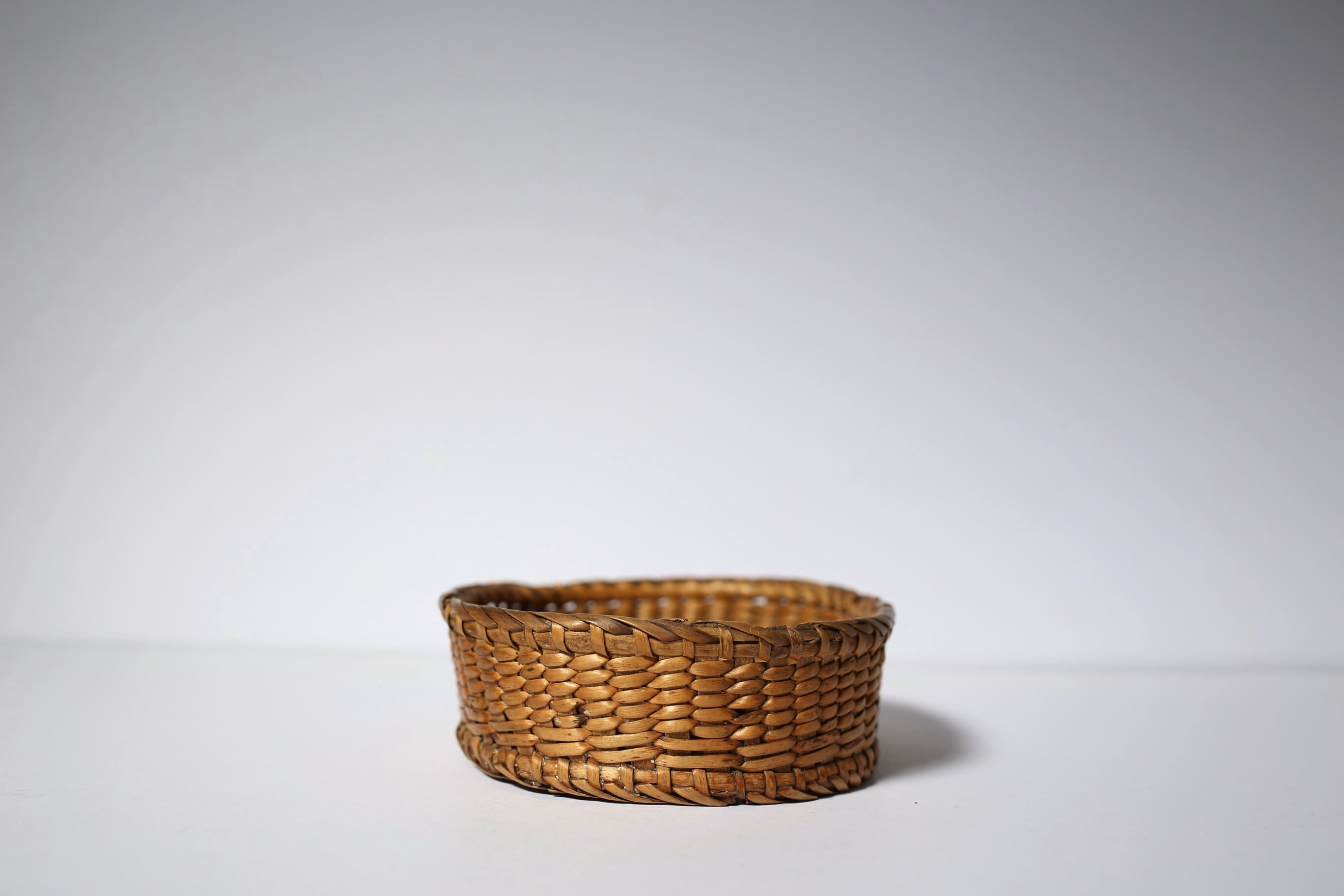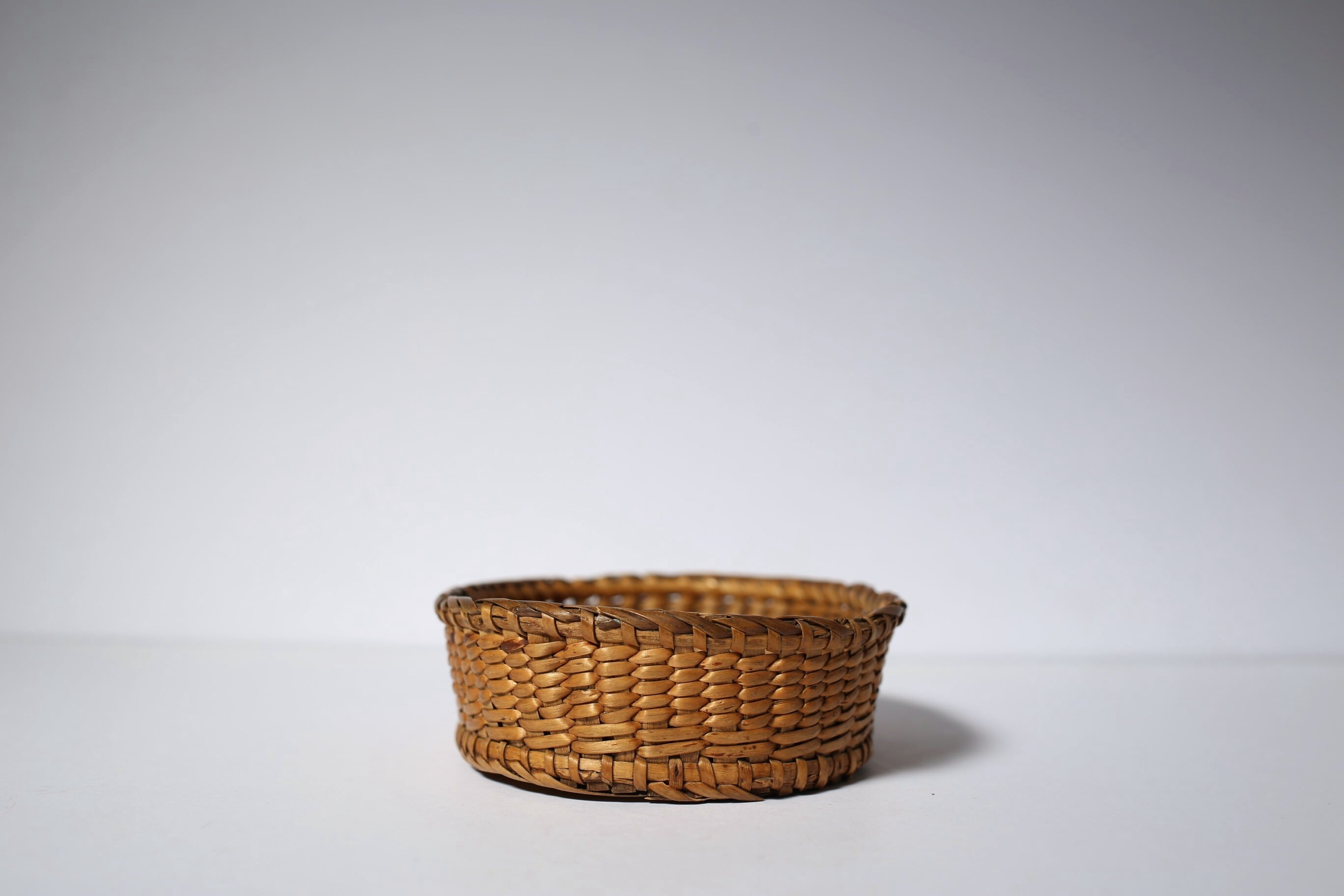 フランス アンティーク パニエ 浅く小さな細編みの美しいカゴ 約13cm×約10cm N-06186