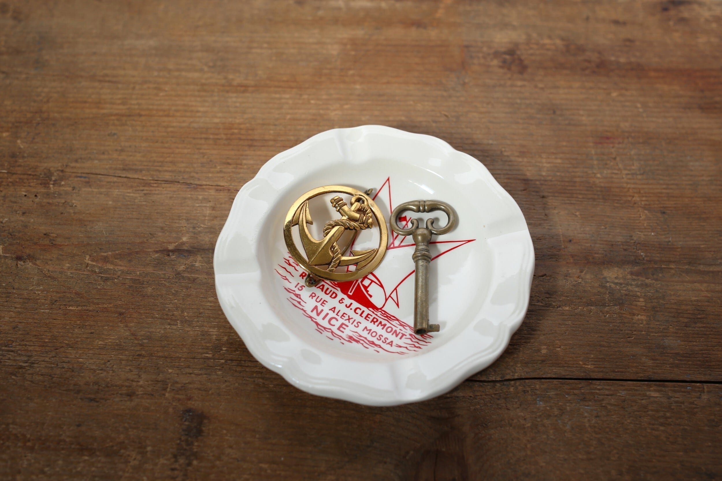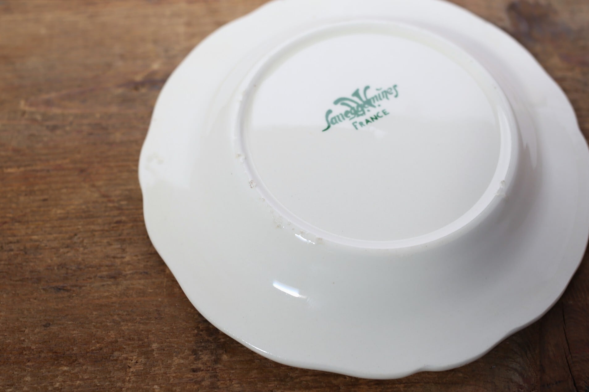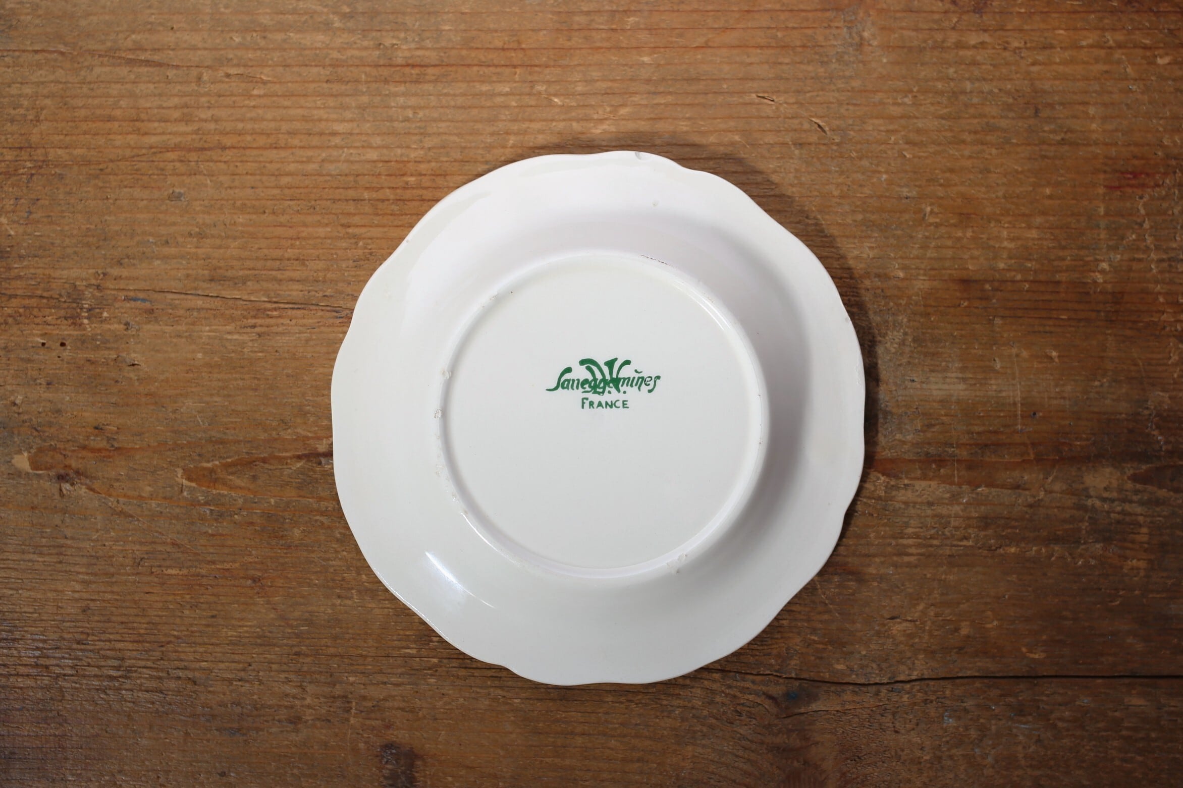 フランス アンティーク ヴィンテージ Sarreguemines サルグミンヌ 花リム 灰皿 『RENAUD&J.CLERMONT』直径約12.7cm N-05884