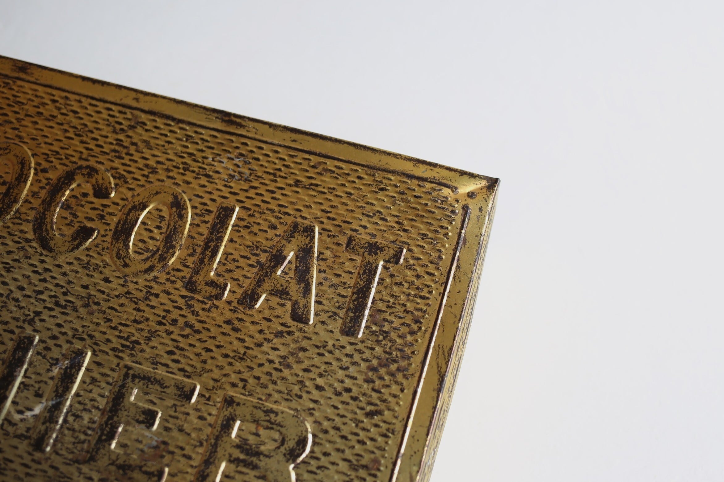 『CHOCOLAT MENIER』のロゴとカゴの編み込みのような柄がポコポコとエンボス加工で浮き上がった素敵なデザインは当時のものを忠実に再現していて、またヴィンテージ感のある仕上げが施されています。