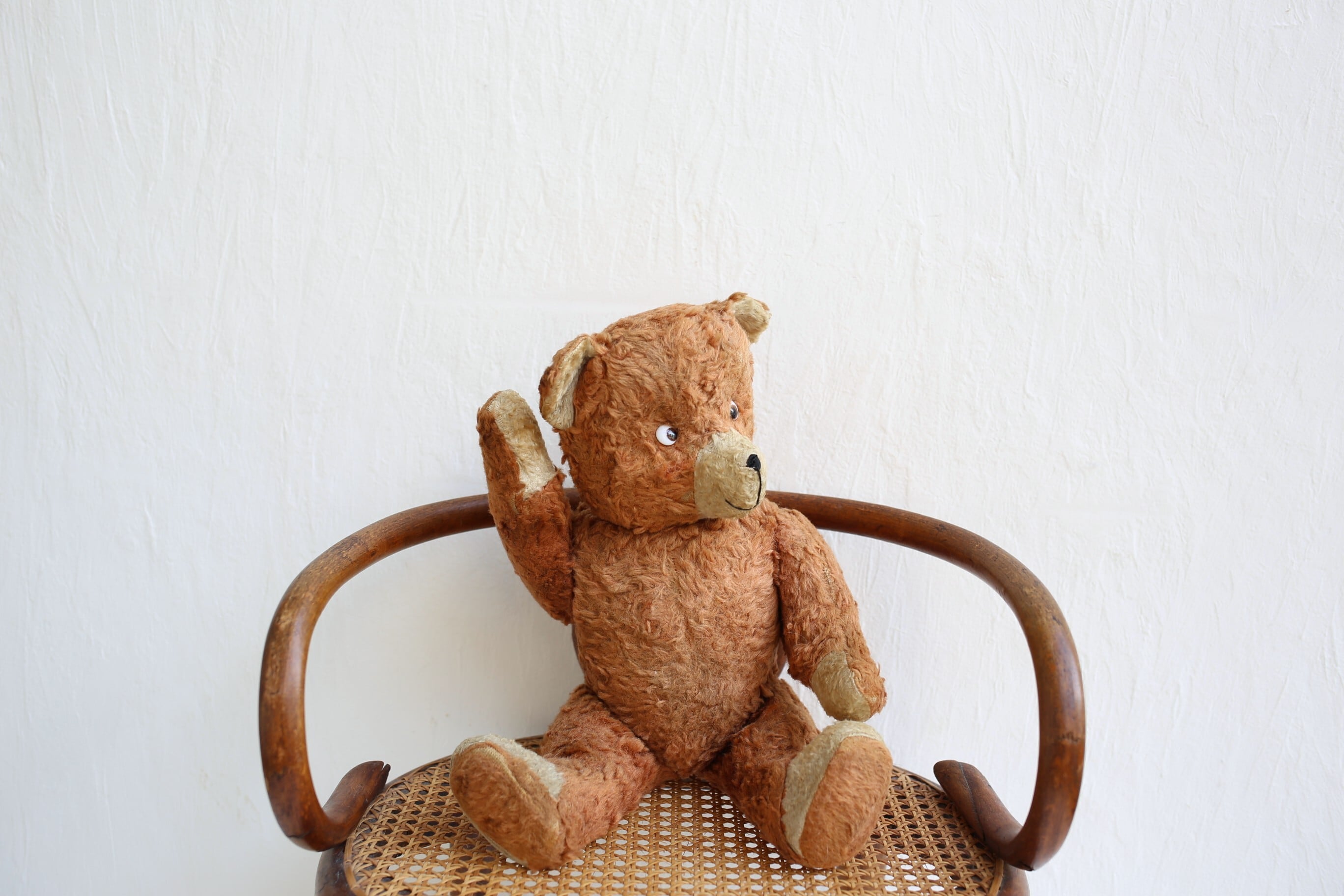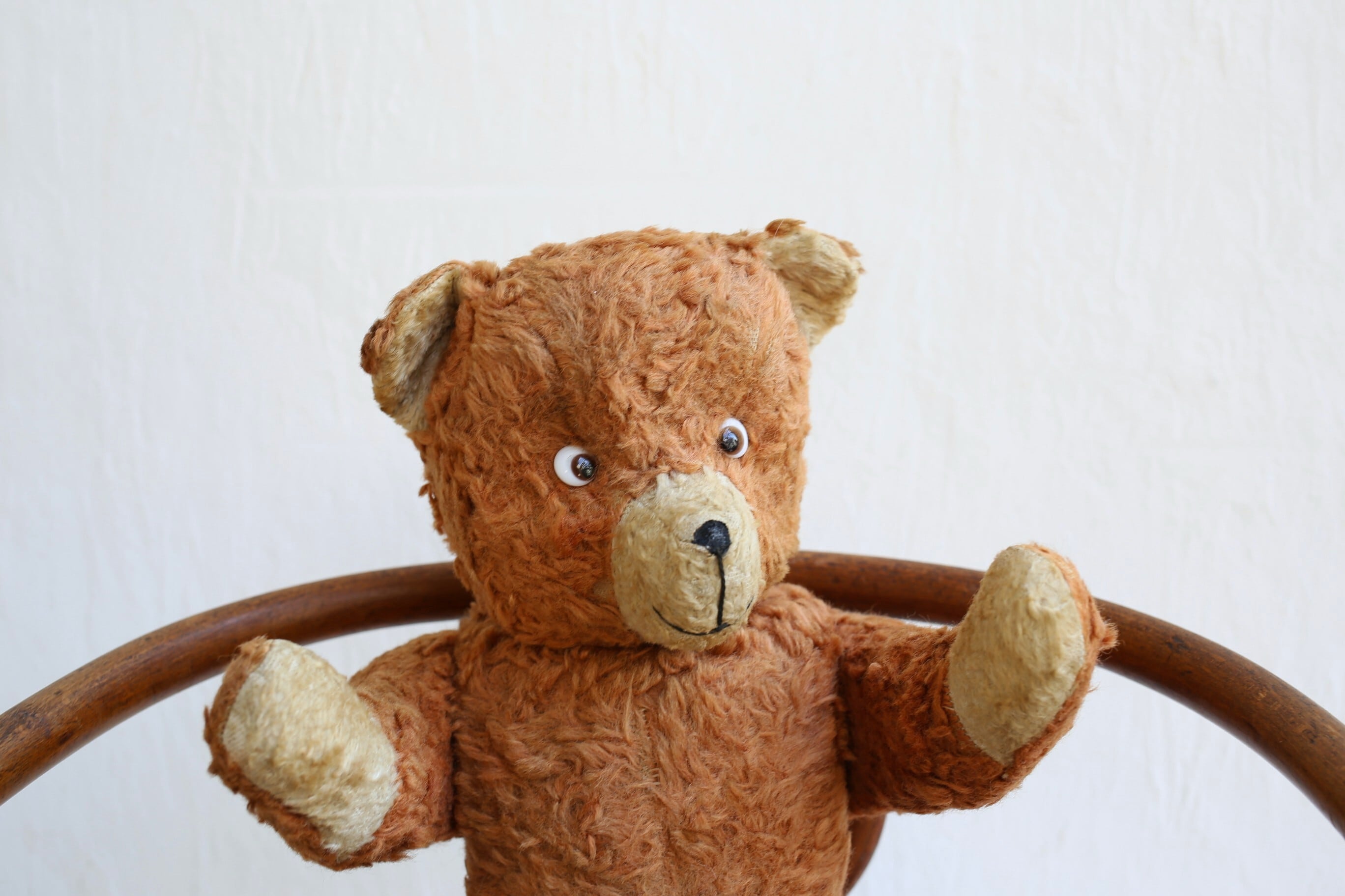 フランス アンティーク ヴィンテージ テディベア ポンチ目が可愛いベア 約34cm N-06289