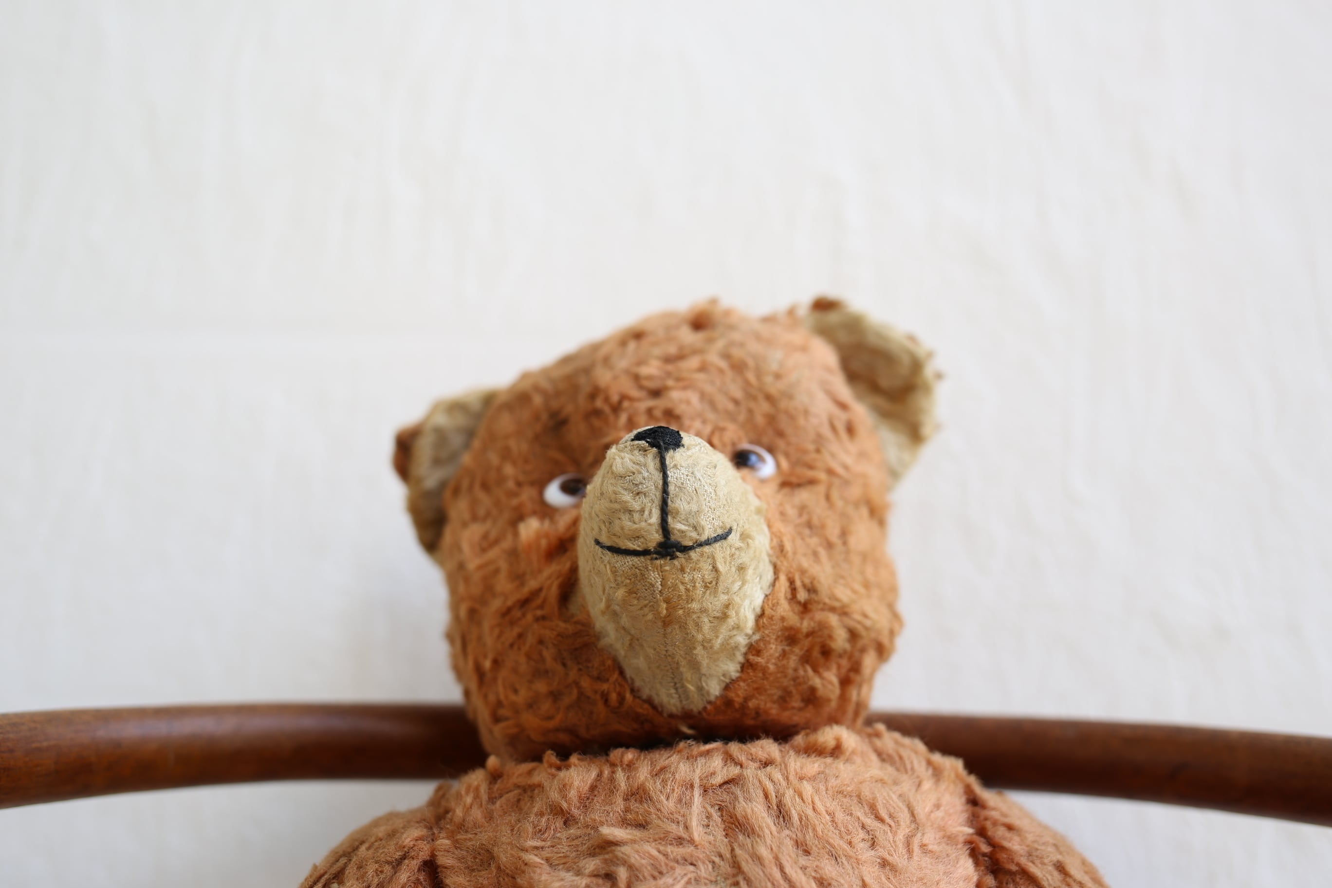 若干のモヘアロスや薄っすらと汚れ、また背面よりもやや前面が色焼けしていますが、全体的には大きなダメージもなく良い状態です。