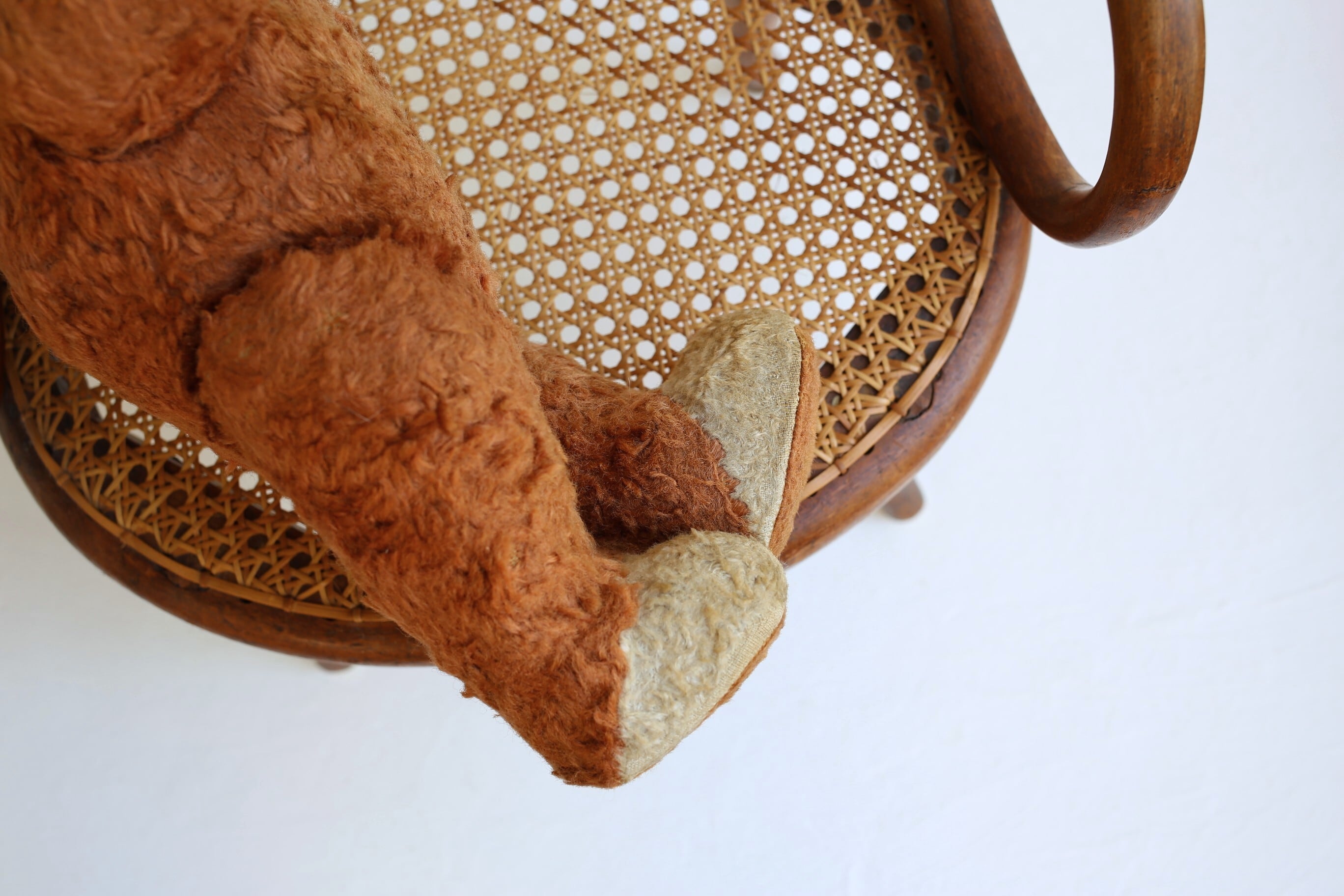 目はグラスアイで、詰め物は木毛がしっかりと詰められています。