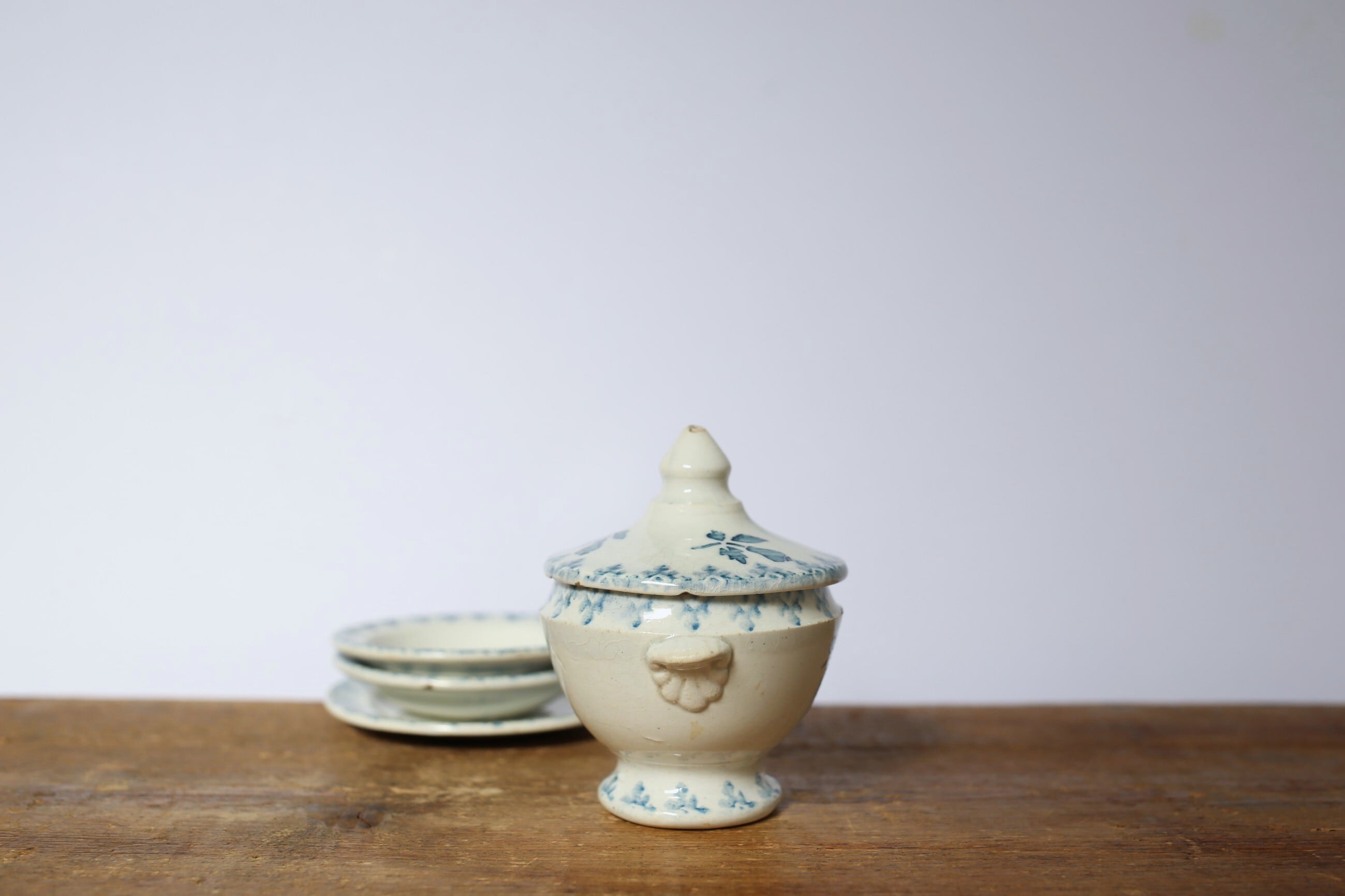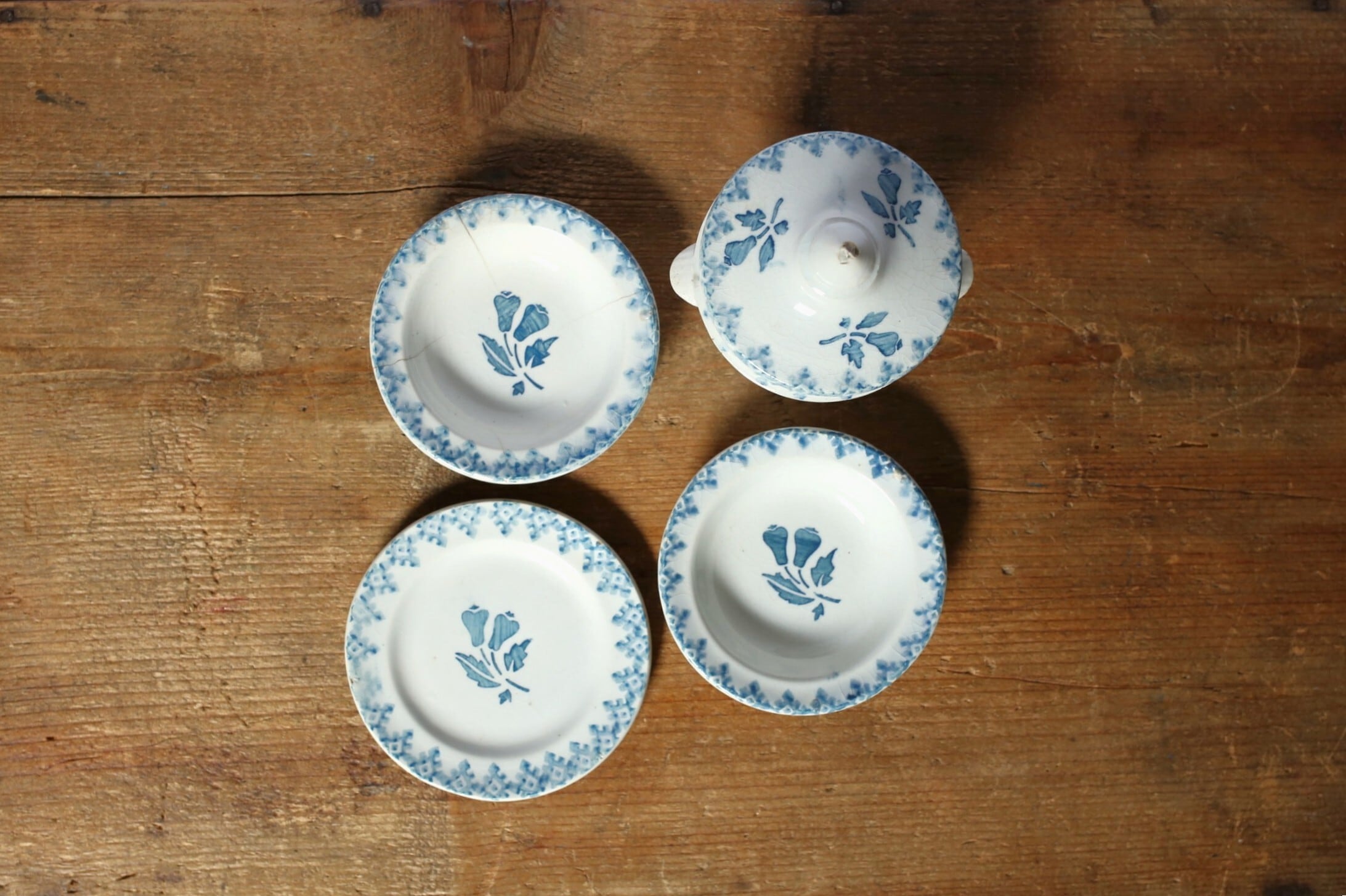 フランス アンティーク 陶器 dinette ままごと用 4点セット (スーピエール+平皿1枚+深皿2枚) N-04436