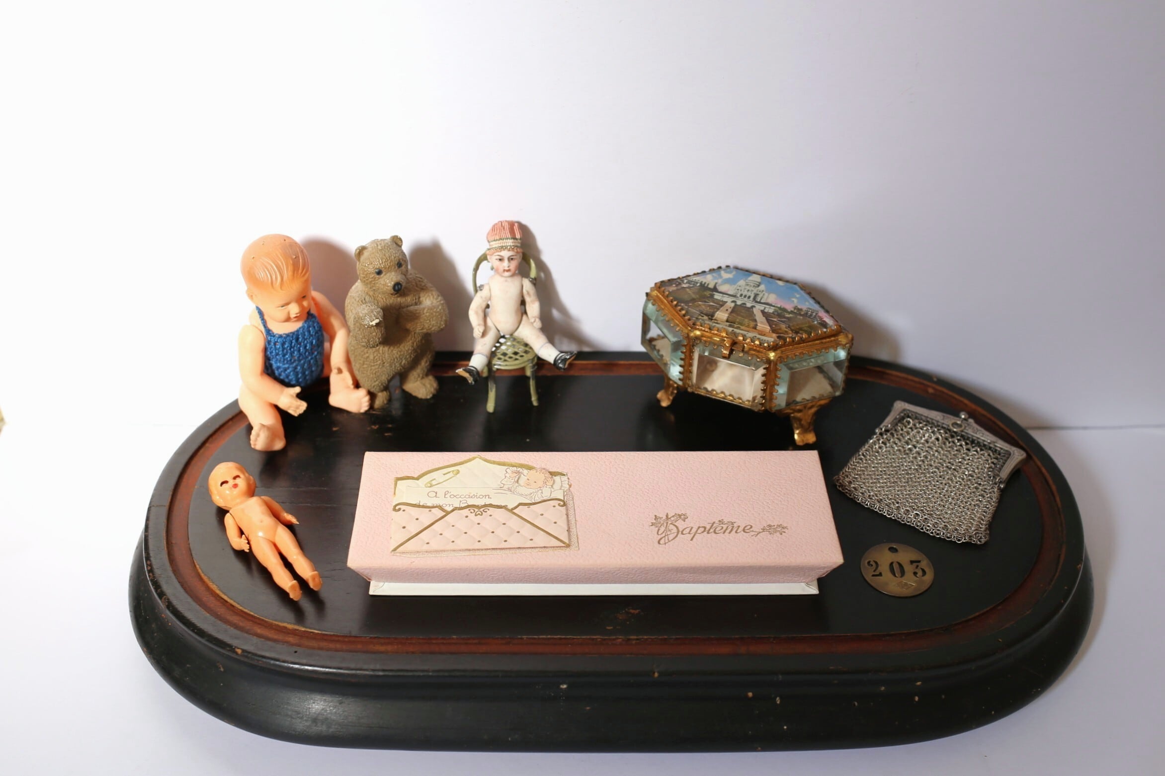 パリの蚤の市で見つけた洗礼(Bapteme)式のお祝いで使われたドラジェボックスです。