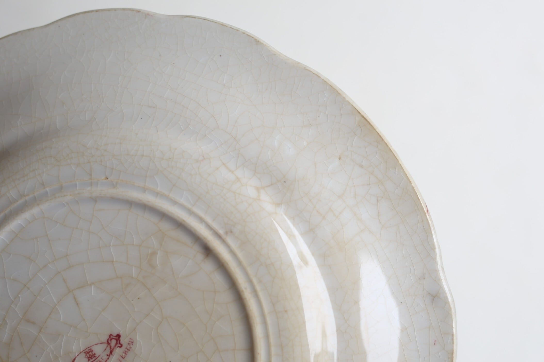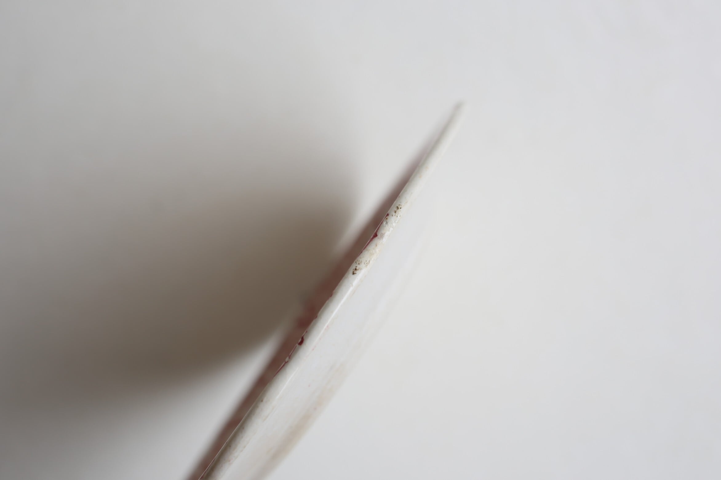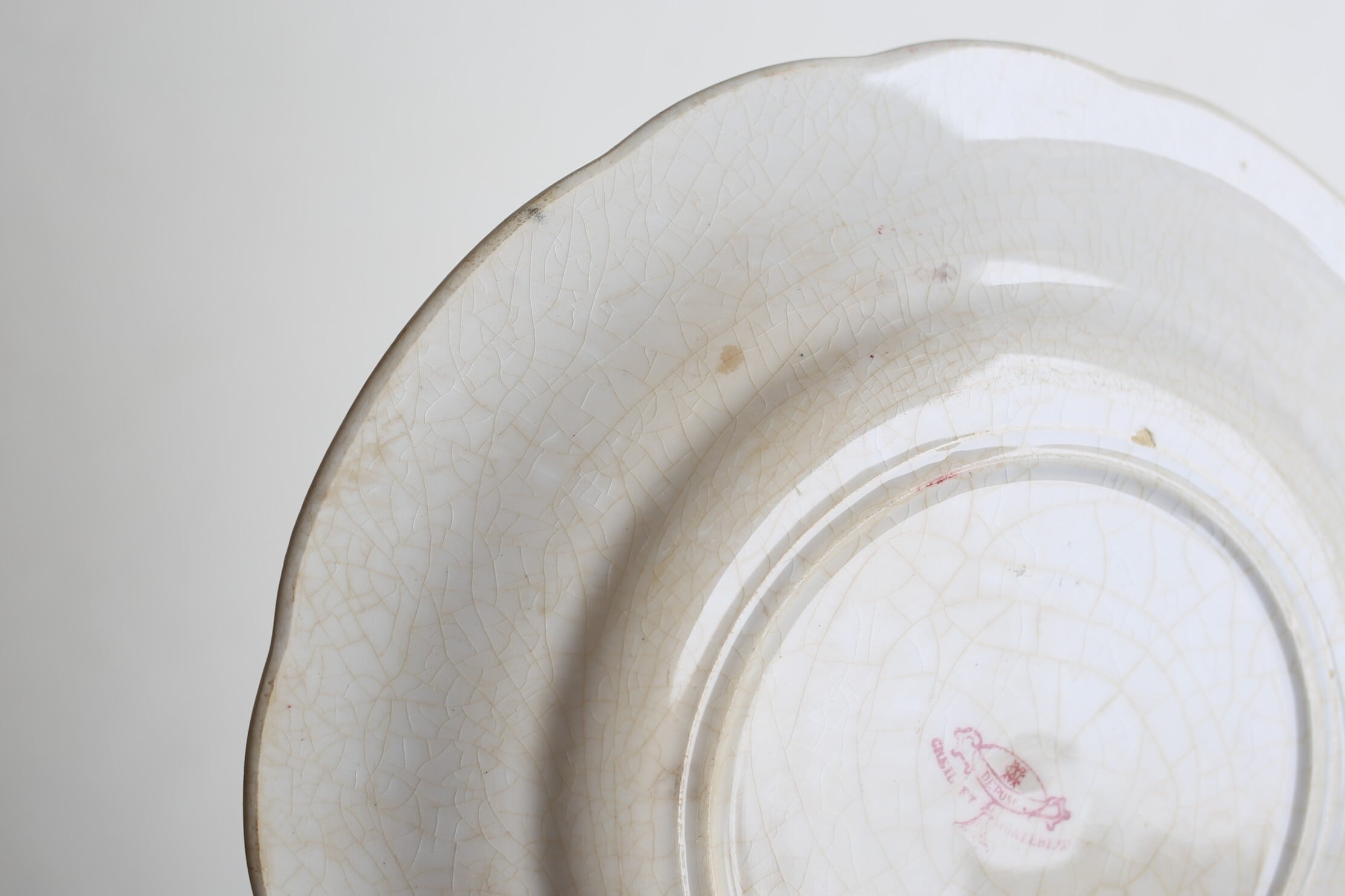 高台付近に薄い剥離のようなチップがありますが、それ以外はカトラリー跡やスレ程度で、釉薬の艶も美しく全体的には良い状態です。