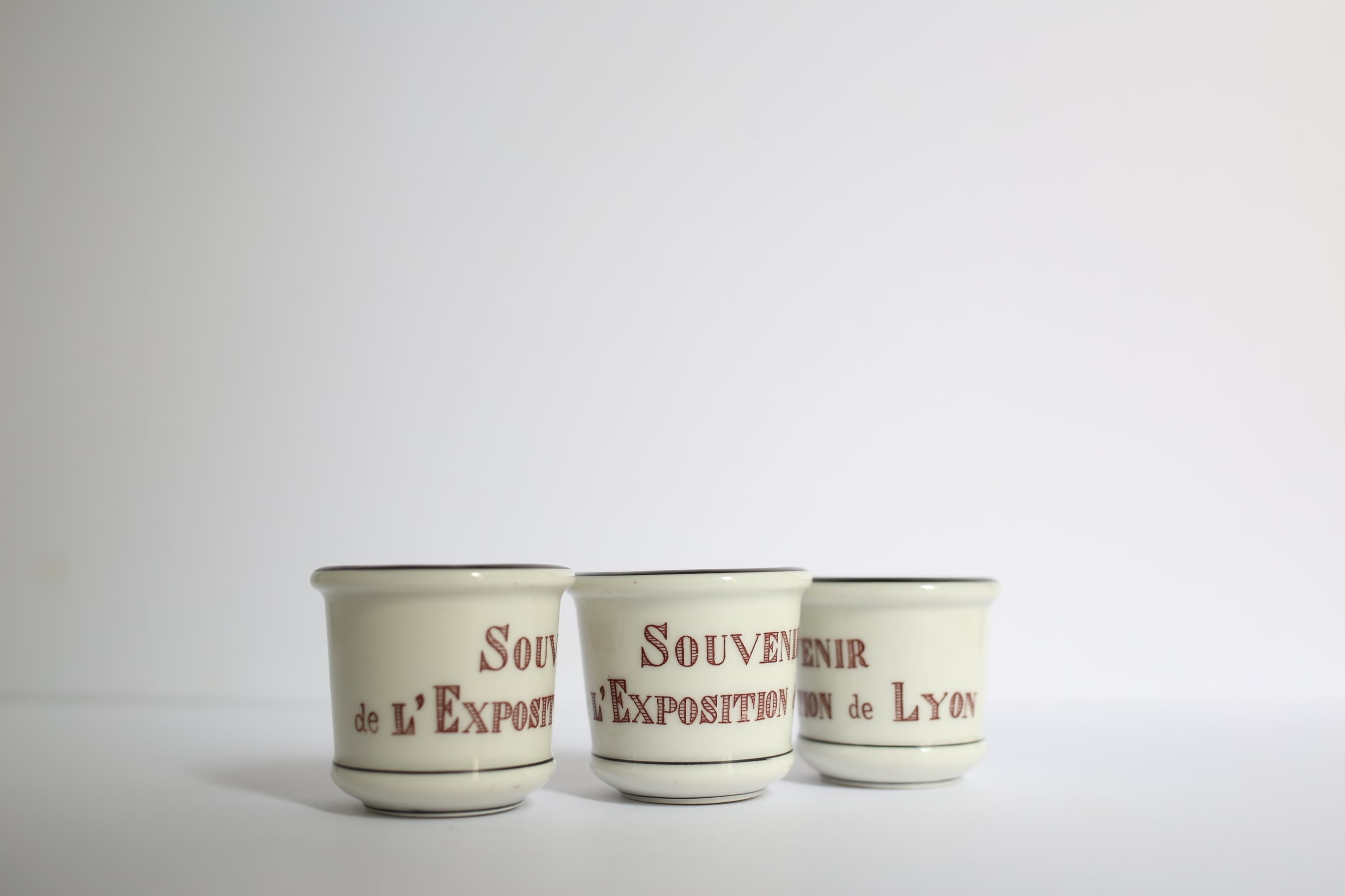 『SOUVENIR de L'EXPOSITION de LYON』の文字が入った小さな穴あきポットです。