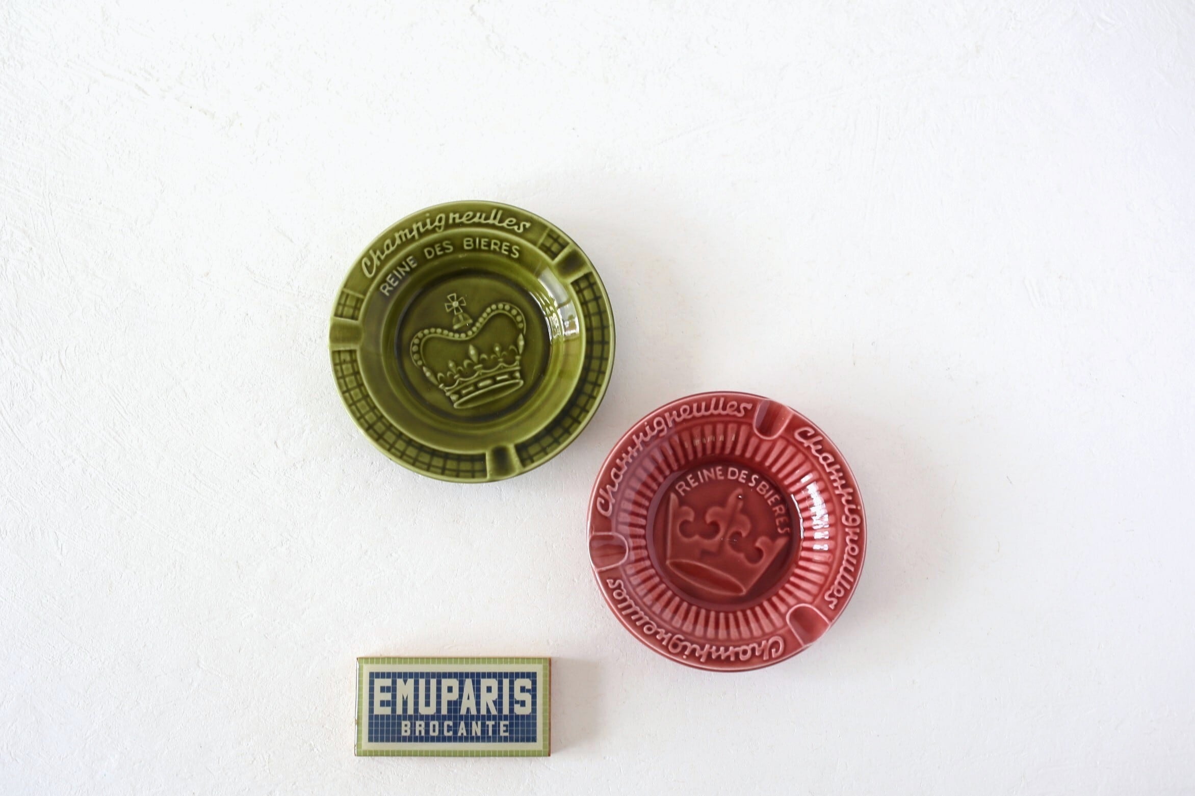 フランス アンティーク ヴィンテージ 『Champigneulles』 灰皿 グリーン&ボルドー N-05883、N-05282