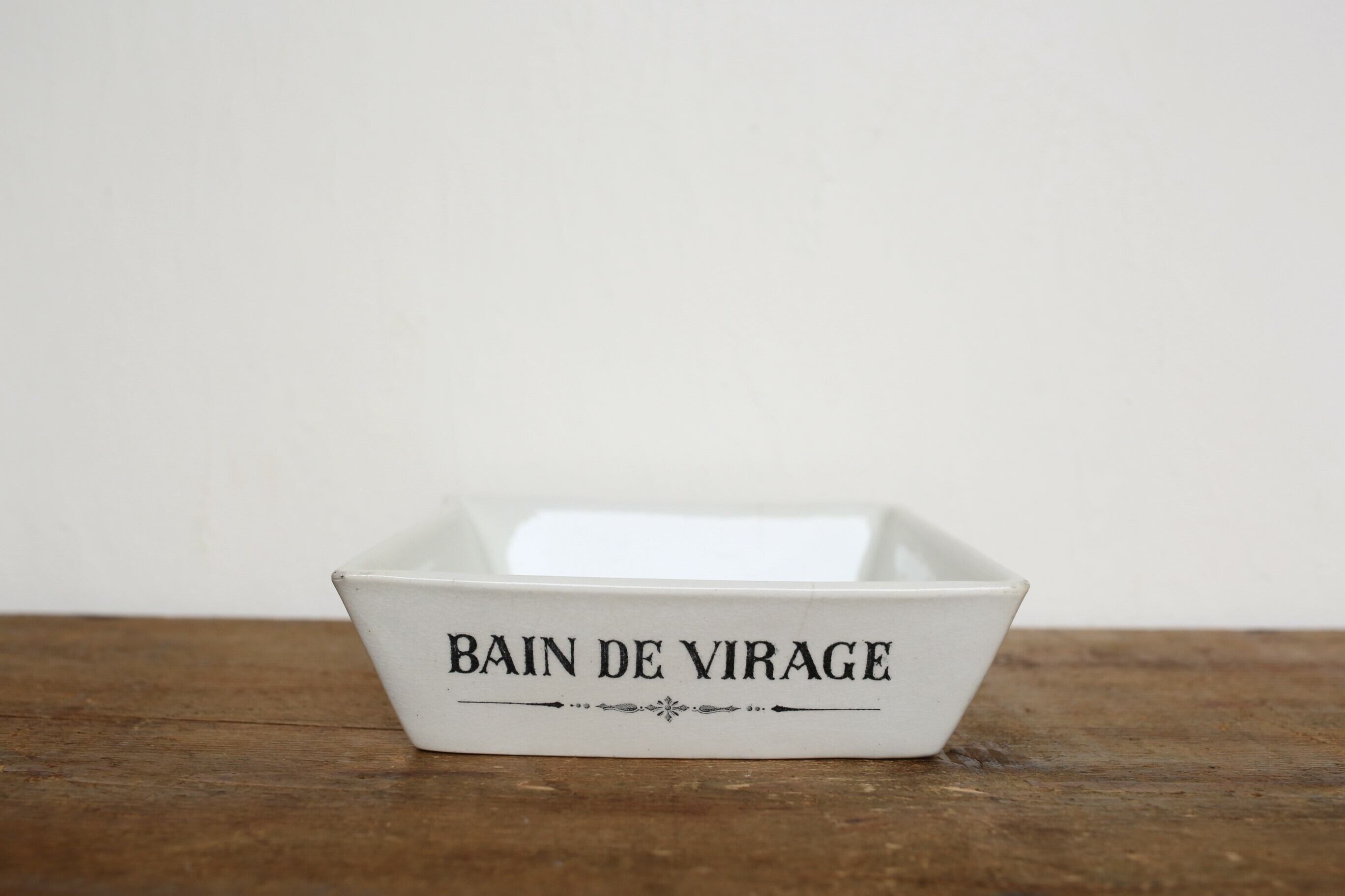 フランスで見つけた陶器製の素敵なフォルムの現像用トレイです。