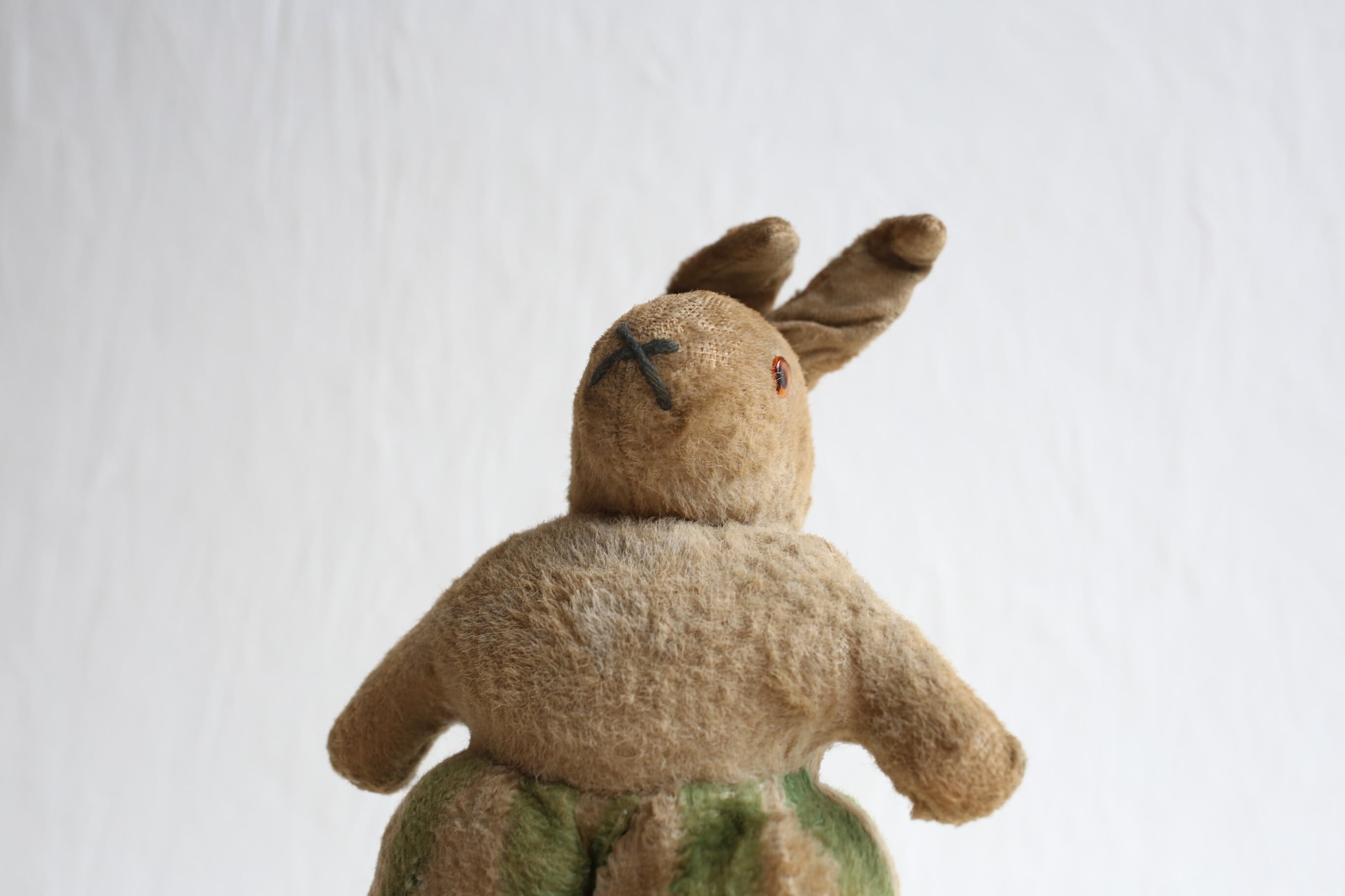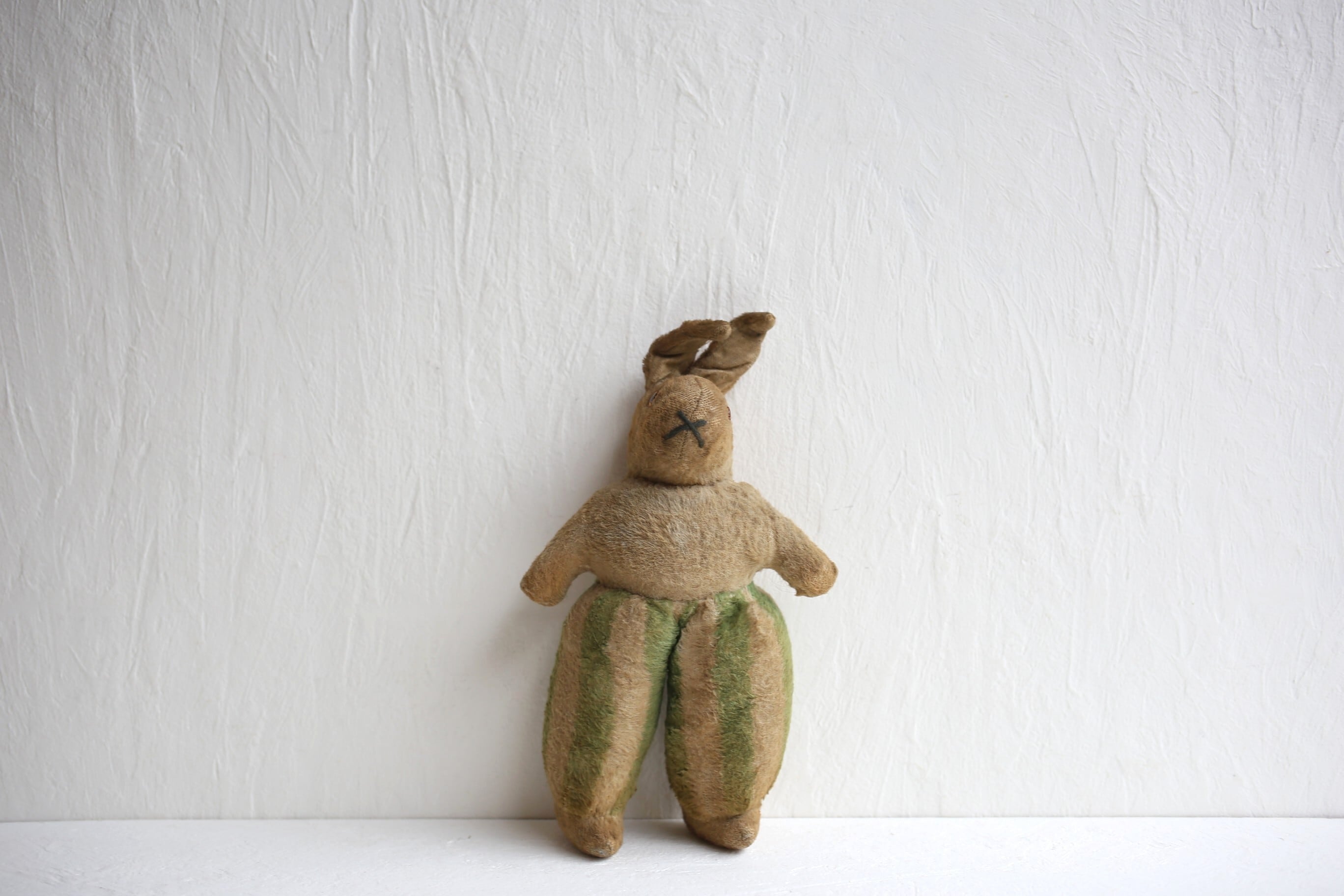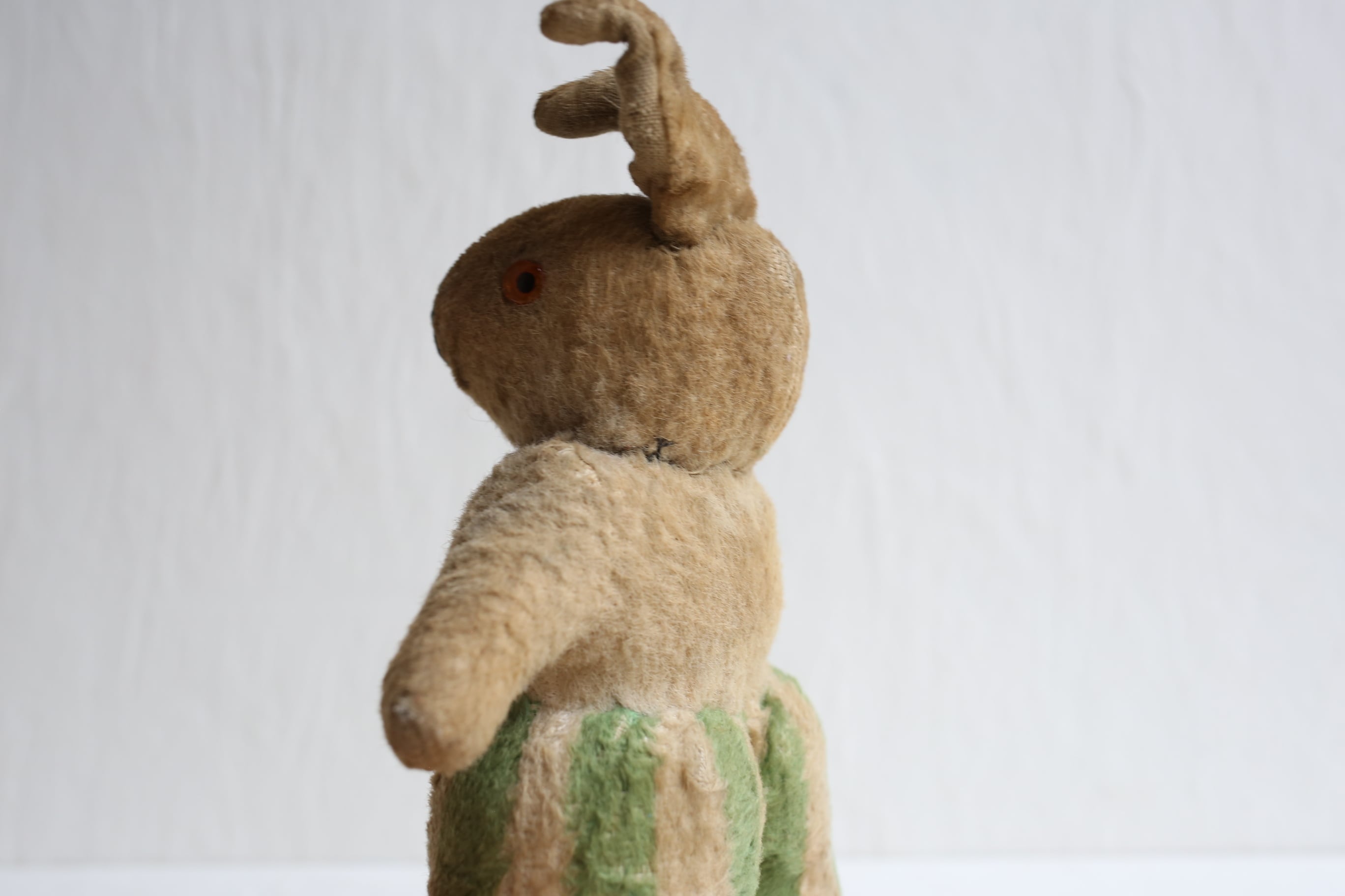 フランス アンティーク ヴィンテージ ぬいぐるみ ウサギ ストライプ脚 約26cm N-06242