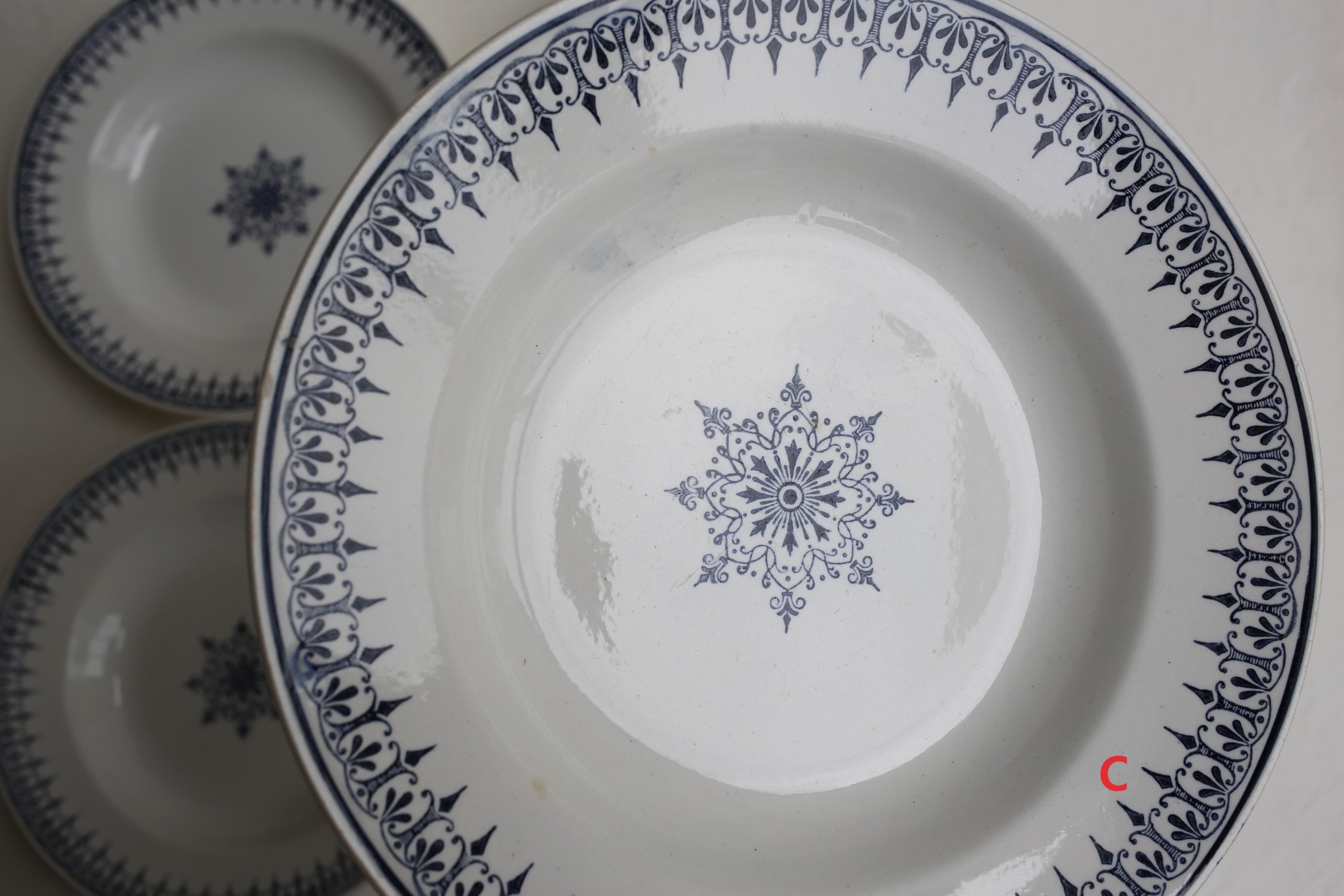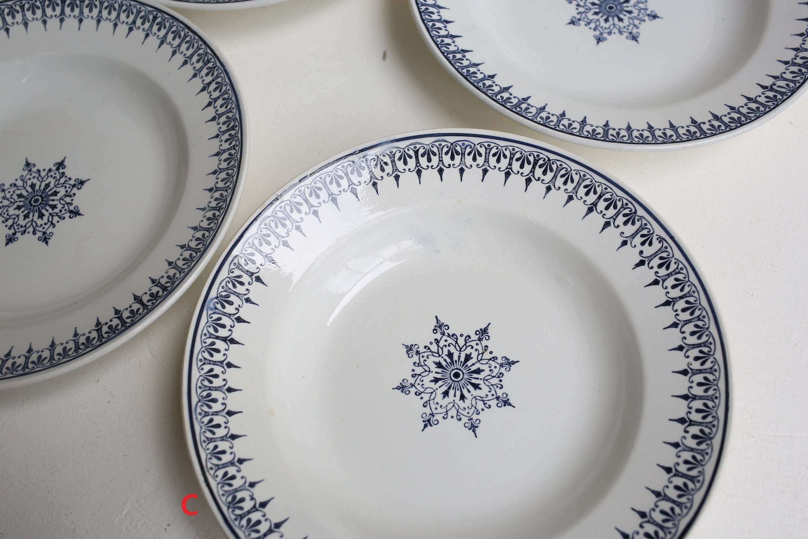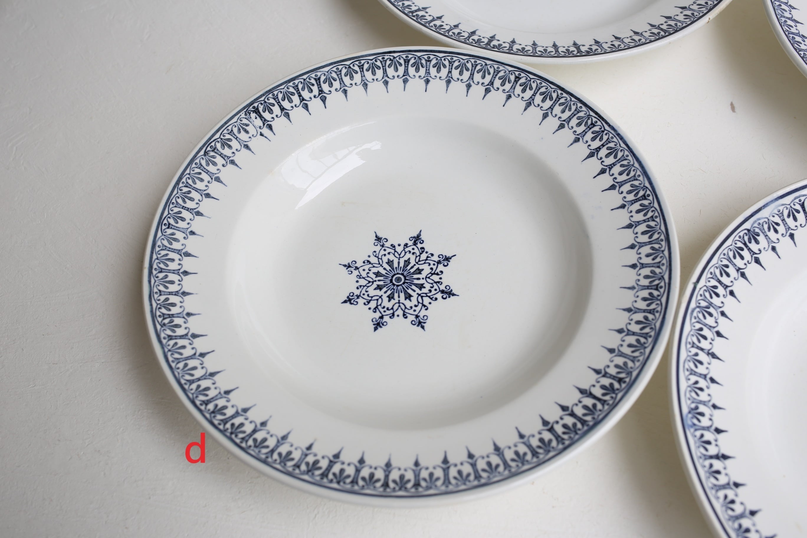 縁にスレや微細なチップ、わずかに小さなシミなどありますが、それ以外は釉薬や転写ムラなど製造時のムラ程度で、全体的にはカトラリー跡や目立つダメージも少なく、釉薬の艶も美しい良い状態です。