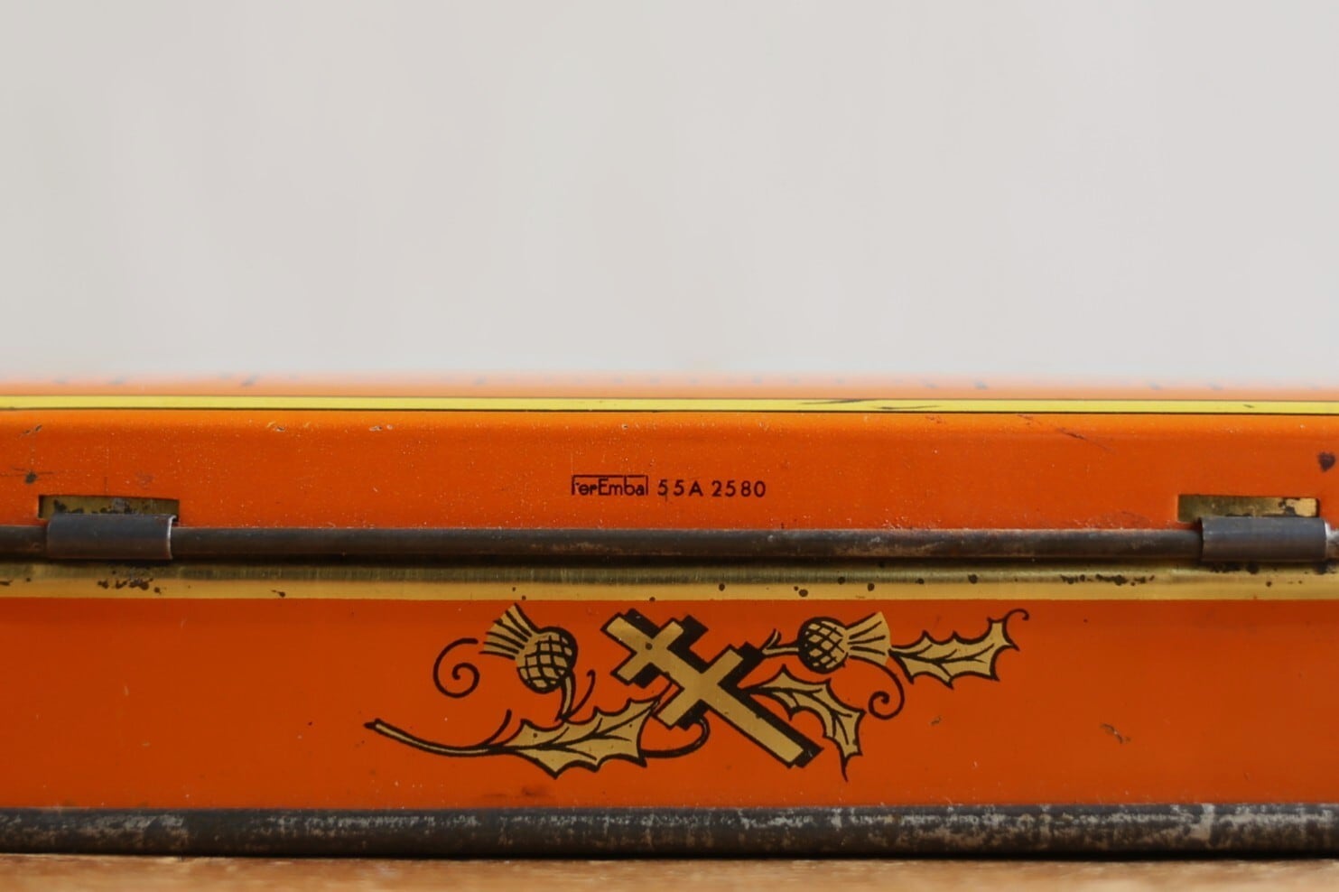 フランス アンティーク ヴィンテージ BERGAMOTES DE NANCY ベルガモット飴缶 ロレーヌ十字 オレンジ N-06197