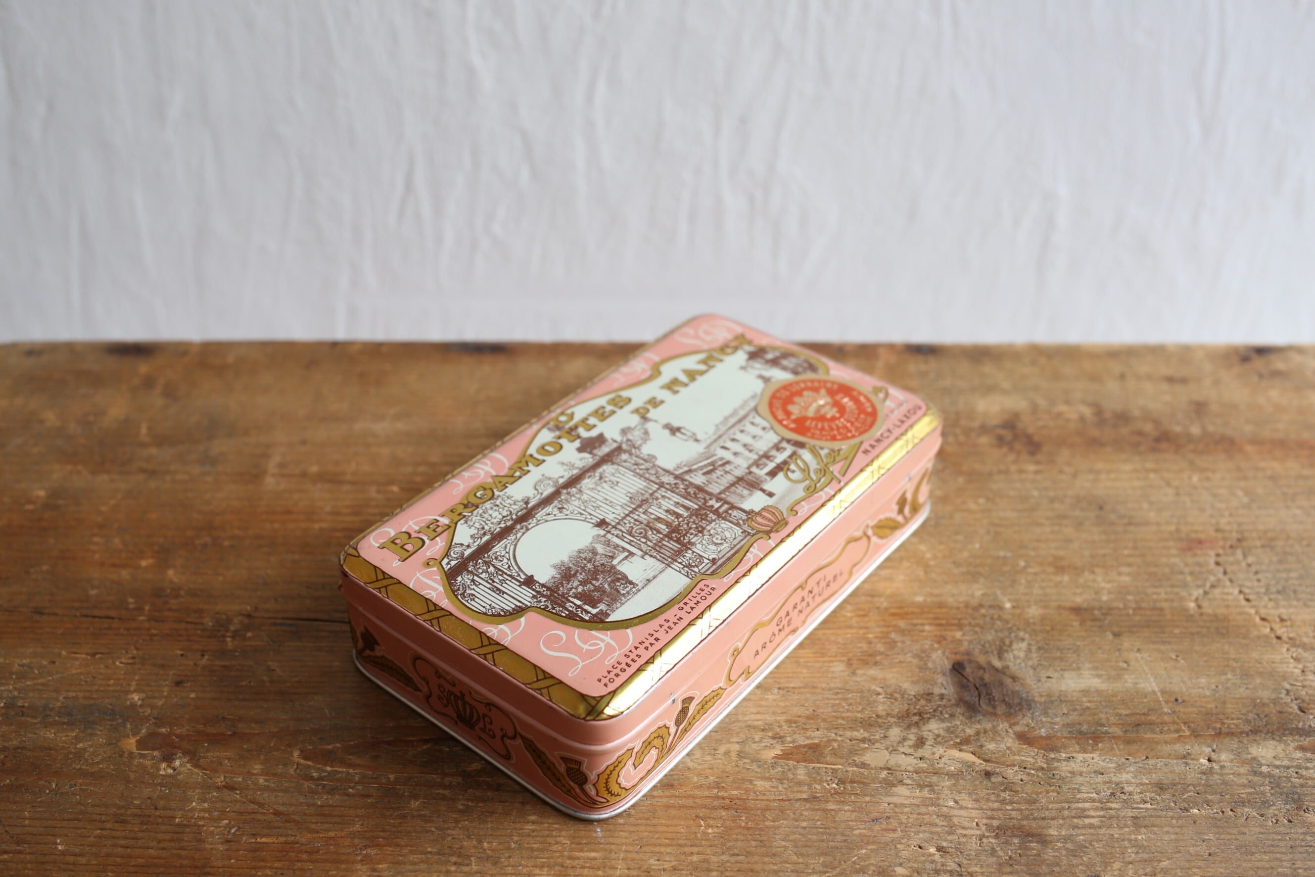 フランス アンティーク ヴィンテージ BERGAMOTTES DE NANCY ベルガモット飴缶 ピンク×ゴールド N-06323