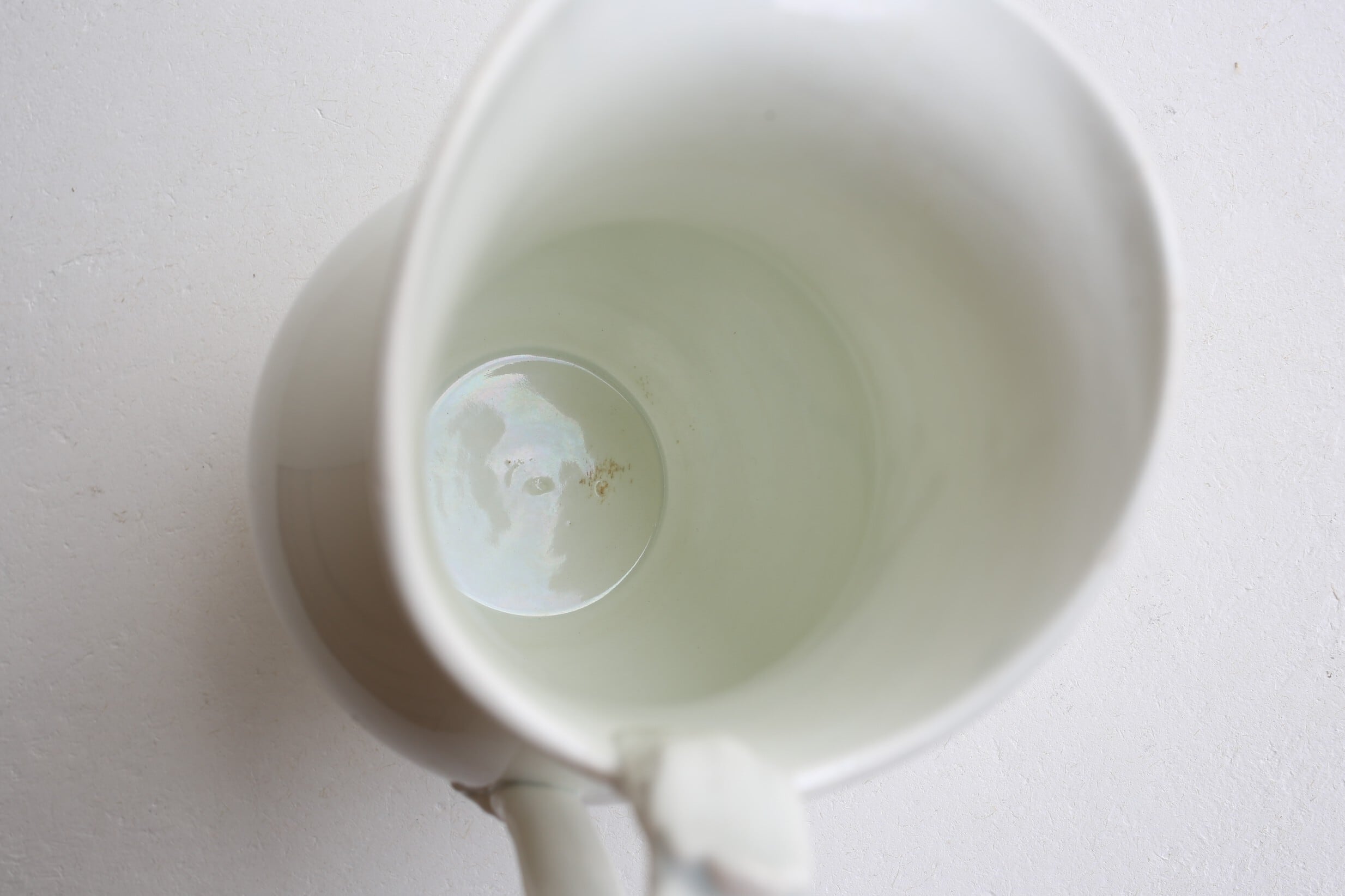 やや青みのある釉薬は玉虫色に優しく輝き、ピシェをより美しく彩っています。