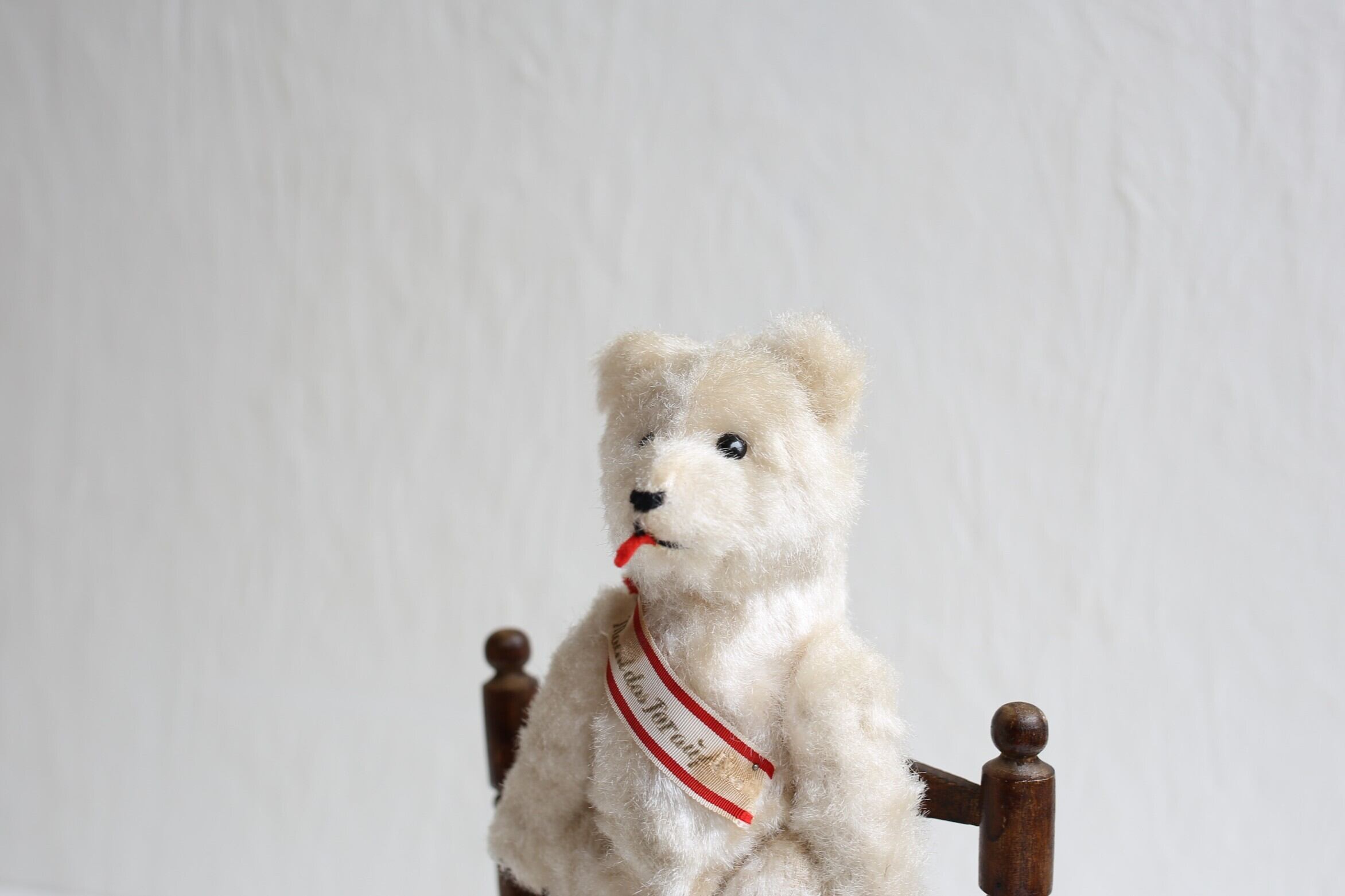 フランスの蚤の市で出会った20cmほどの小さな白いベアです。