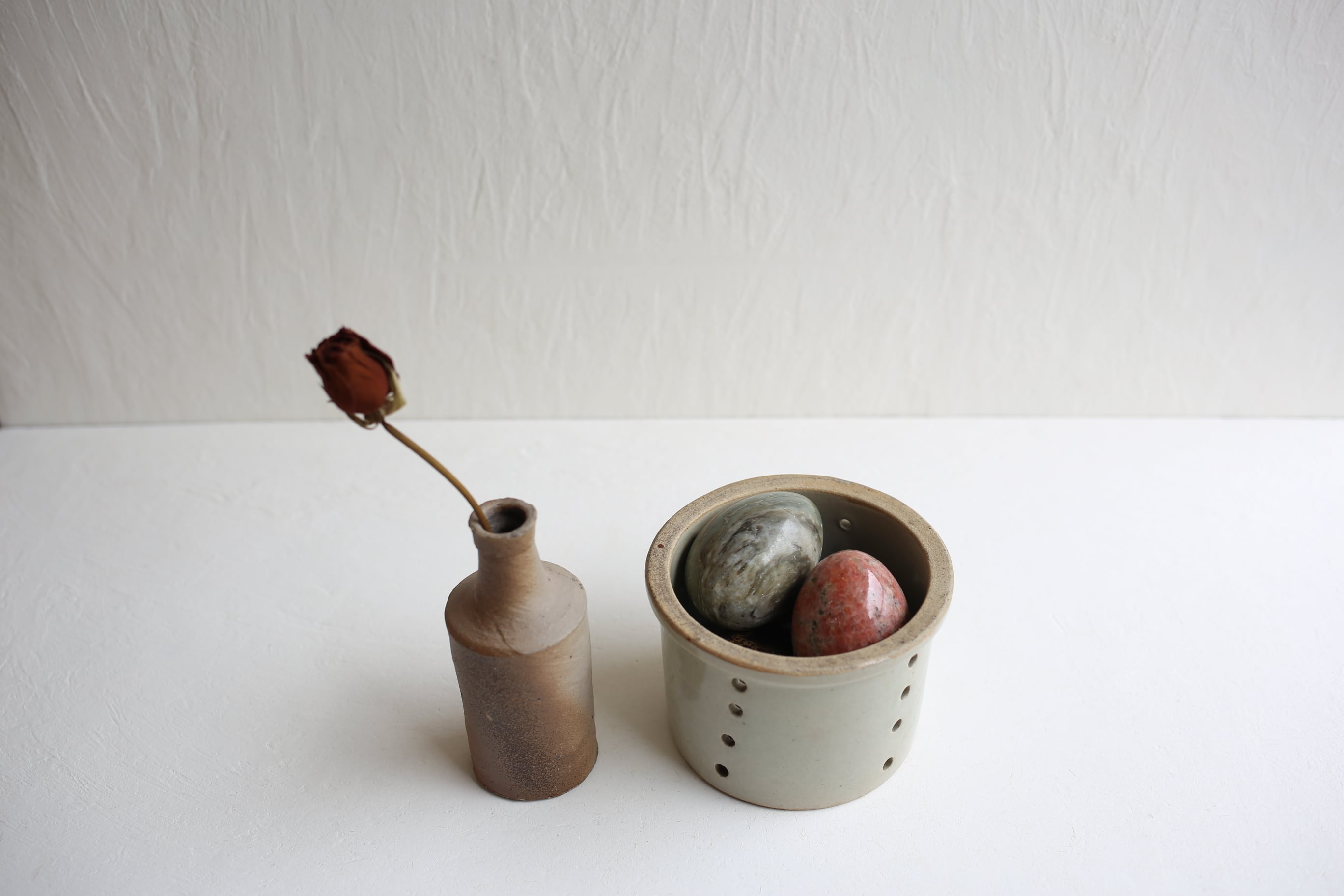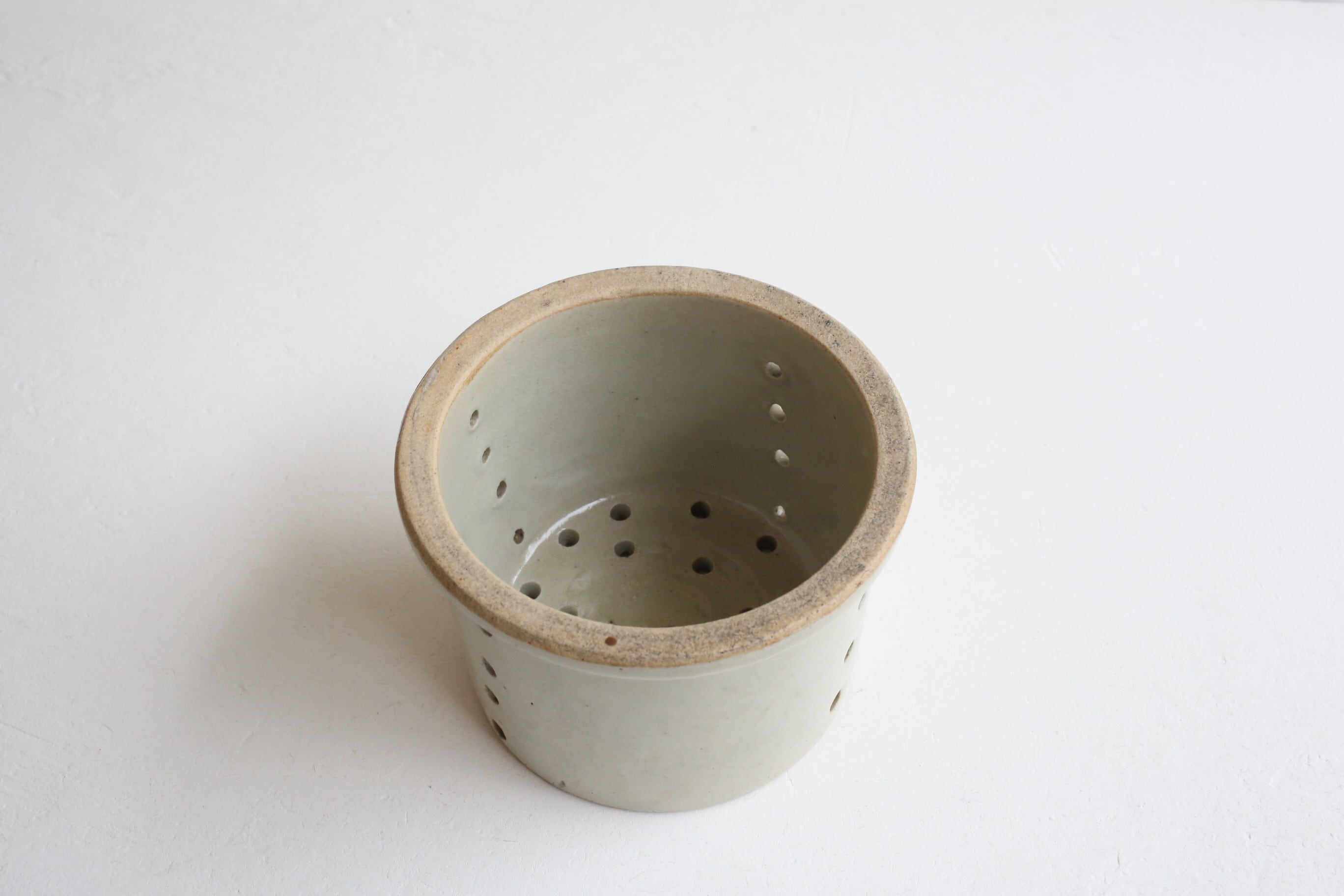 パリの蚤の市で見つけた陶器の水切りポットです。