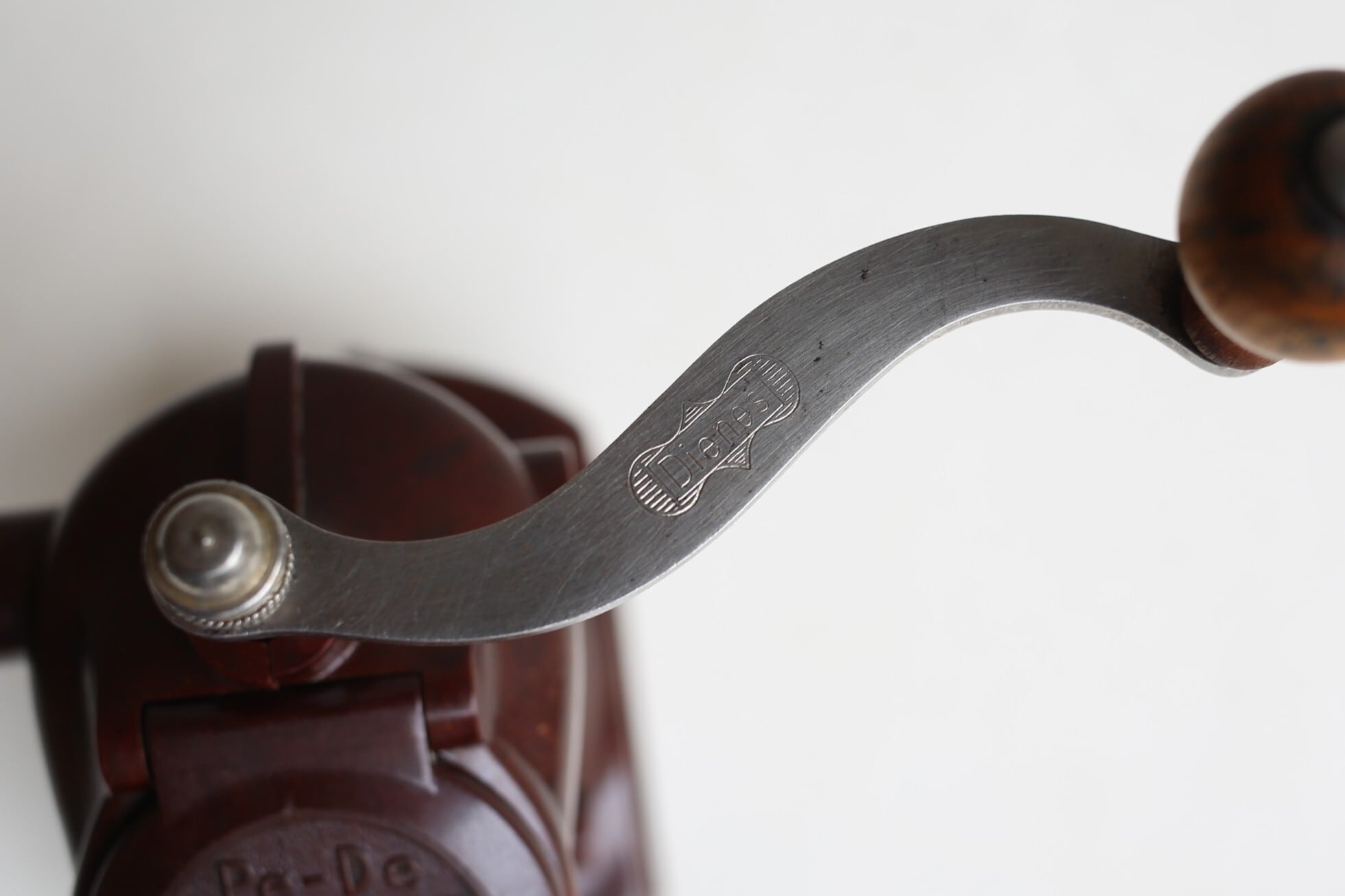 1930年代のこのデザインのコーヒーミルはロゴが異なるものや、挽いたコーヒーの取り出し口に蓋のないものなどいくつかモデルが存在します。