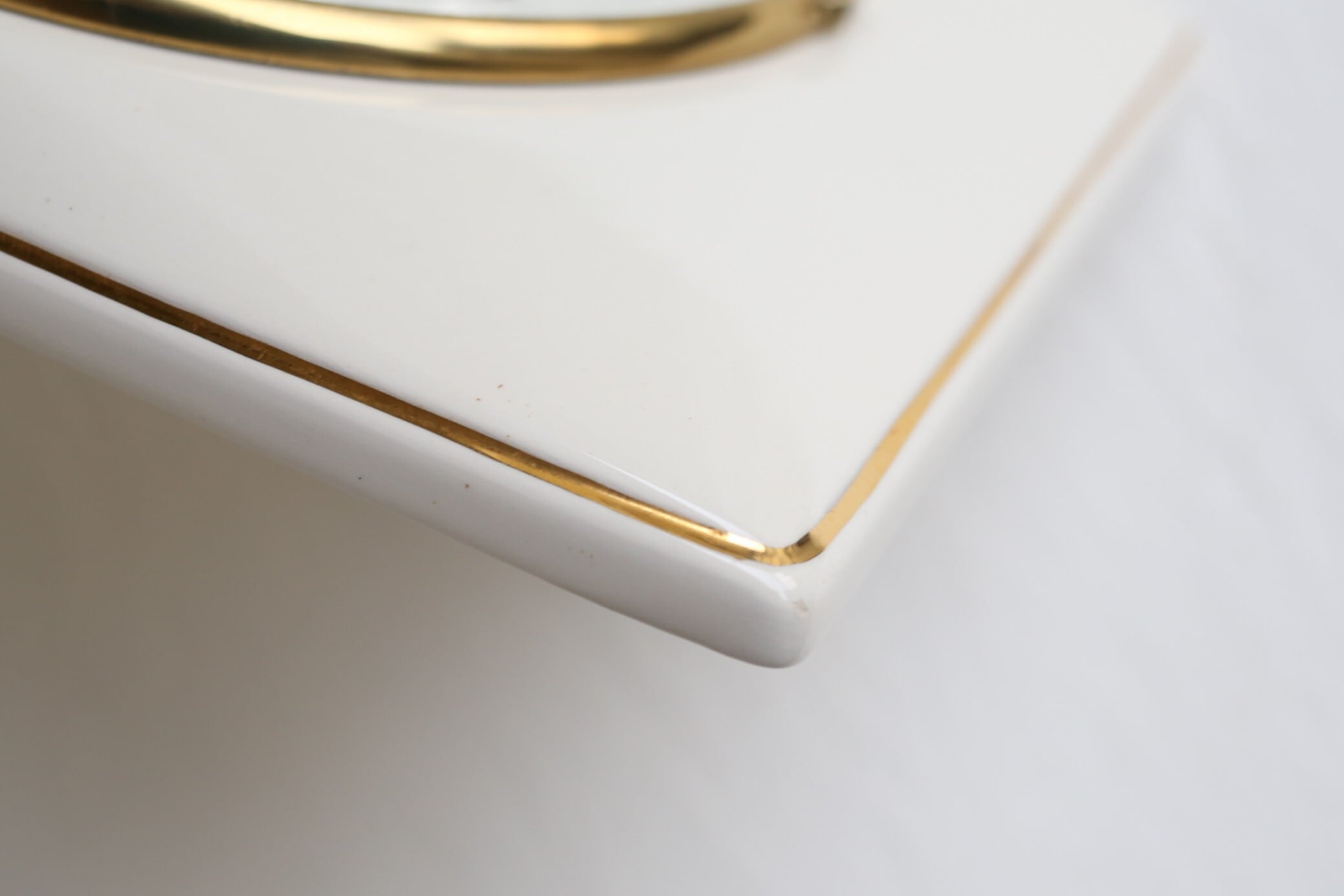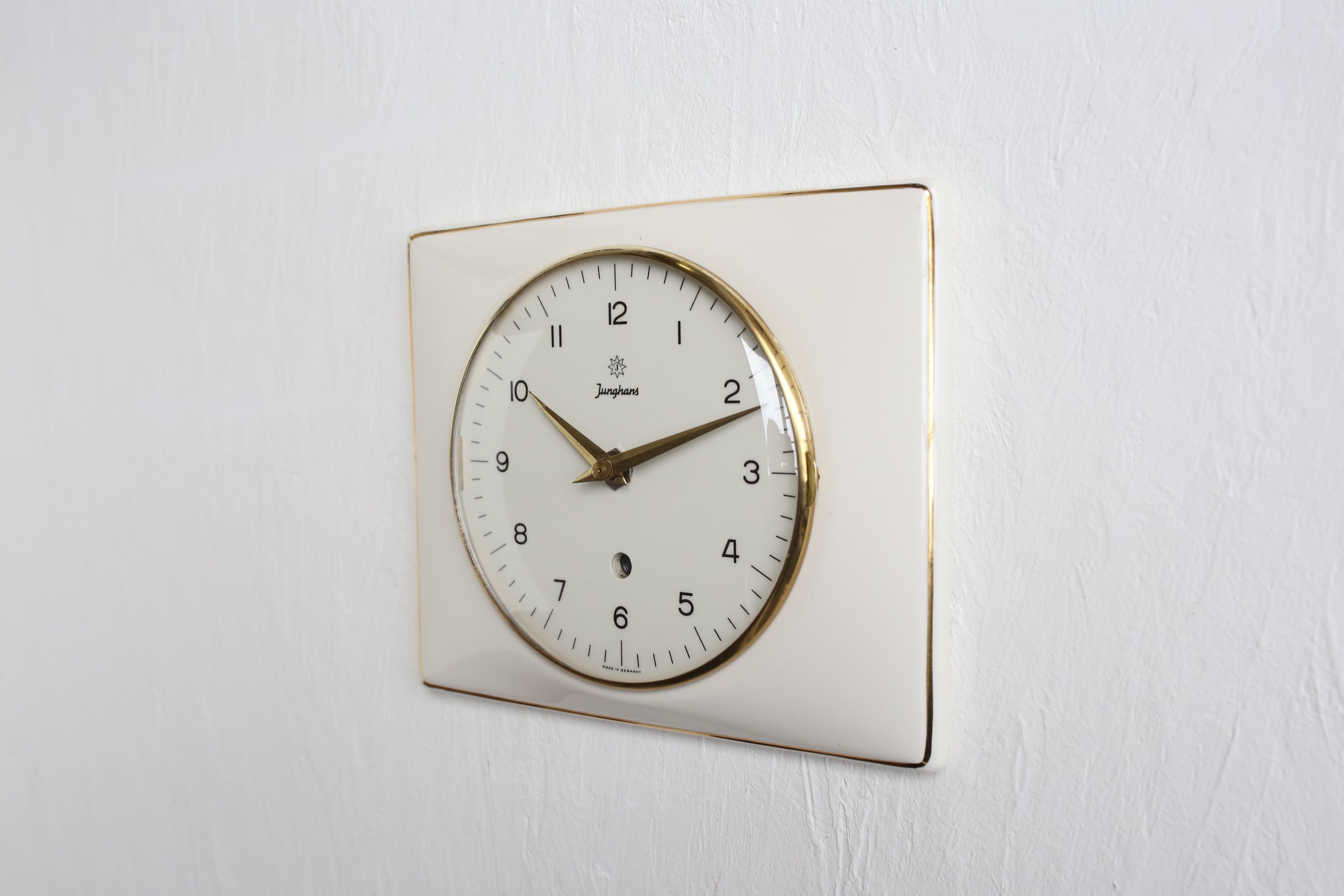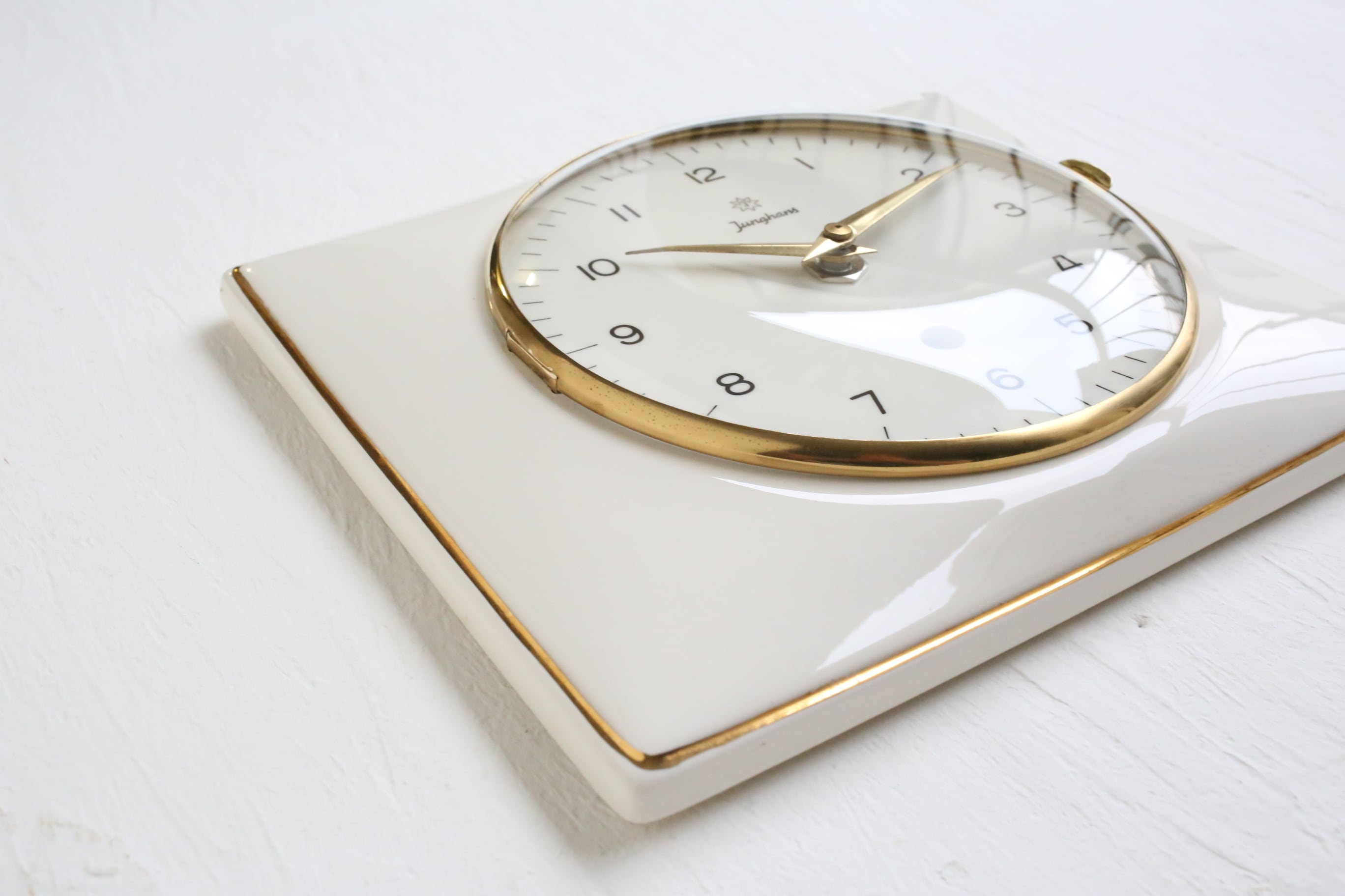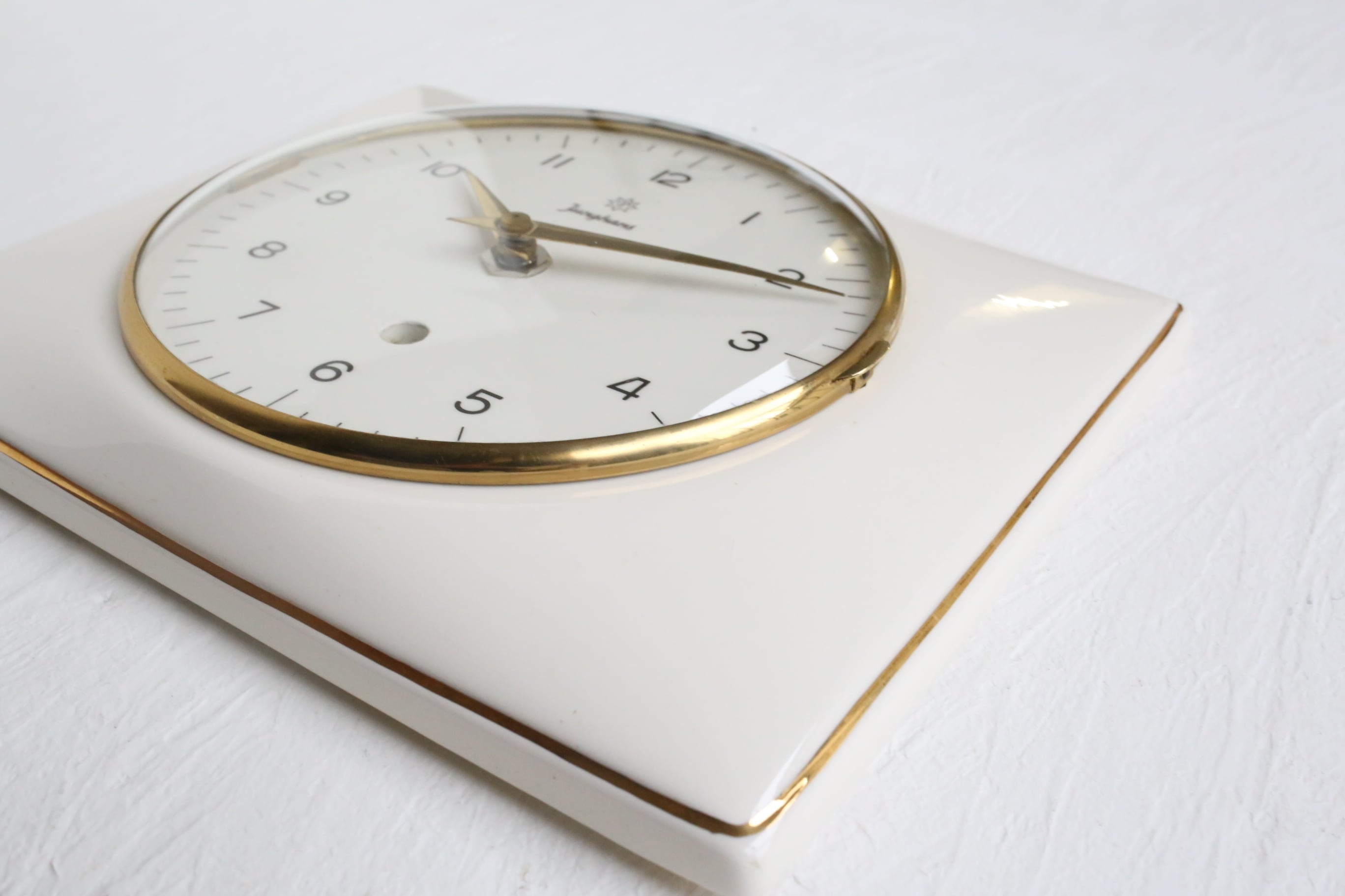 ドイツ アンティーク ヴィンテージ Junghans ユンハンス 陶器 掛時計 アイボリー×ゴールド(単3電池式クォーツ交換済)N-05184