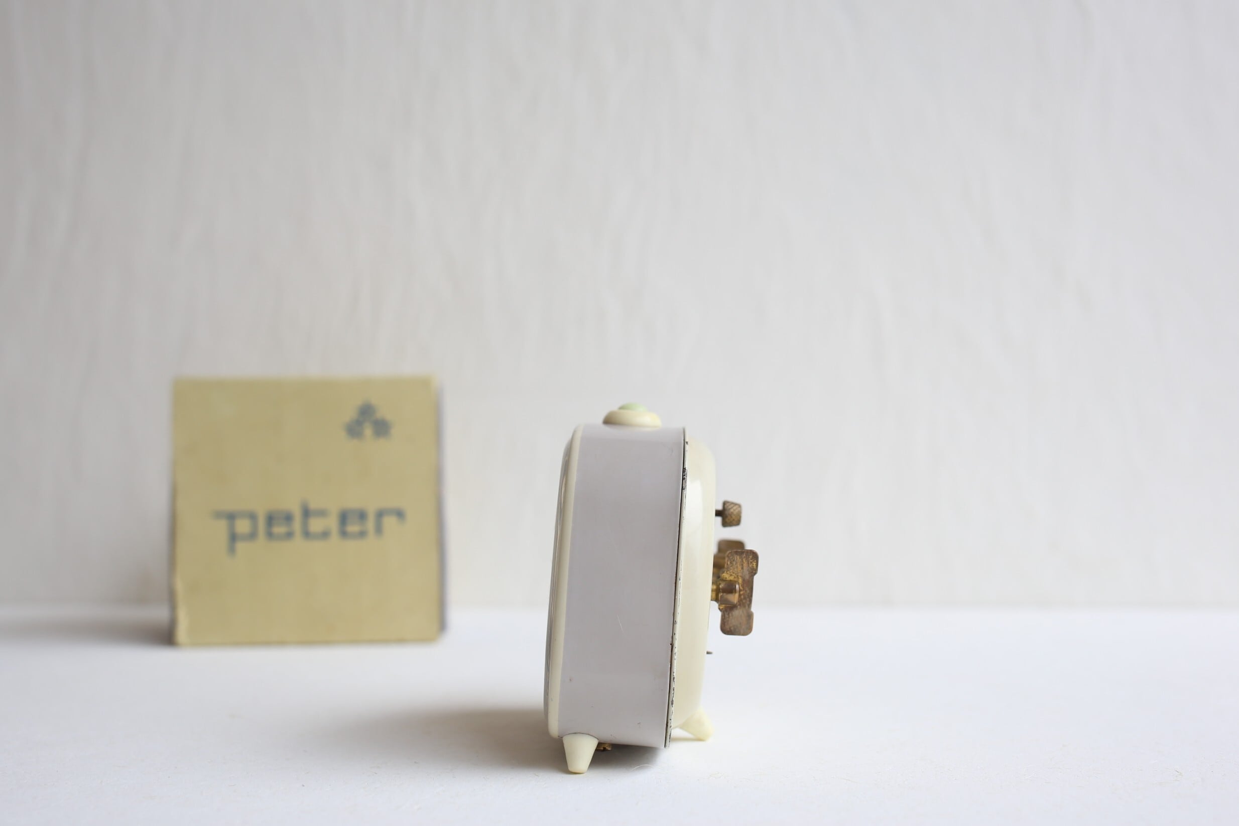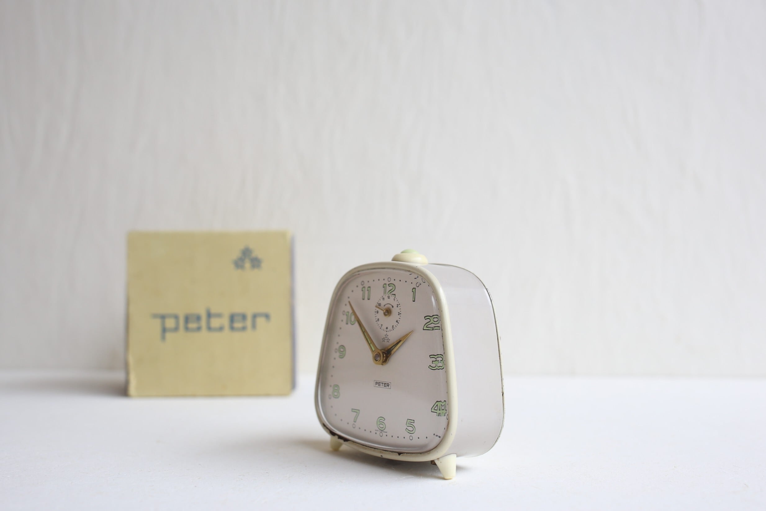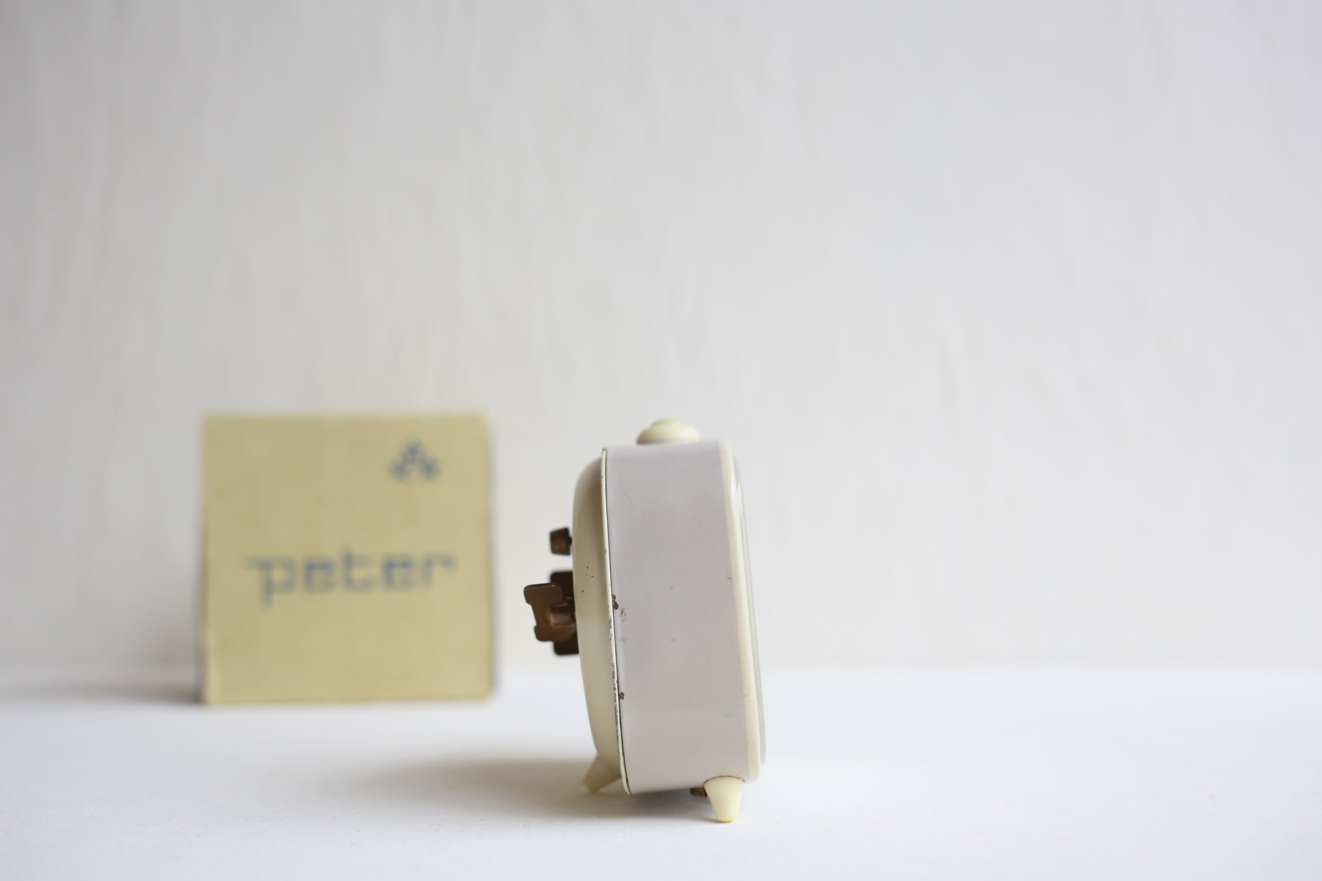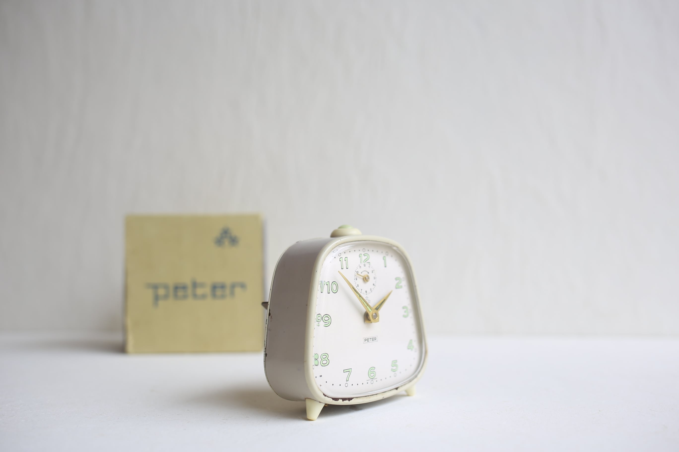 ドイツ アンティーク ヴィンテージ PETER 目覚まし時計 台形 アイボリー×グレー 箱付き N-06237