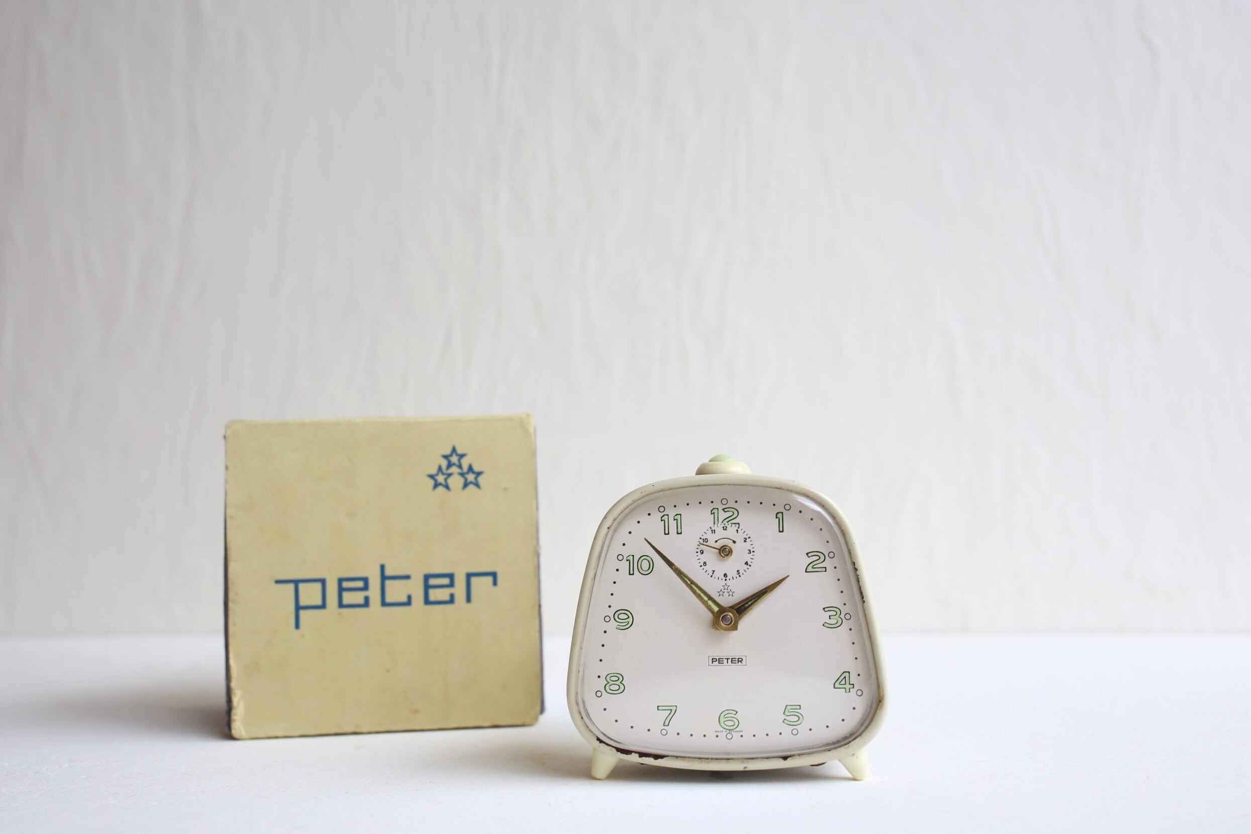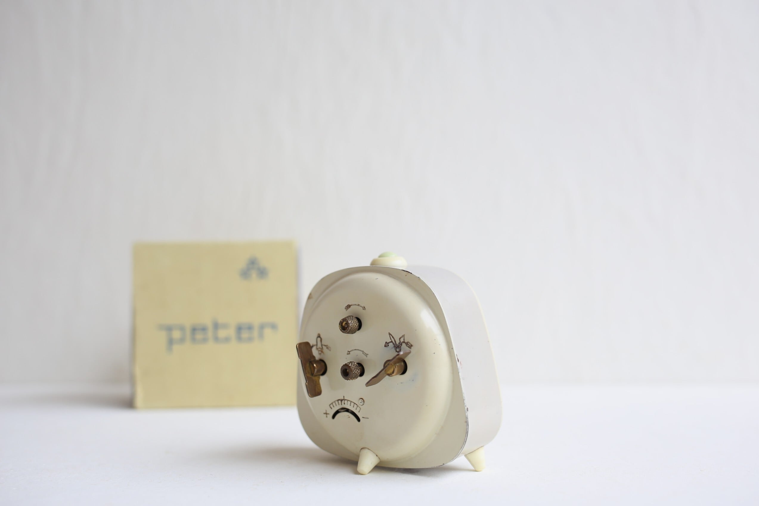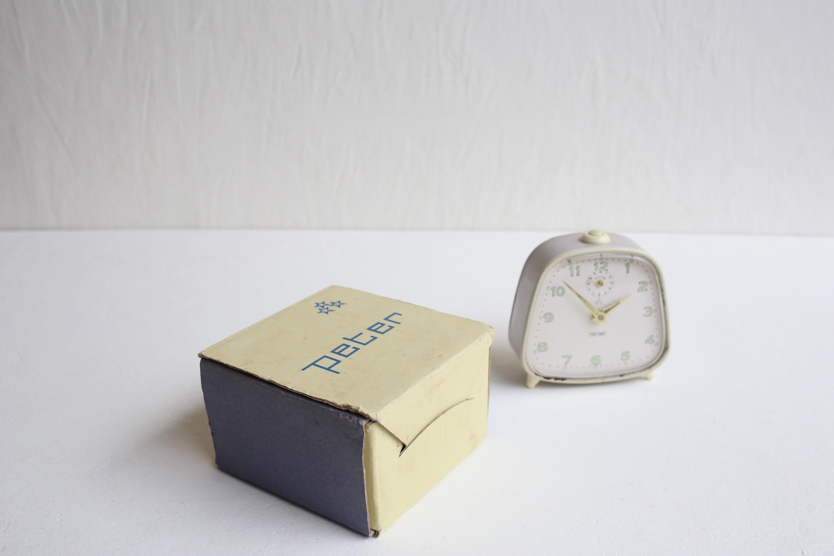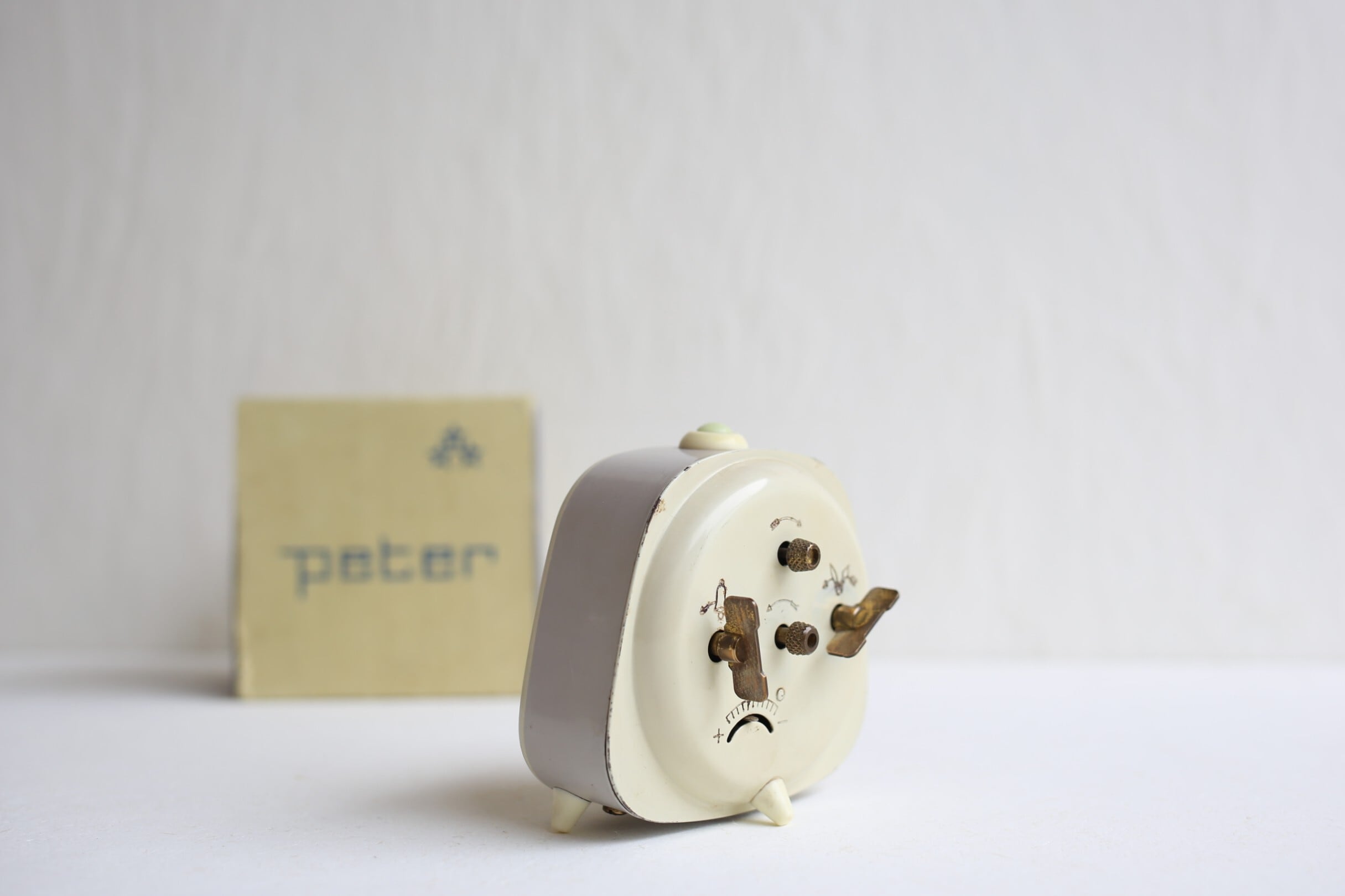ドイツ アンティーク ヴィンテージ PETER 目覚まし時計 台形 アイボリー×グレー 箱付き N-06237