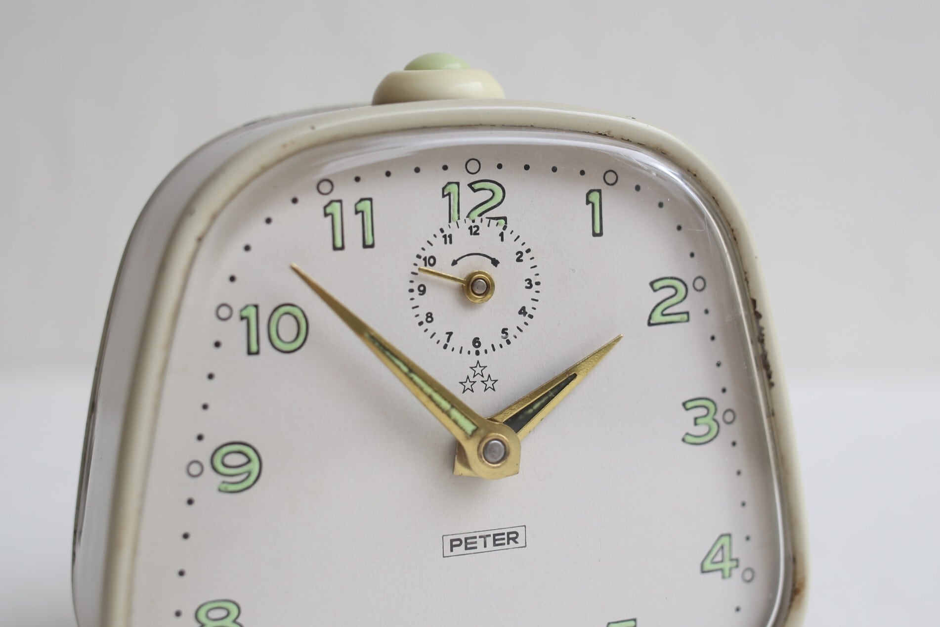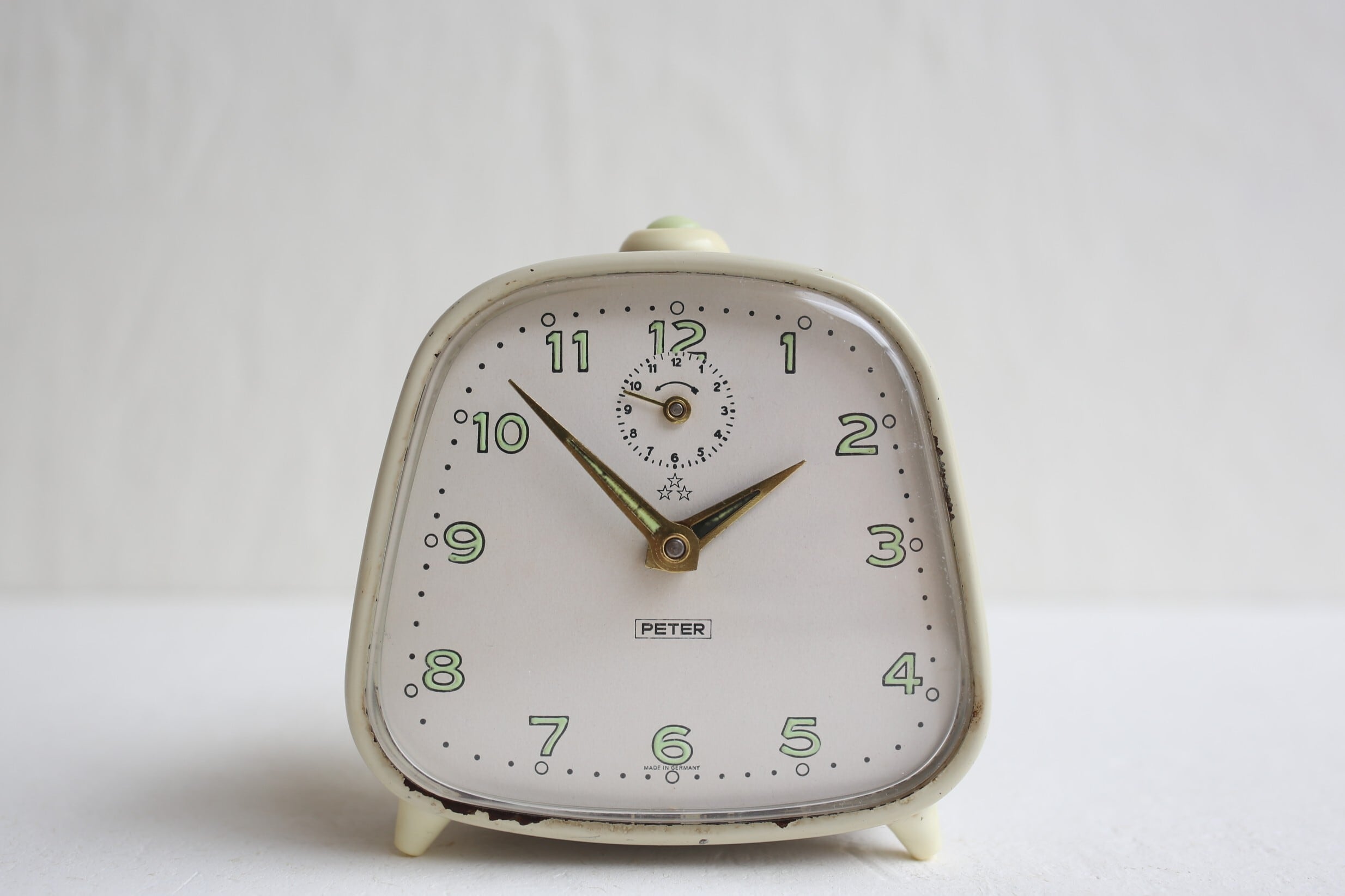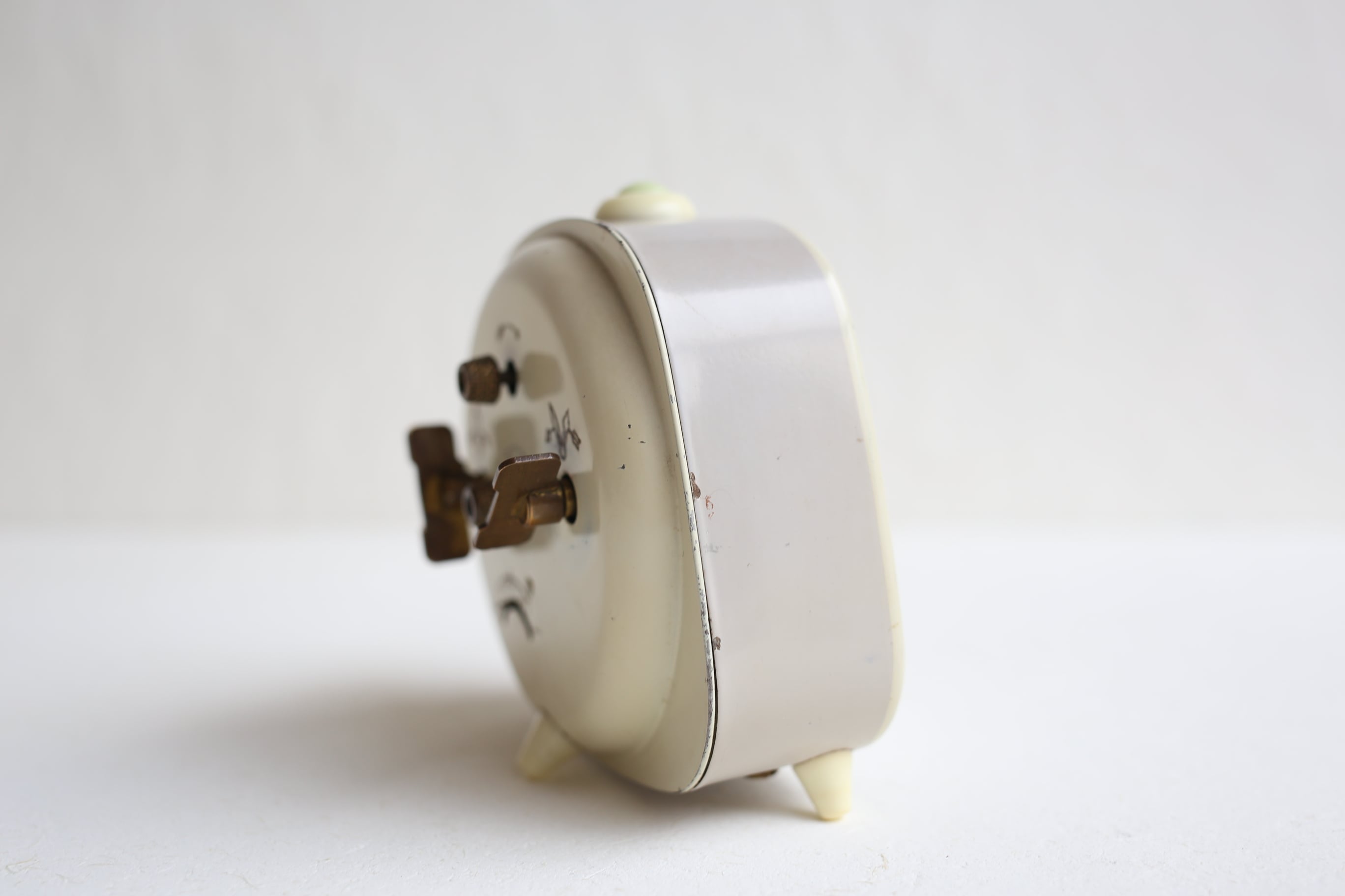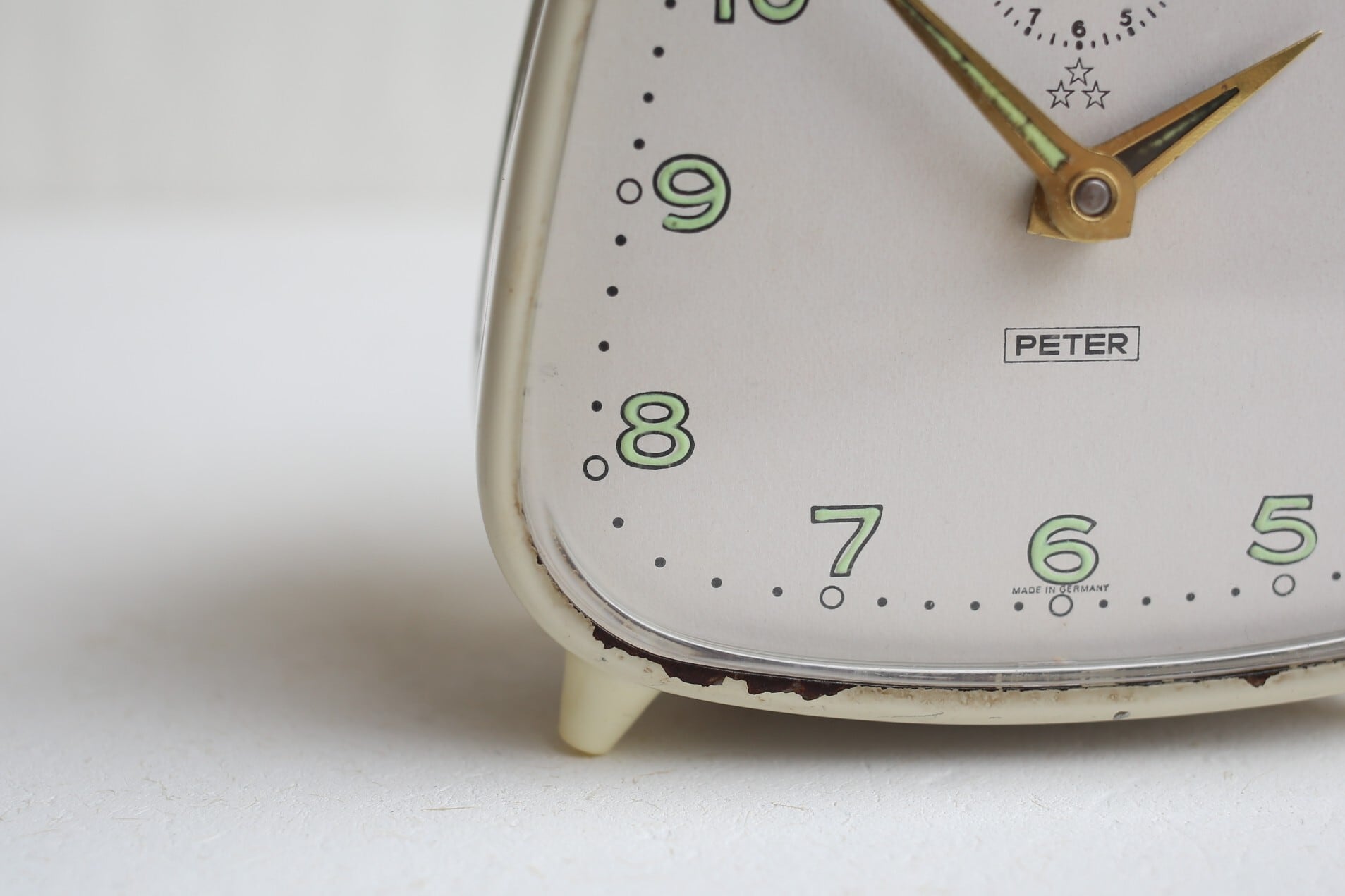 ドイツ アンティーク ヴィンテージ PETER 目覚まし時計 台形 アイボリー×グレー 箱付き N-06237