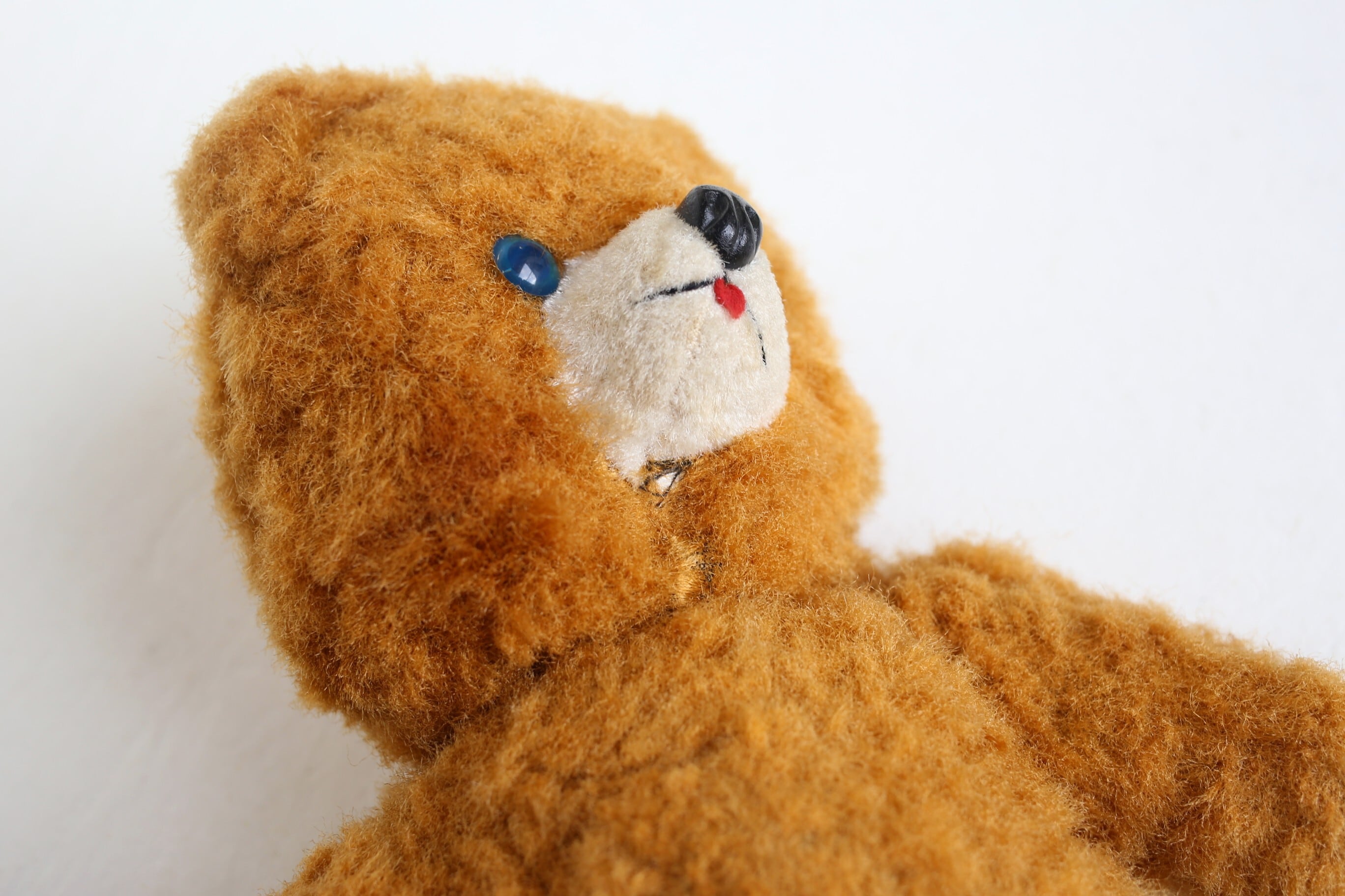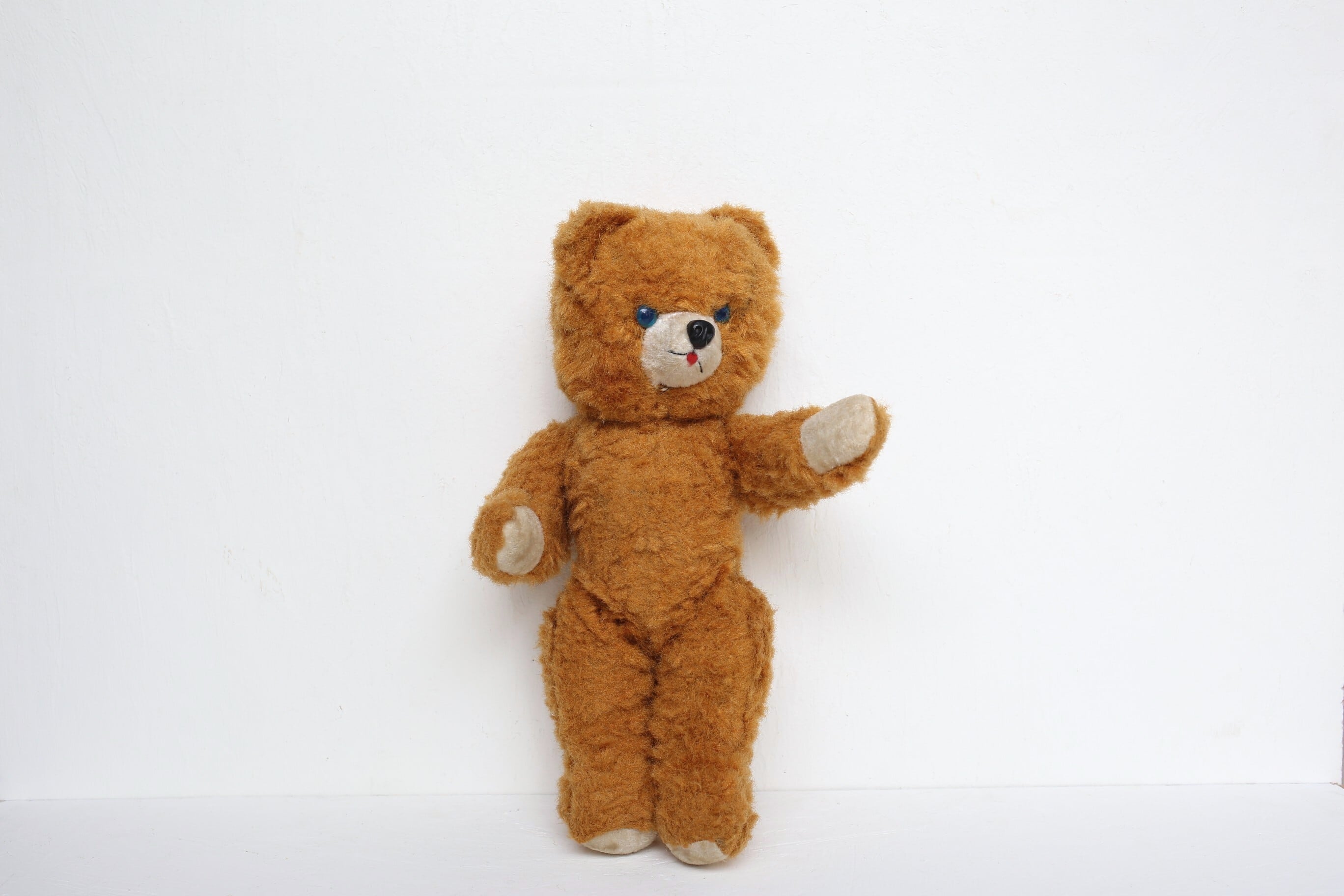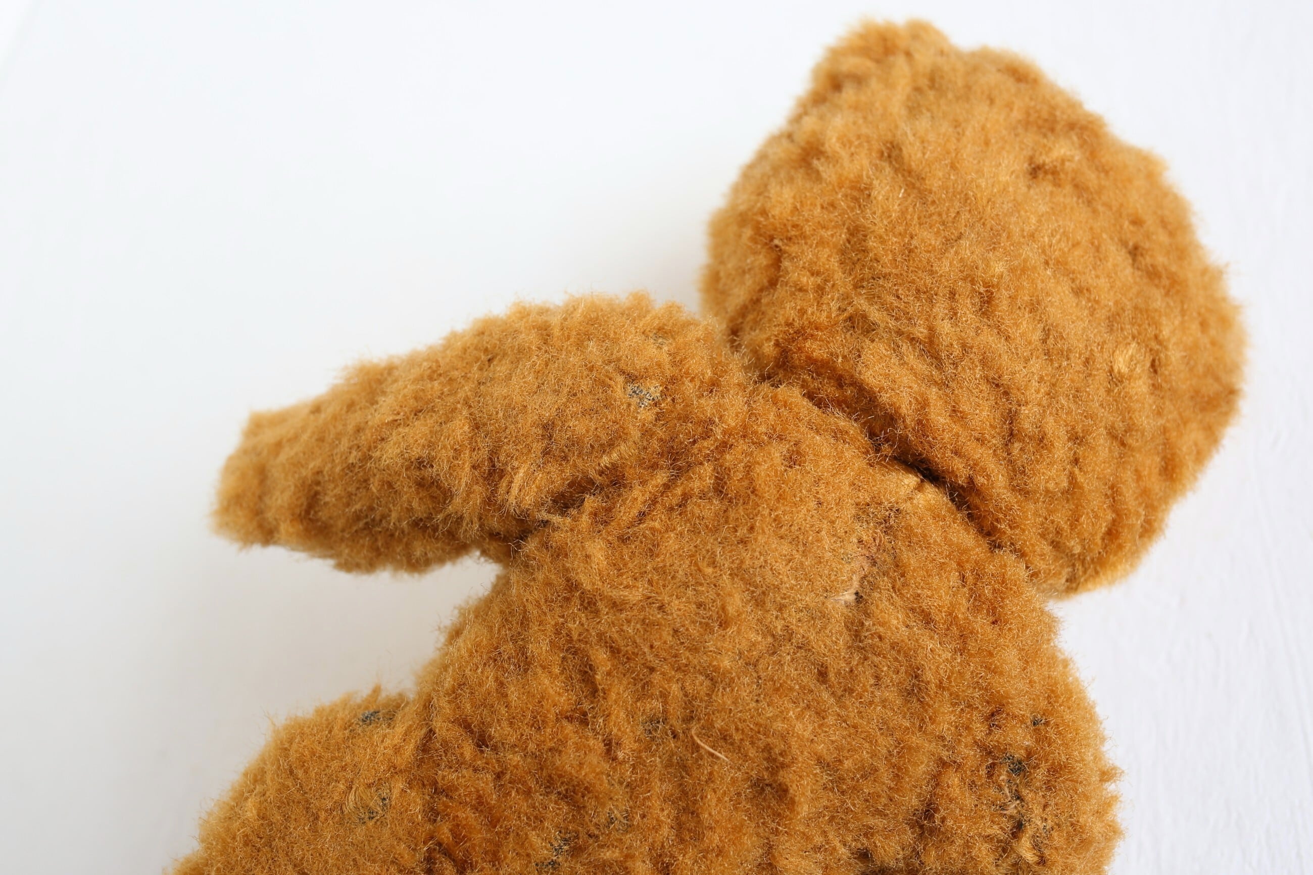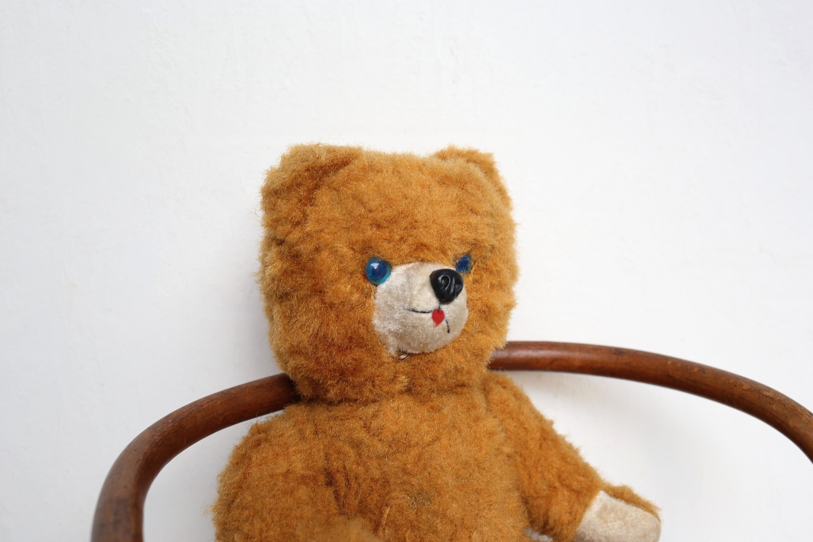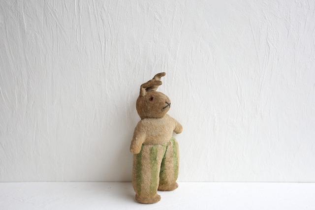 おそらくドイツあたりのものと思われますが、オレンジがかったライトブラウンのモヘアにブルーアイや小さな赤い舌が可愛いです。