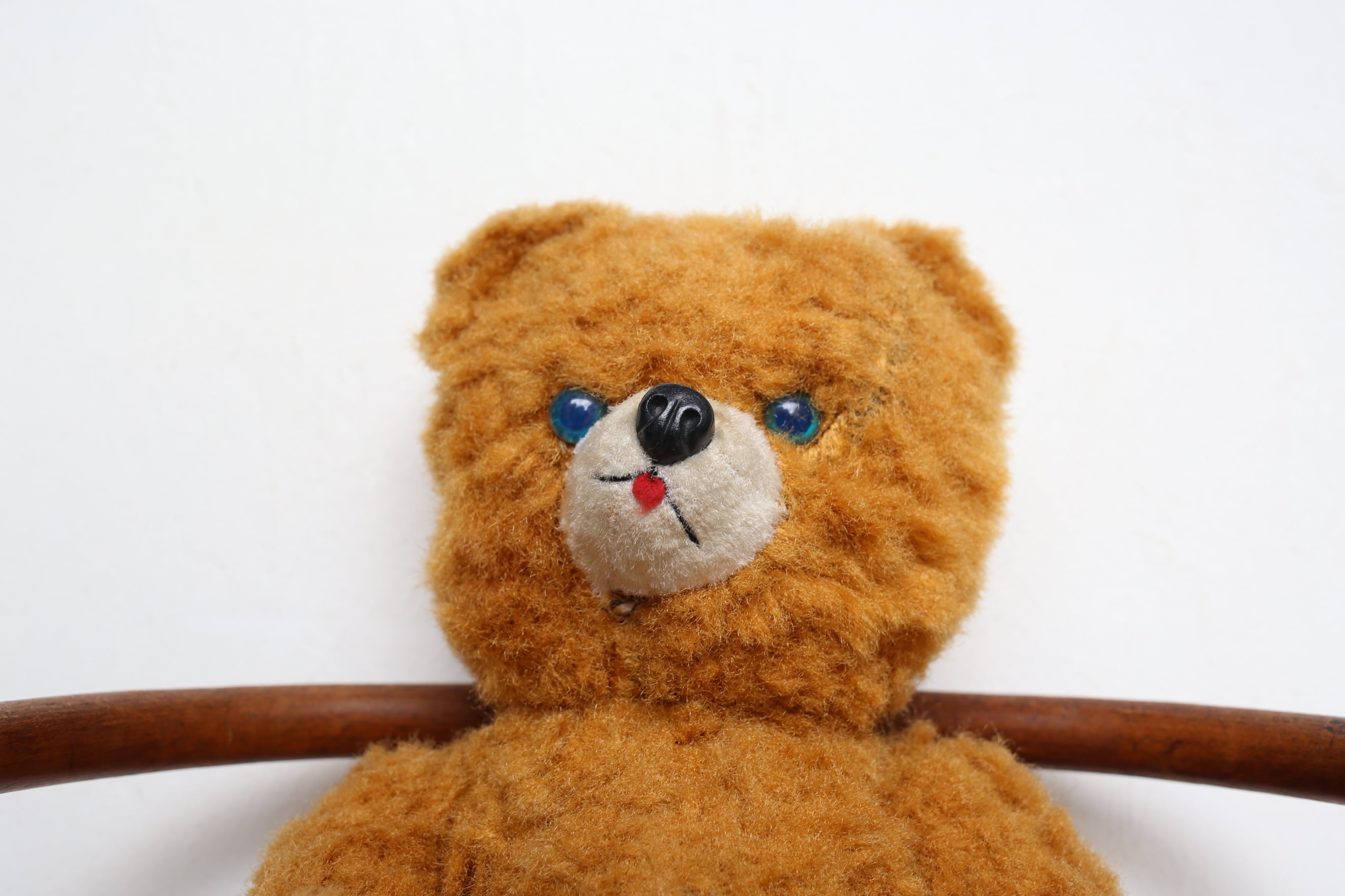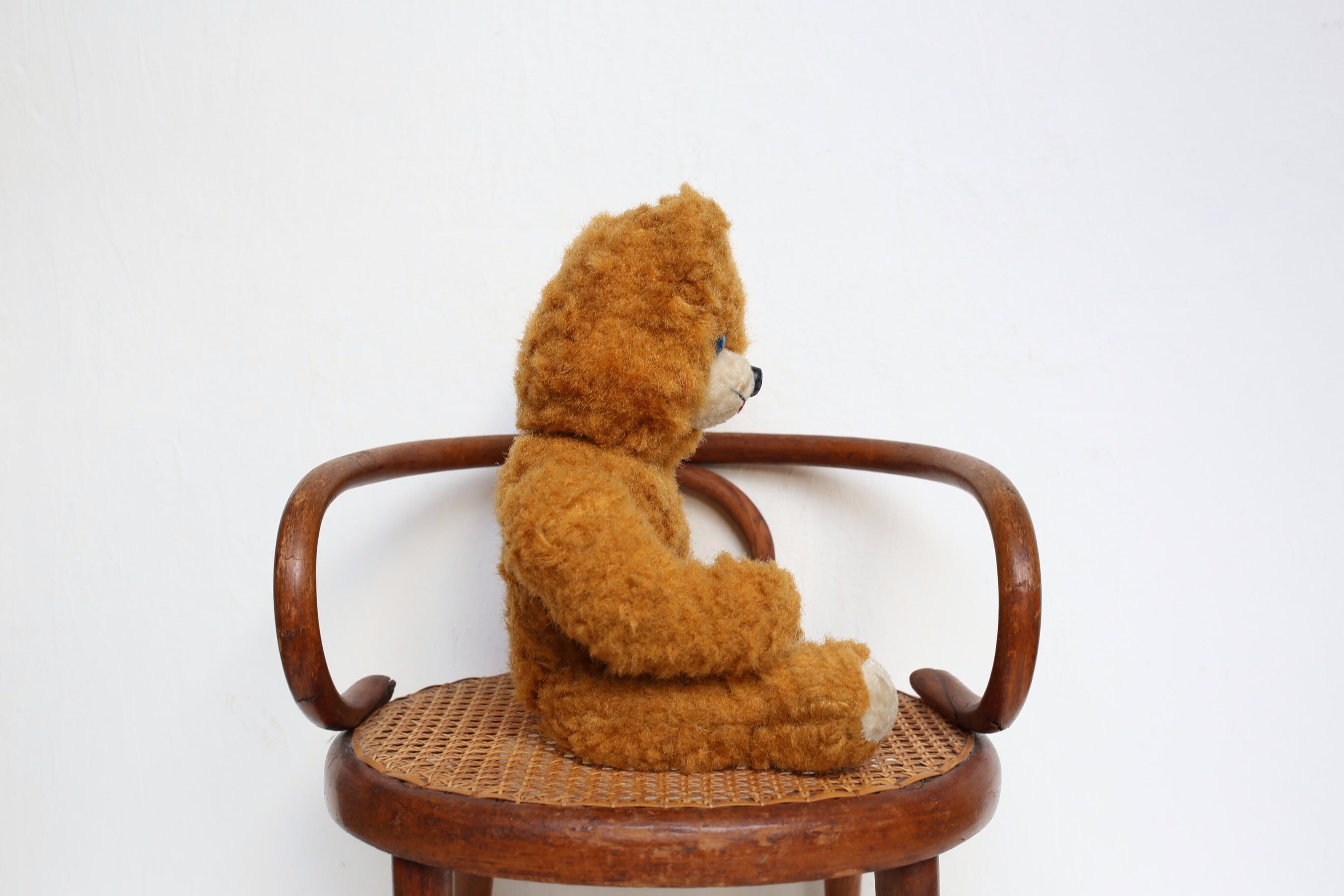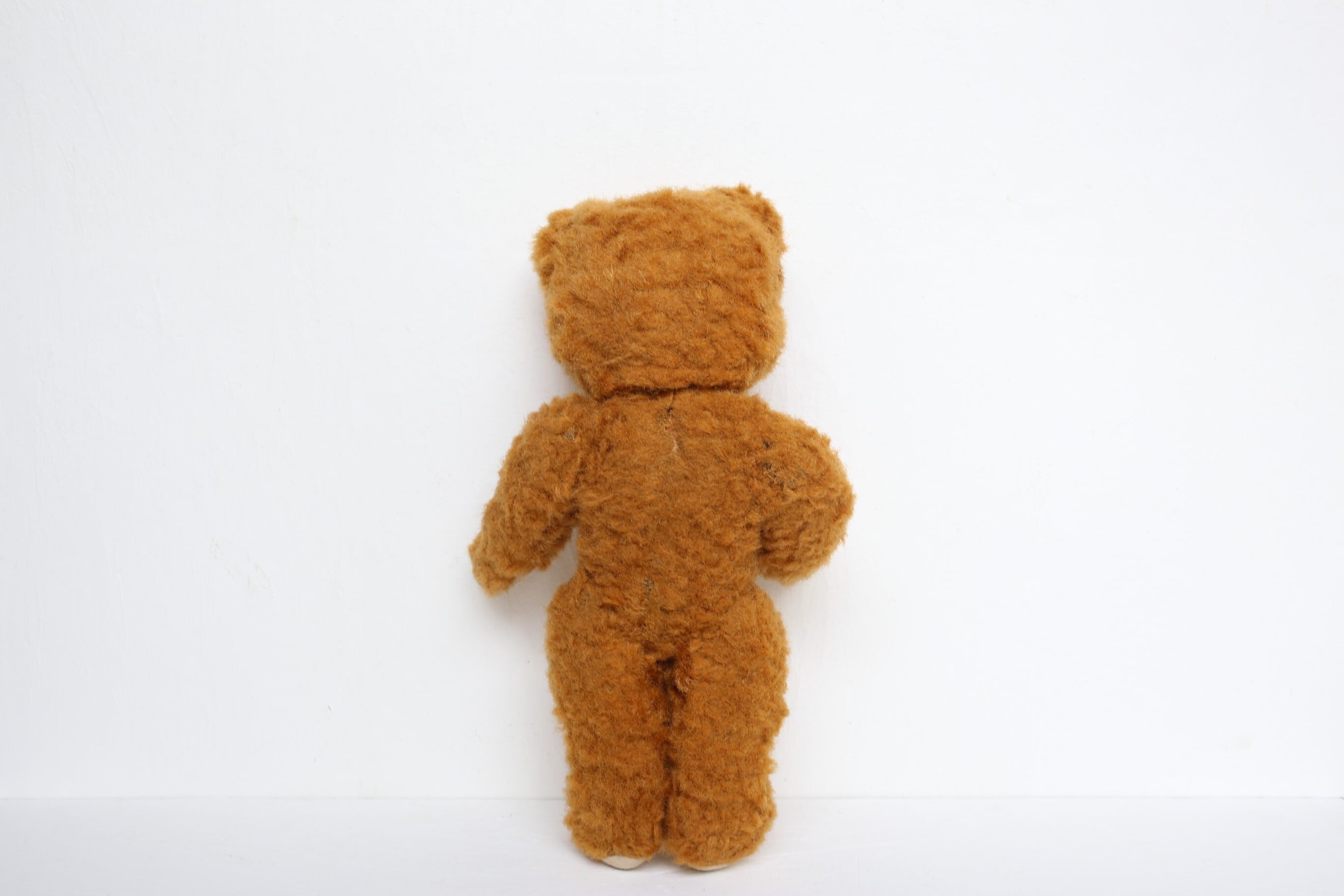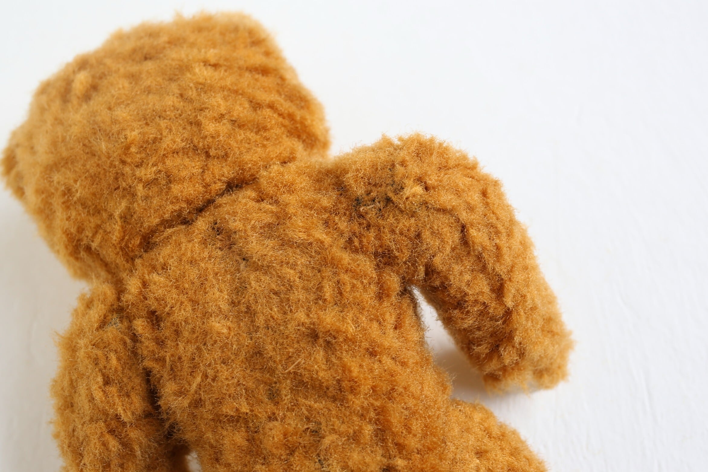 おそらくドイツあたりのものと思われますが、オレンジがかったライトブラウンのモヘアにブルーアイや小さな赤い舌が可愛いです。