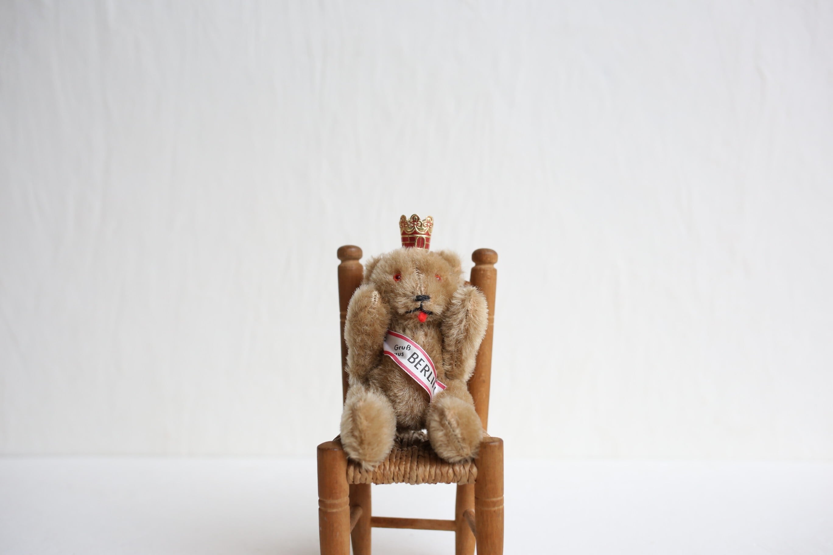 ドイツ アンティーク ヴィンテージ テディベア ベルリンベア ピーナッツベア ブラウン 王冠付き 約13cm N-05707