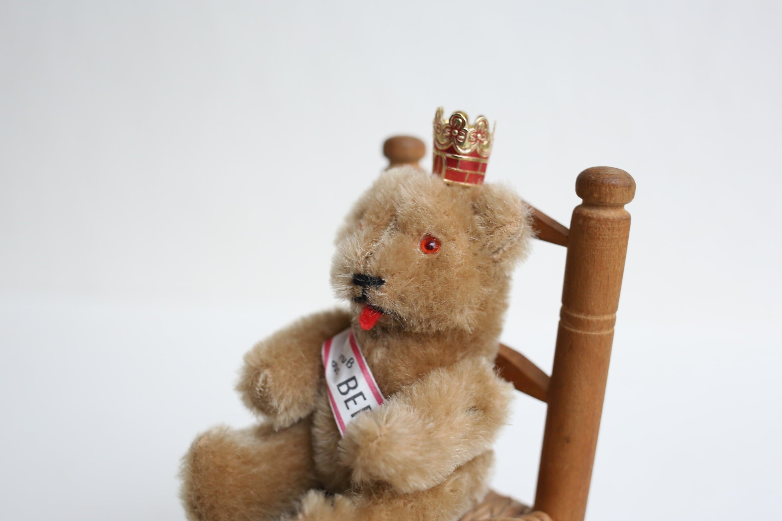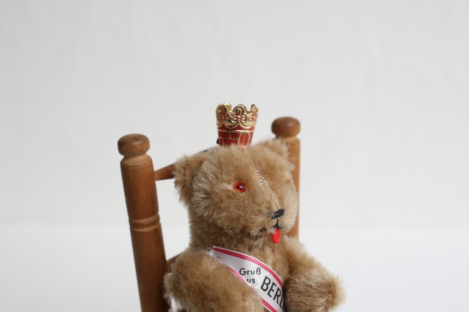 60年代のドイツのベルリンベアと呼ばれるピーナッツベアで、オリジナルのタスキと紙の王冠が付いています。