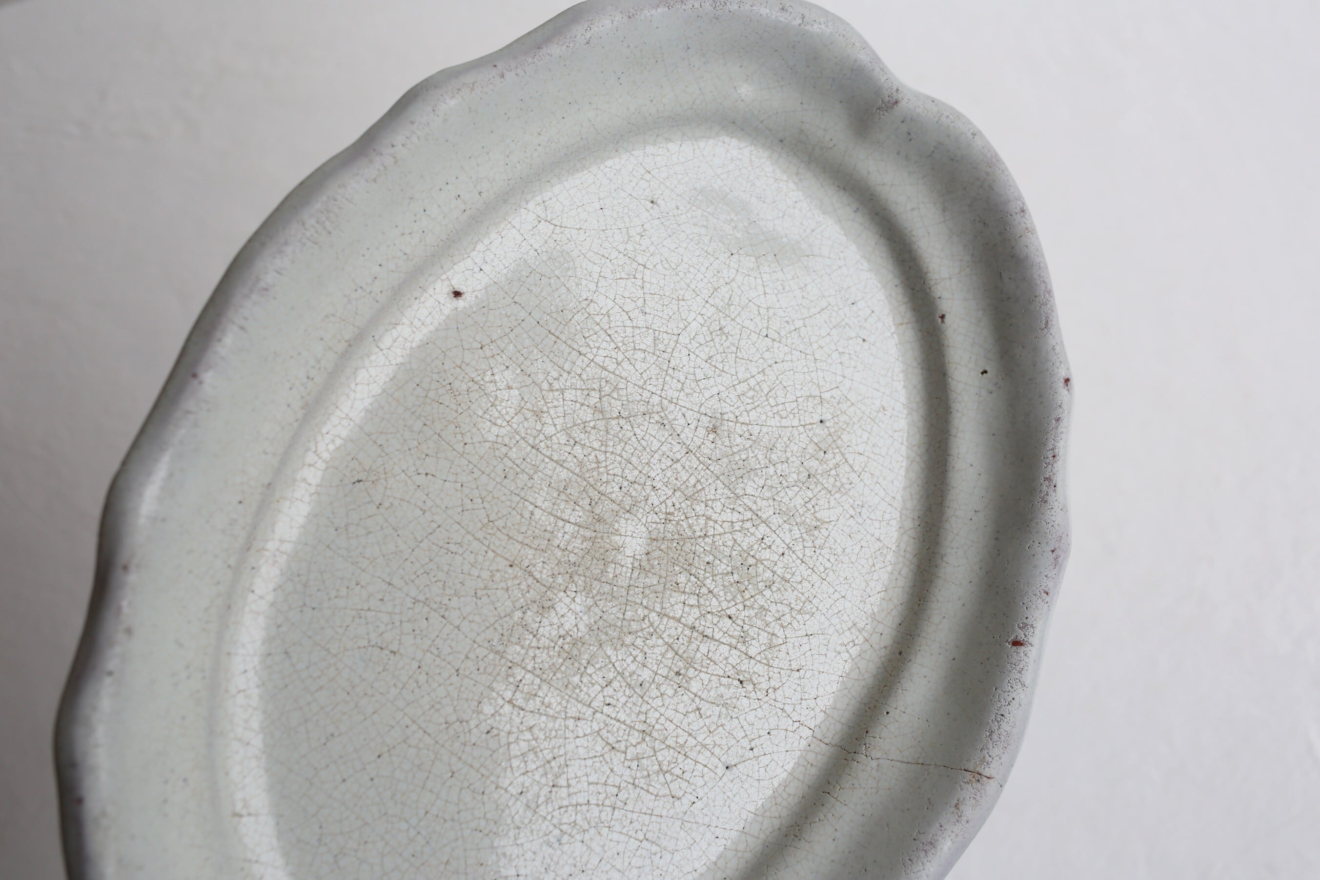 パリの蚤の市で見つけたキュノワールの無地のオーバルプレートです。