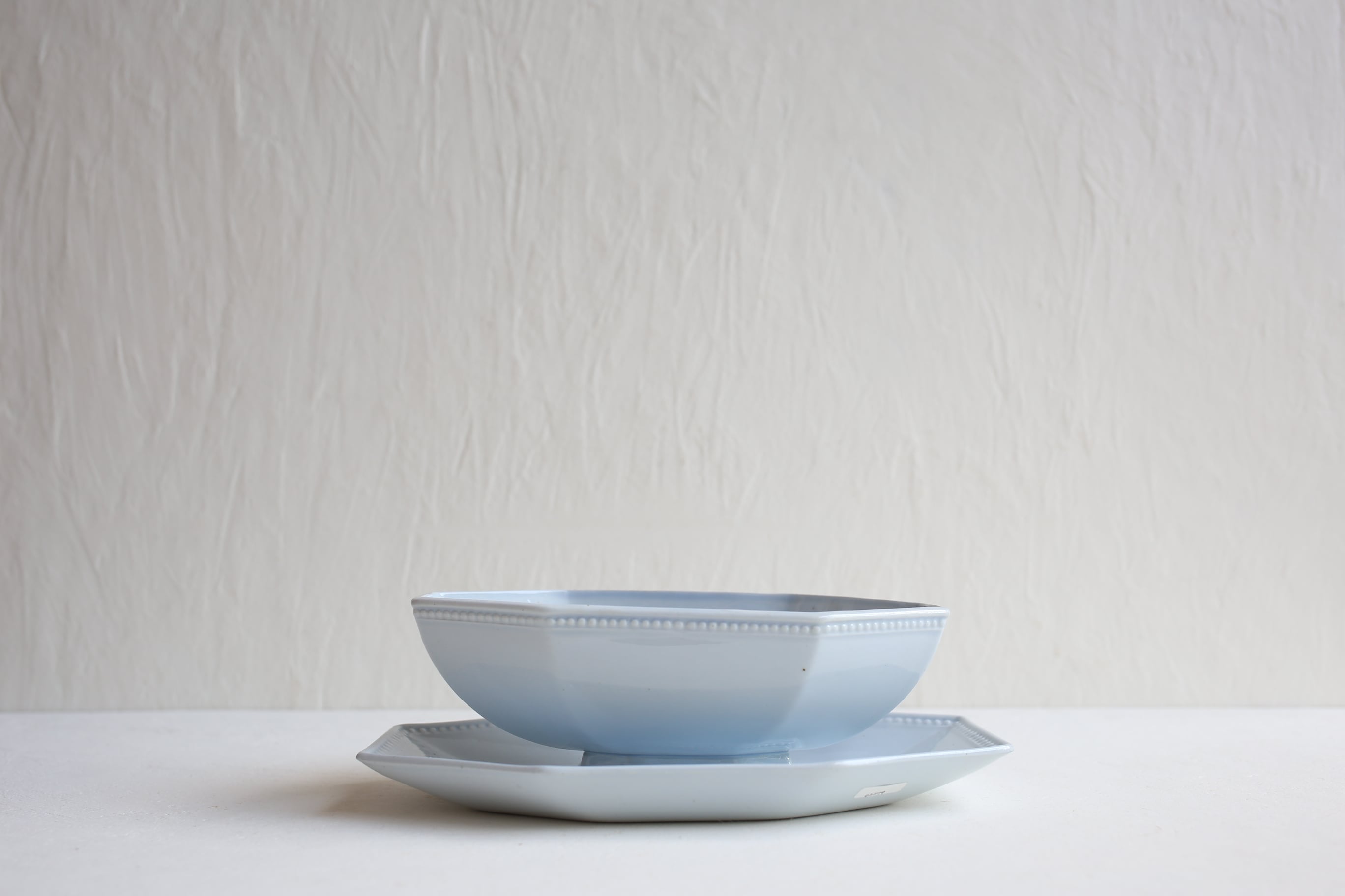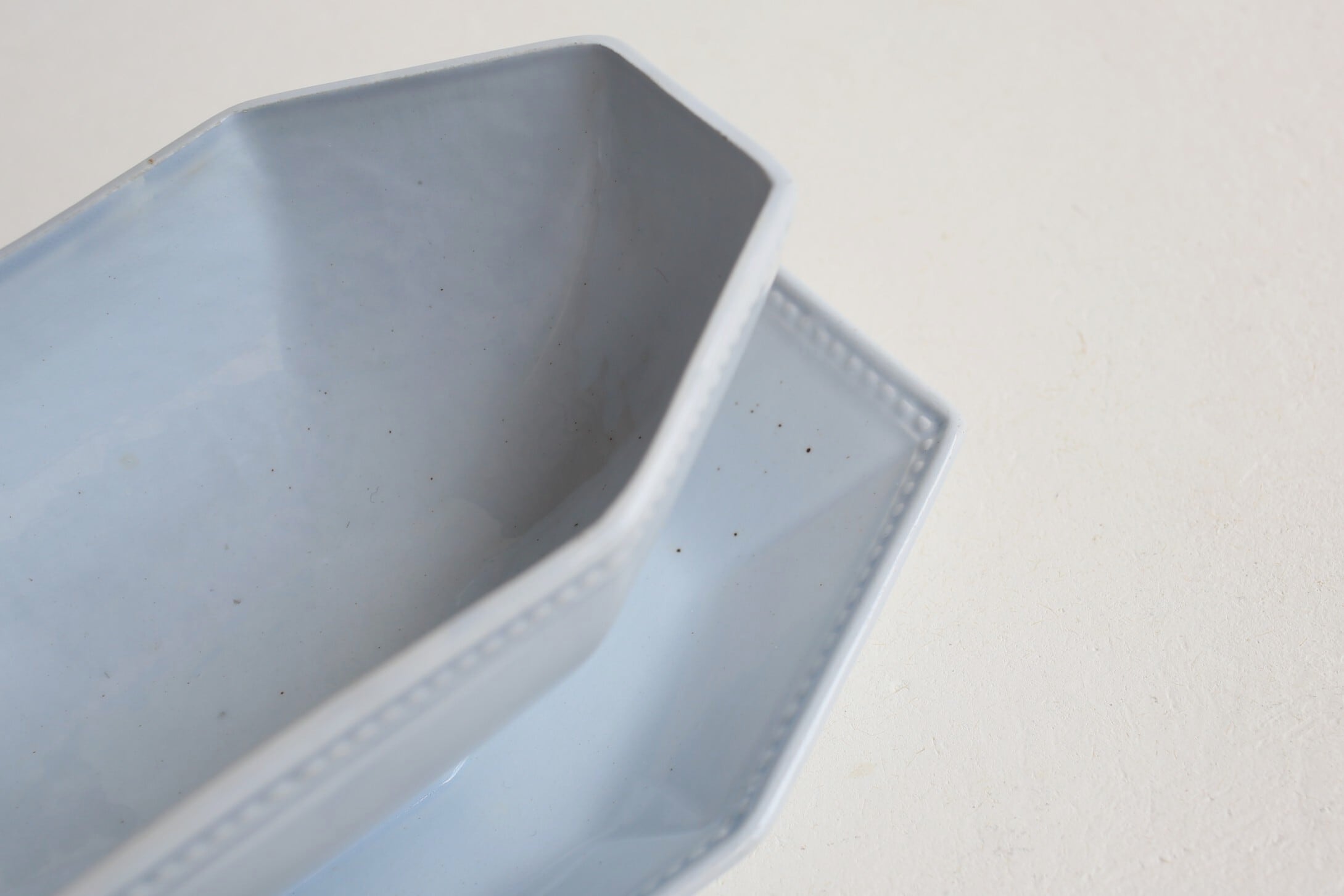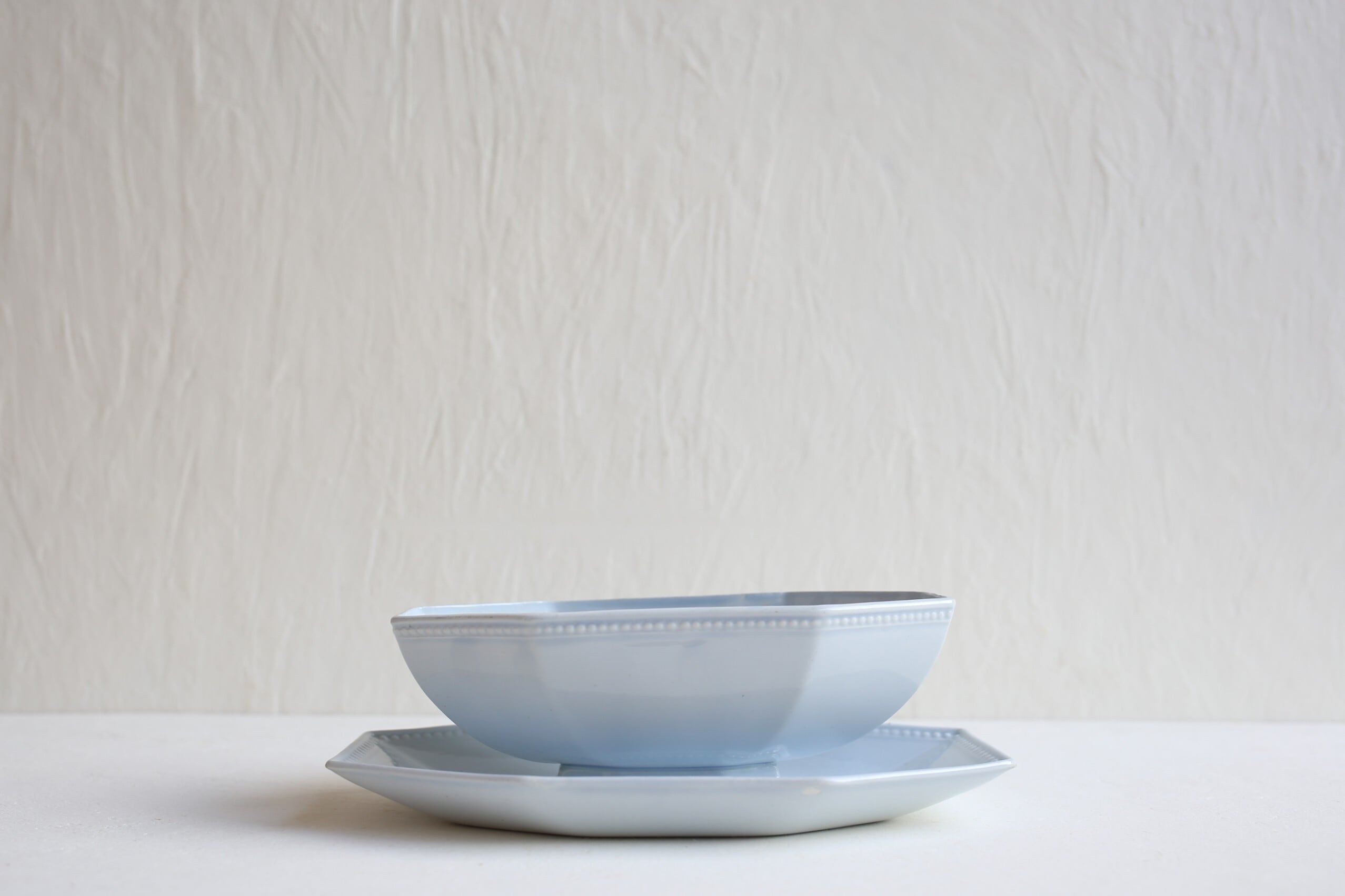 こちらはオクトゴナルのグレイッシュブルーのシリーズですが、和や北欧テイストにも馴染むカラーで清閑な佇まいが目を引く美しい器です。