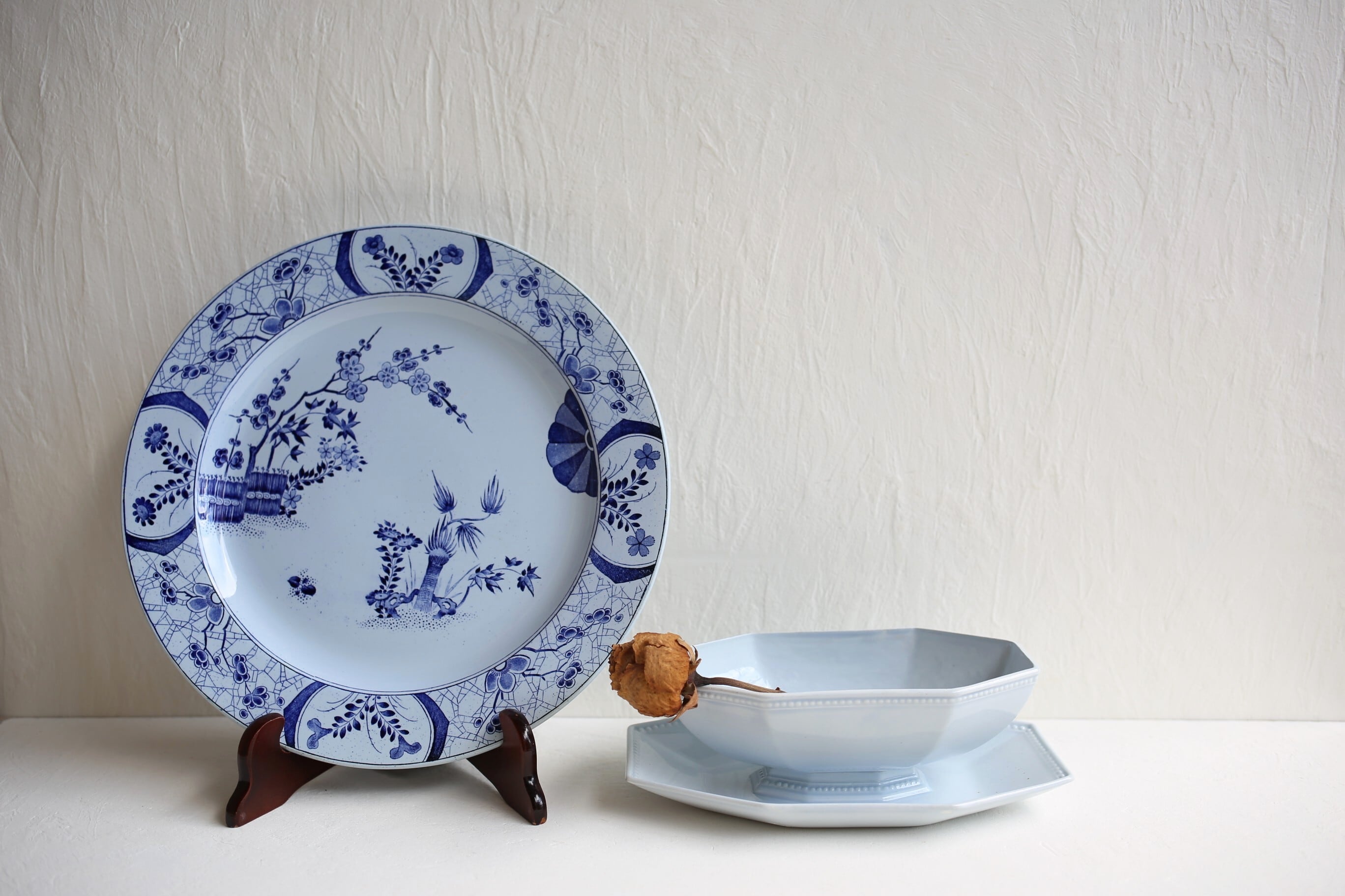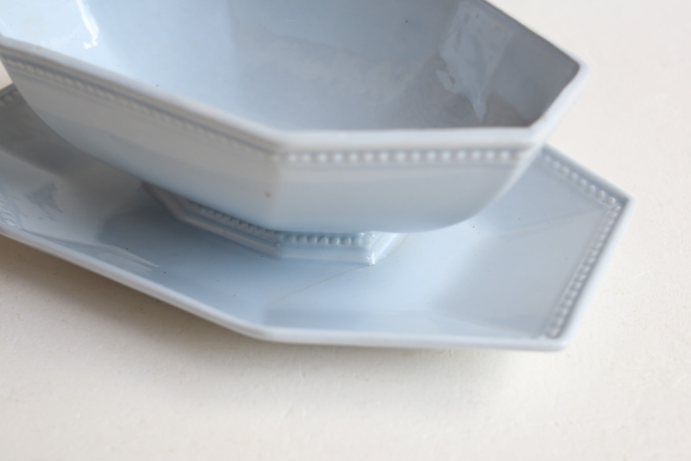 フランス アンティーク Creil et Montrereau クレイユモントロー オクトゴナル ソーシエ―ル ブルー N-02279