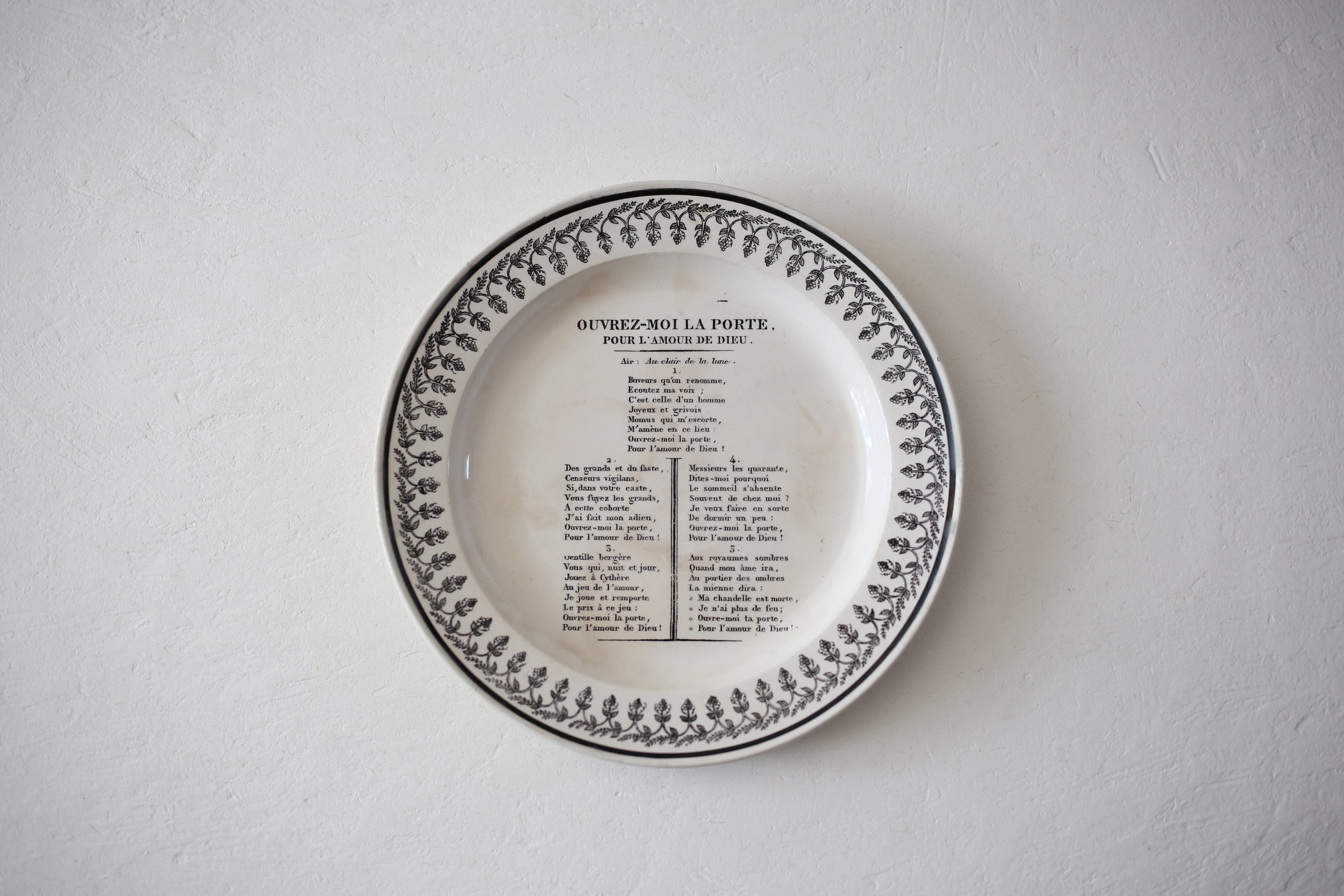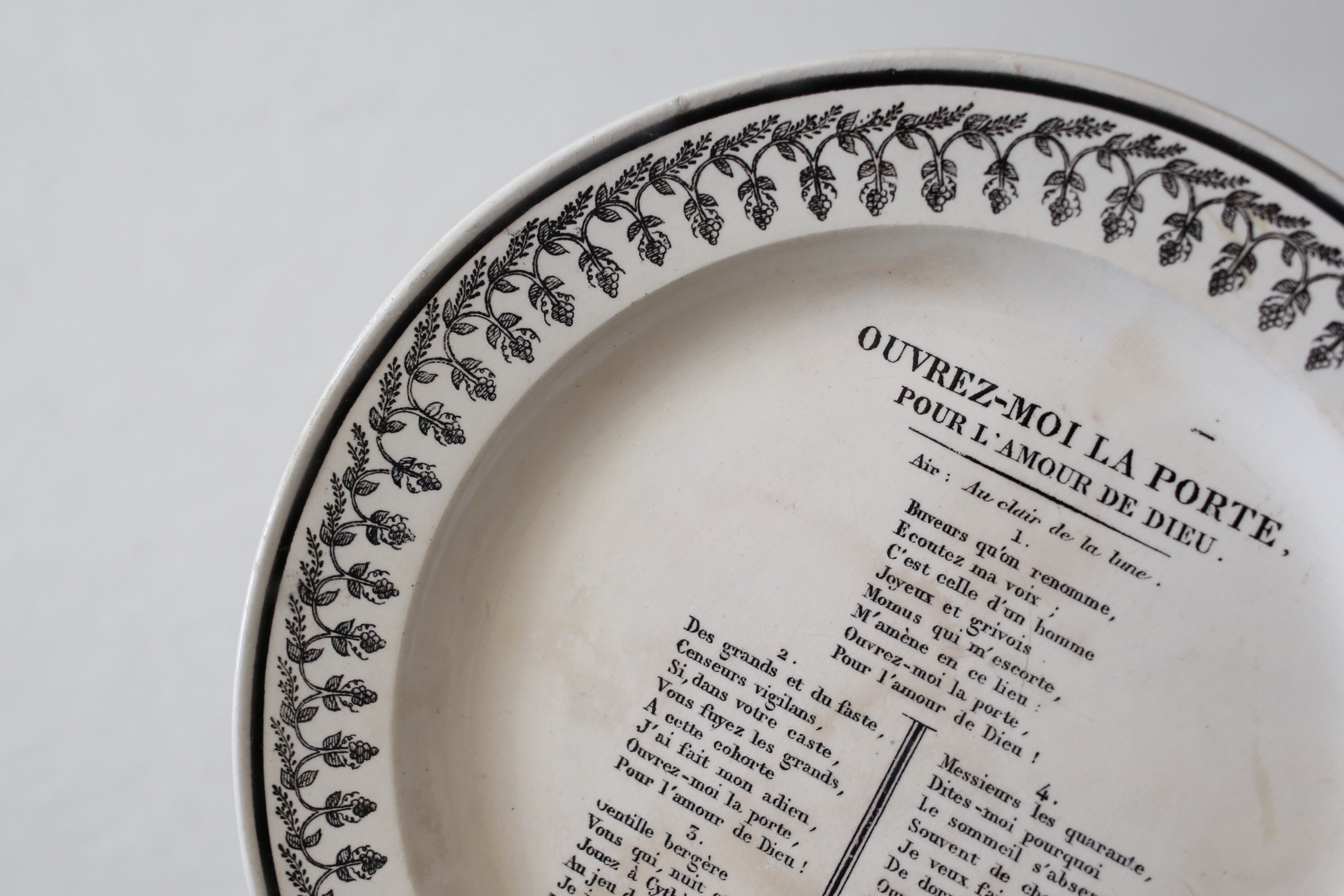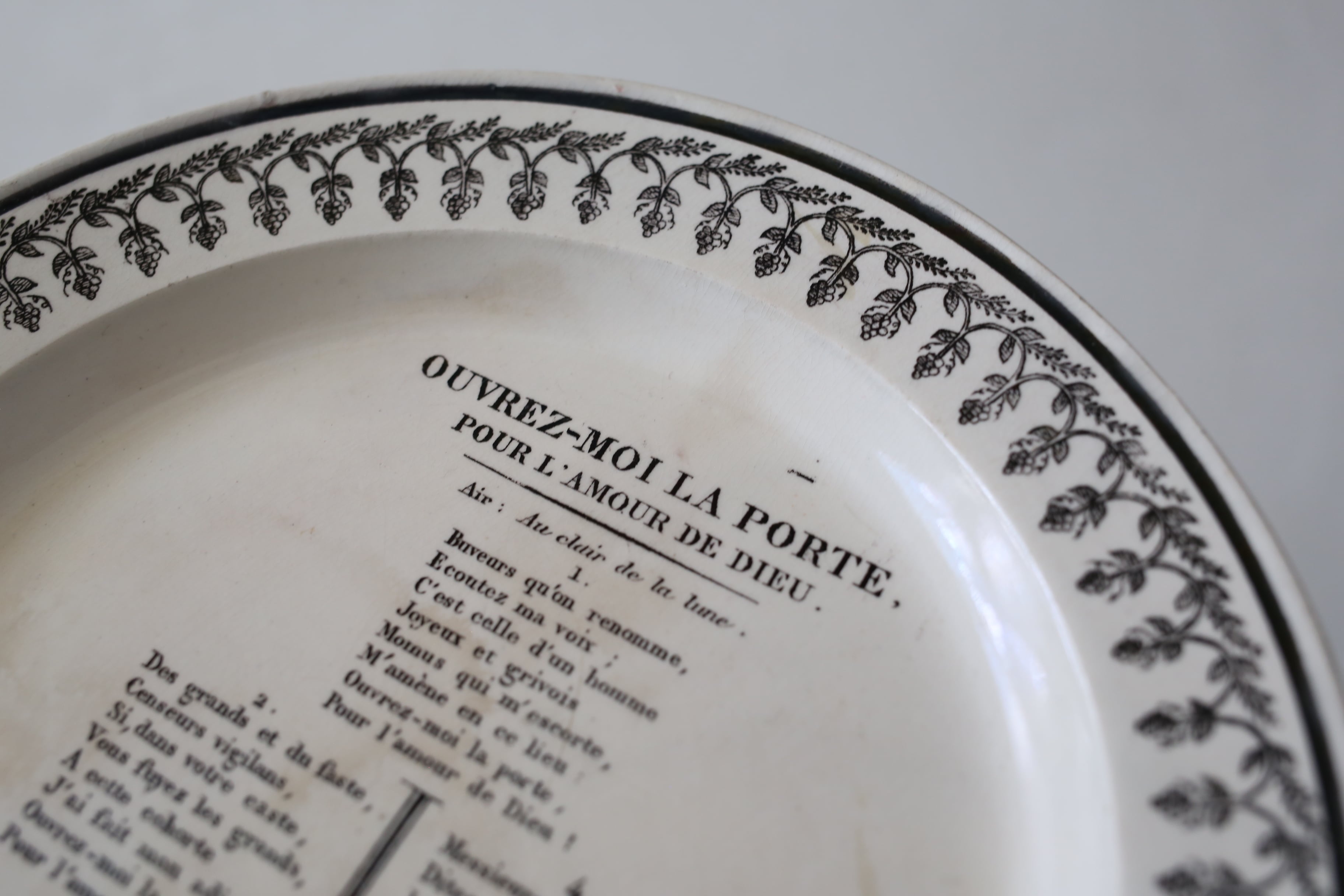 フランス アンティーク MONTEREAU モントロー グリザイユ シャンソン プレート 直径約21.6cm N-06268