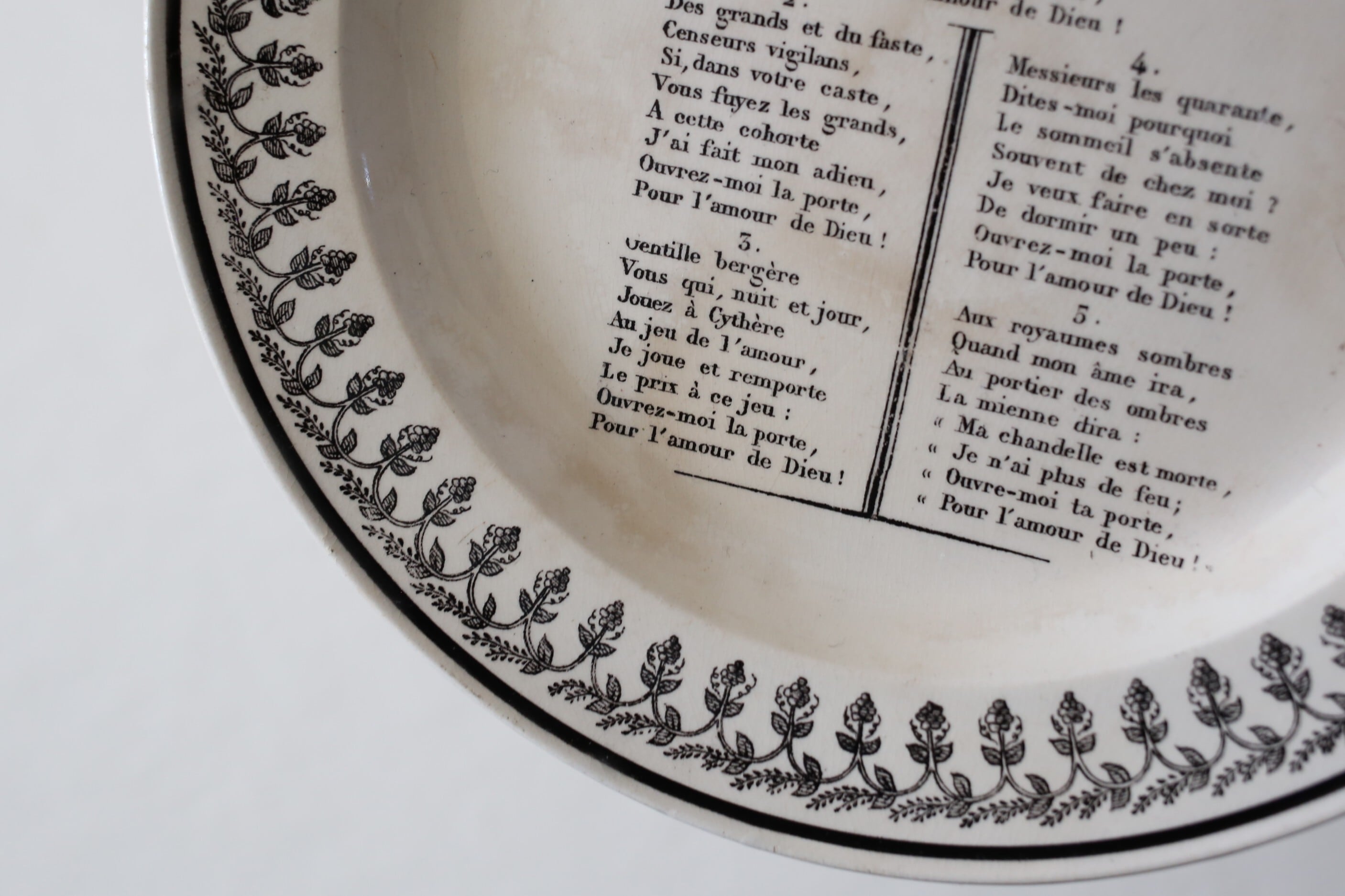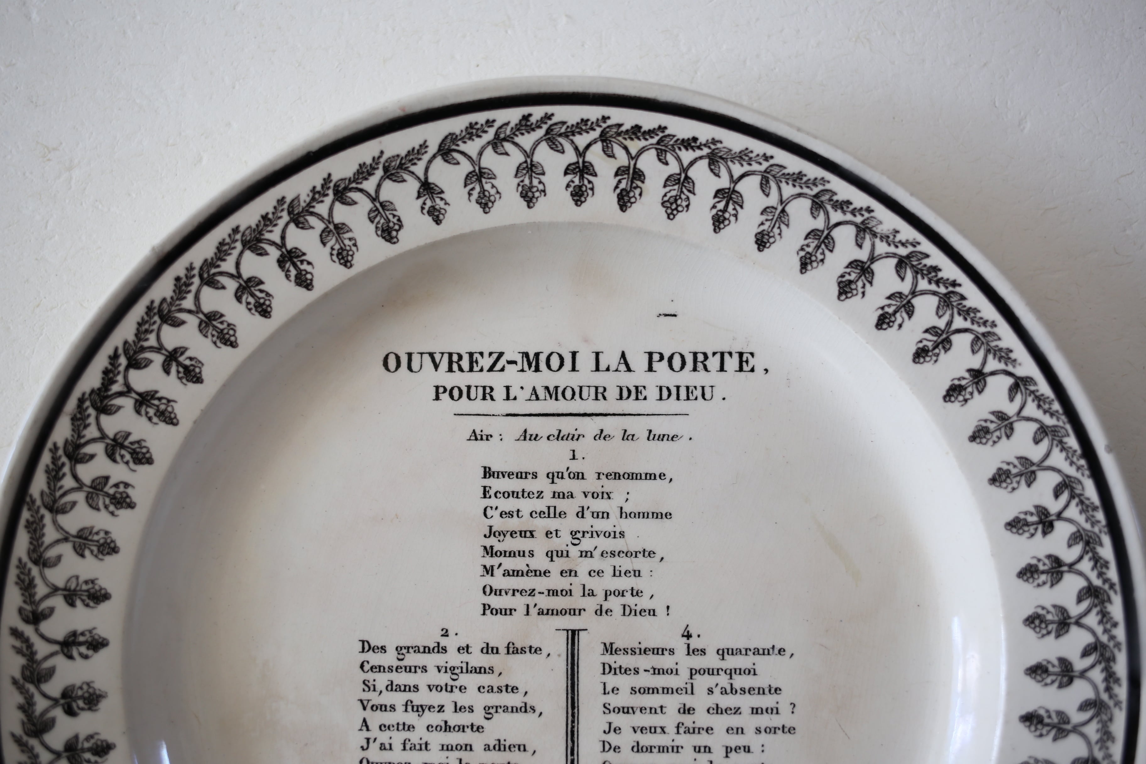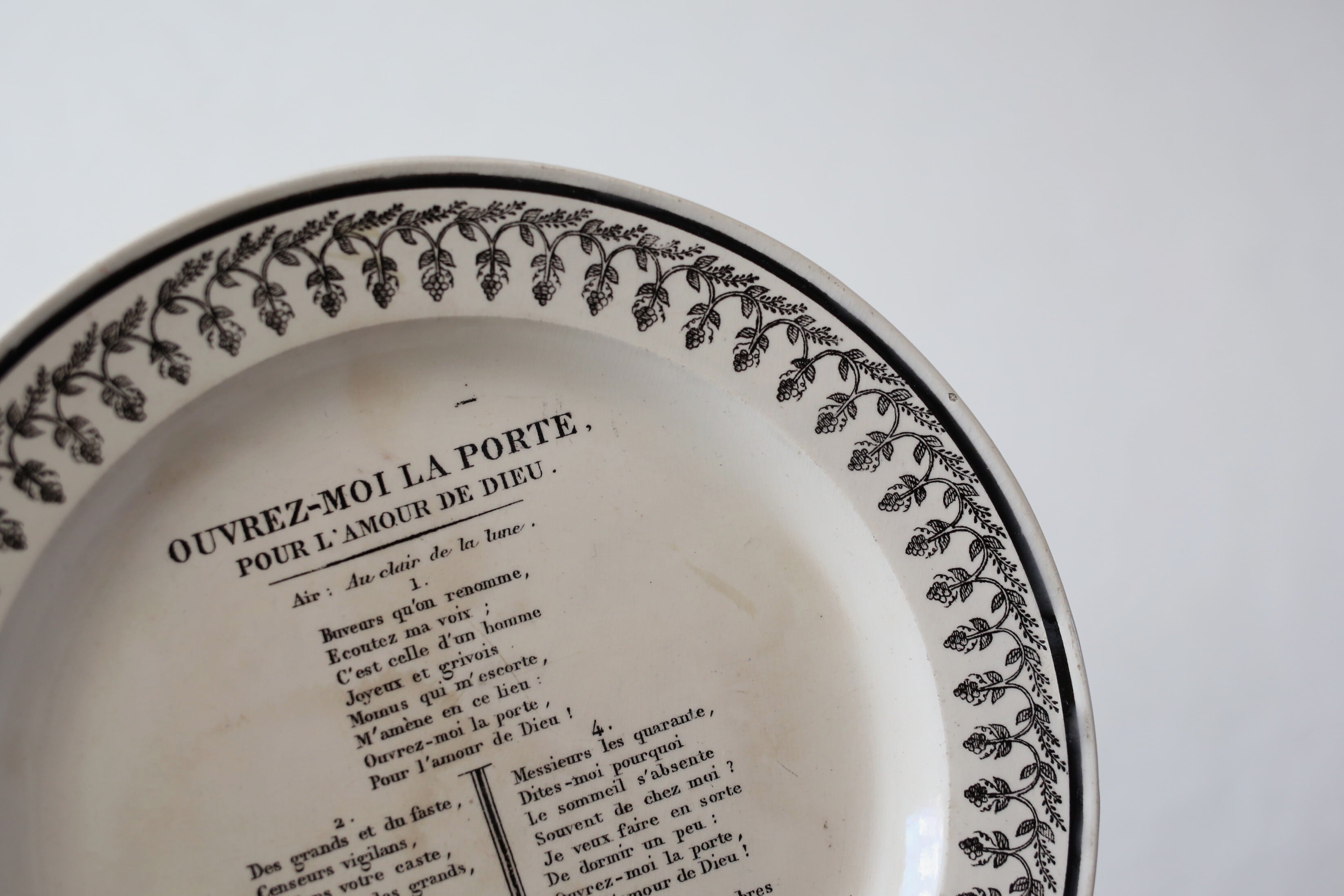 フランス アンティーク MONTEREAU モントロー グリザイユ シャンソン プレート 直径約21.6cm N-06268