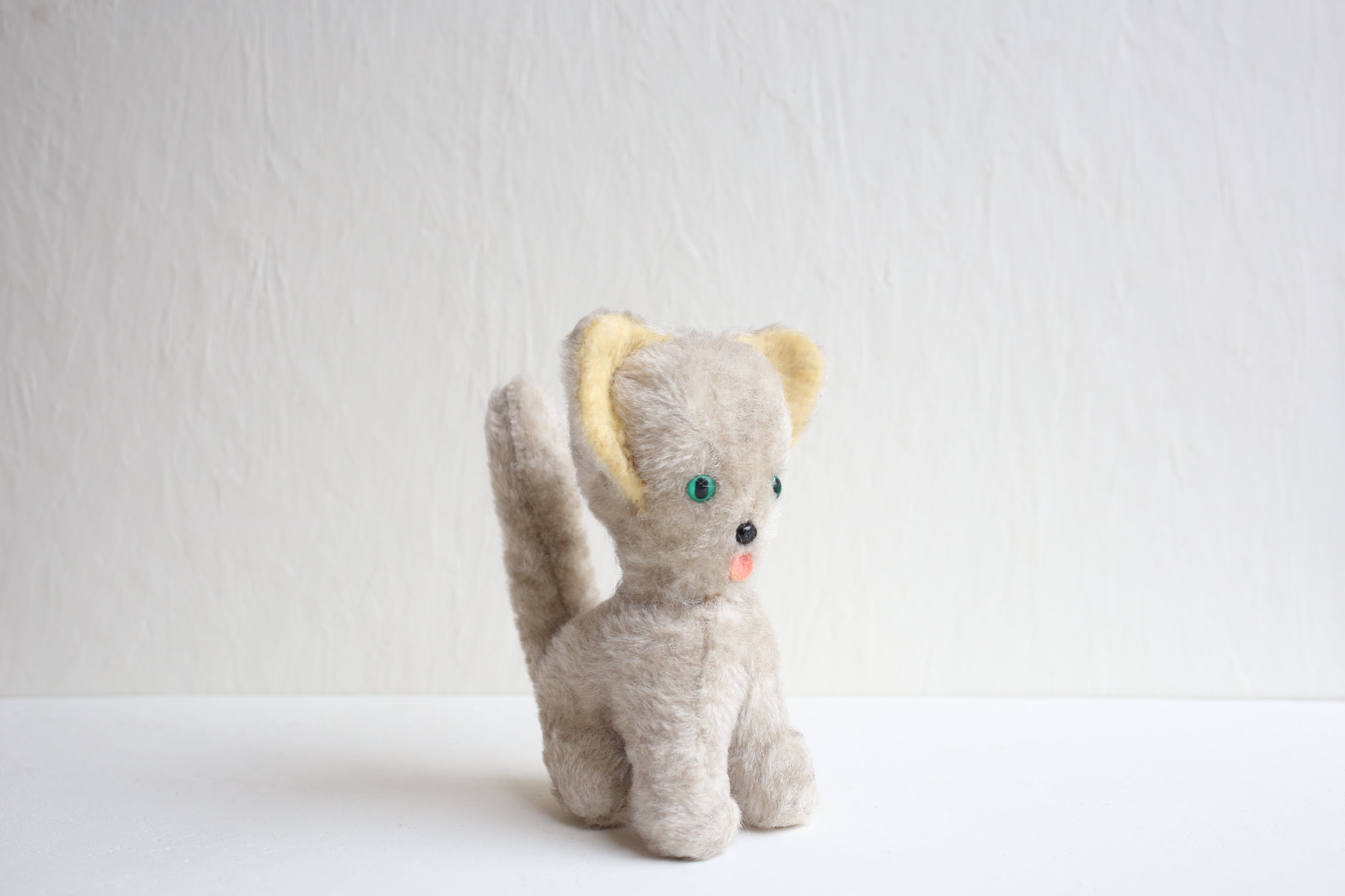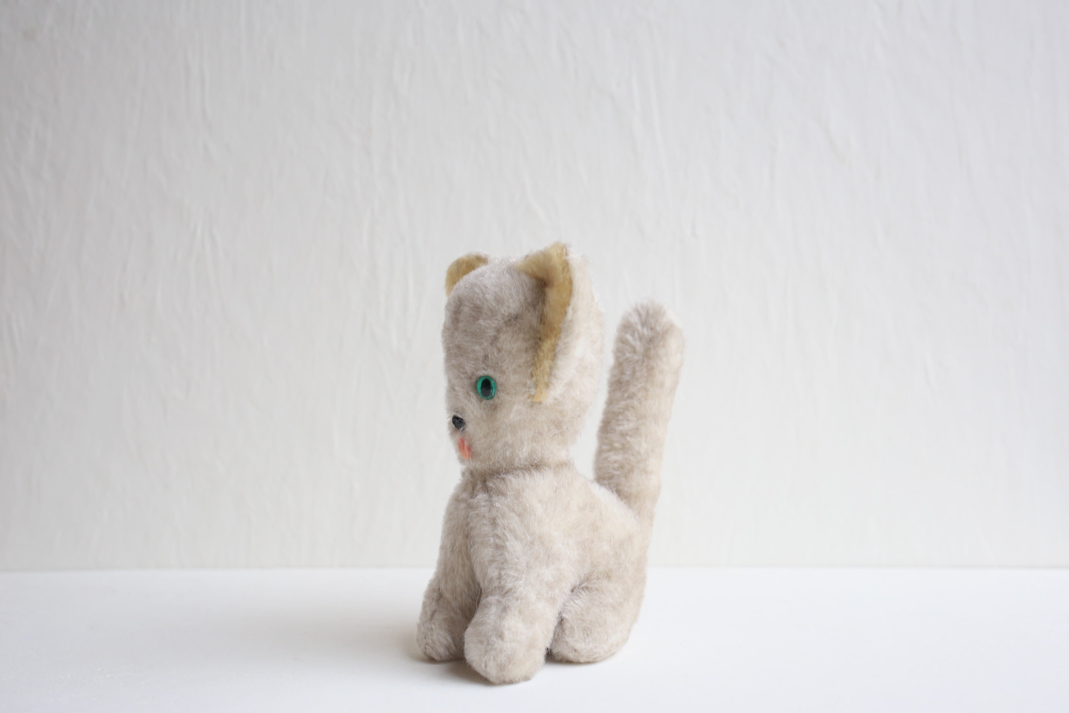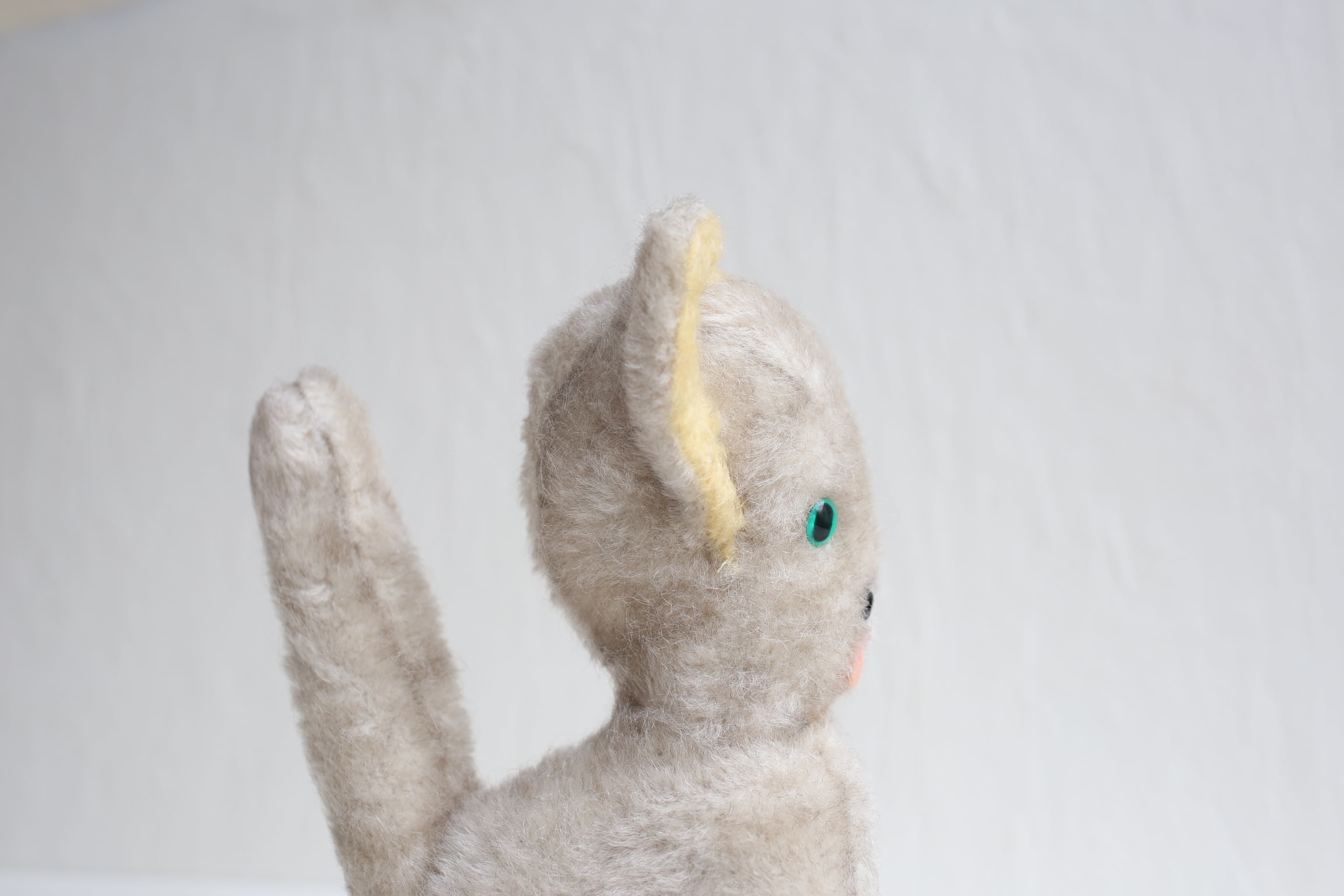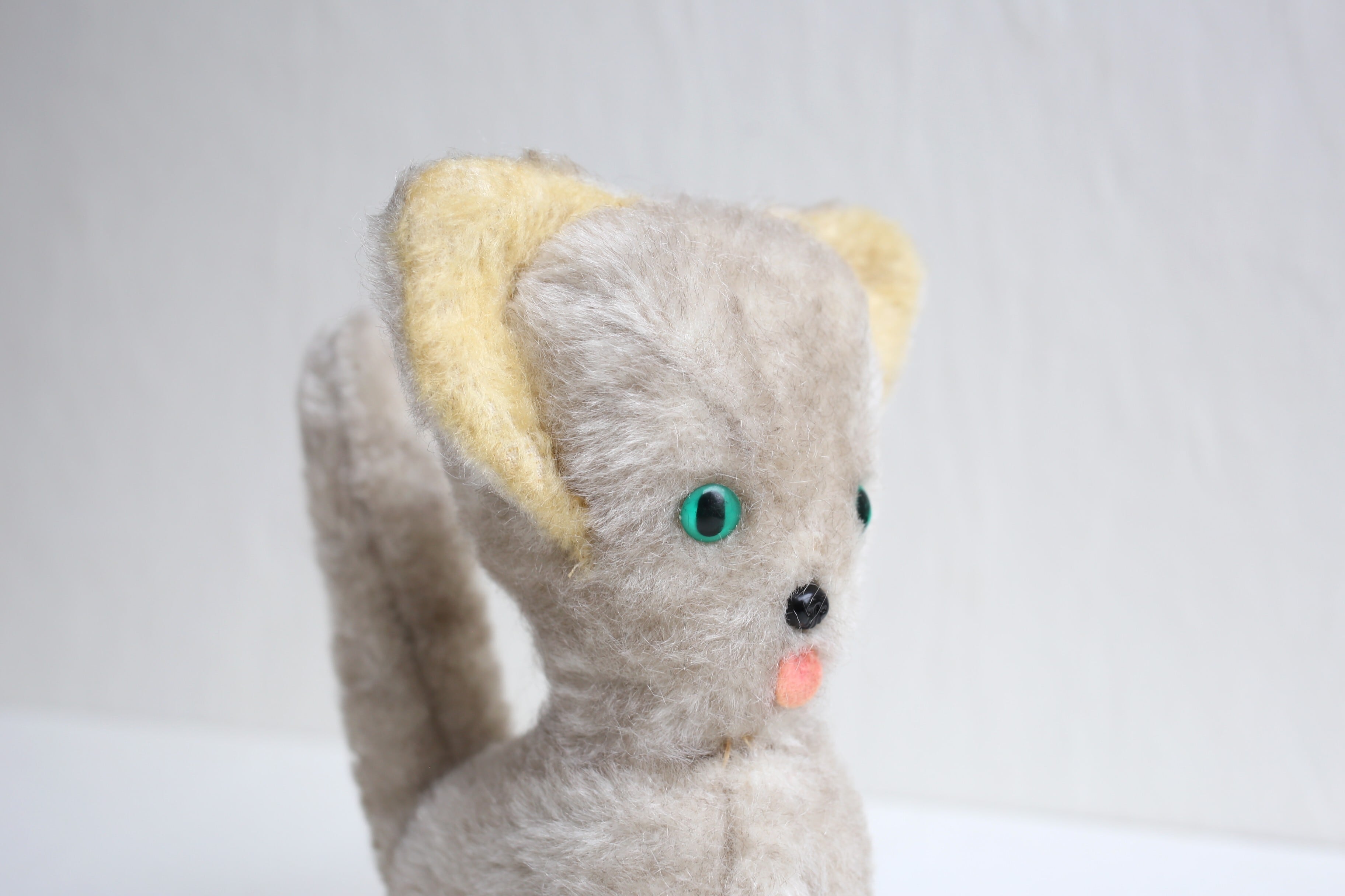 フランス アンティーク ヴィンテージ ぬいぐるみ グリーンアイの大きな耳のネコ N-06655
