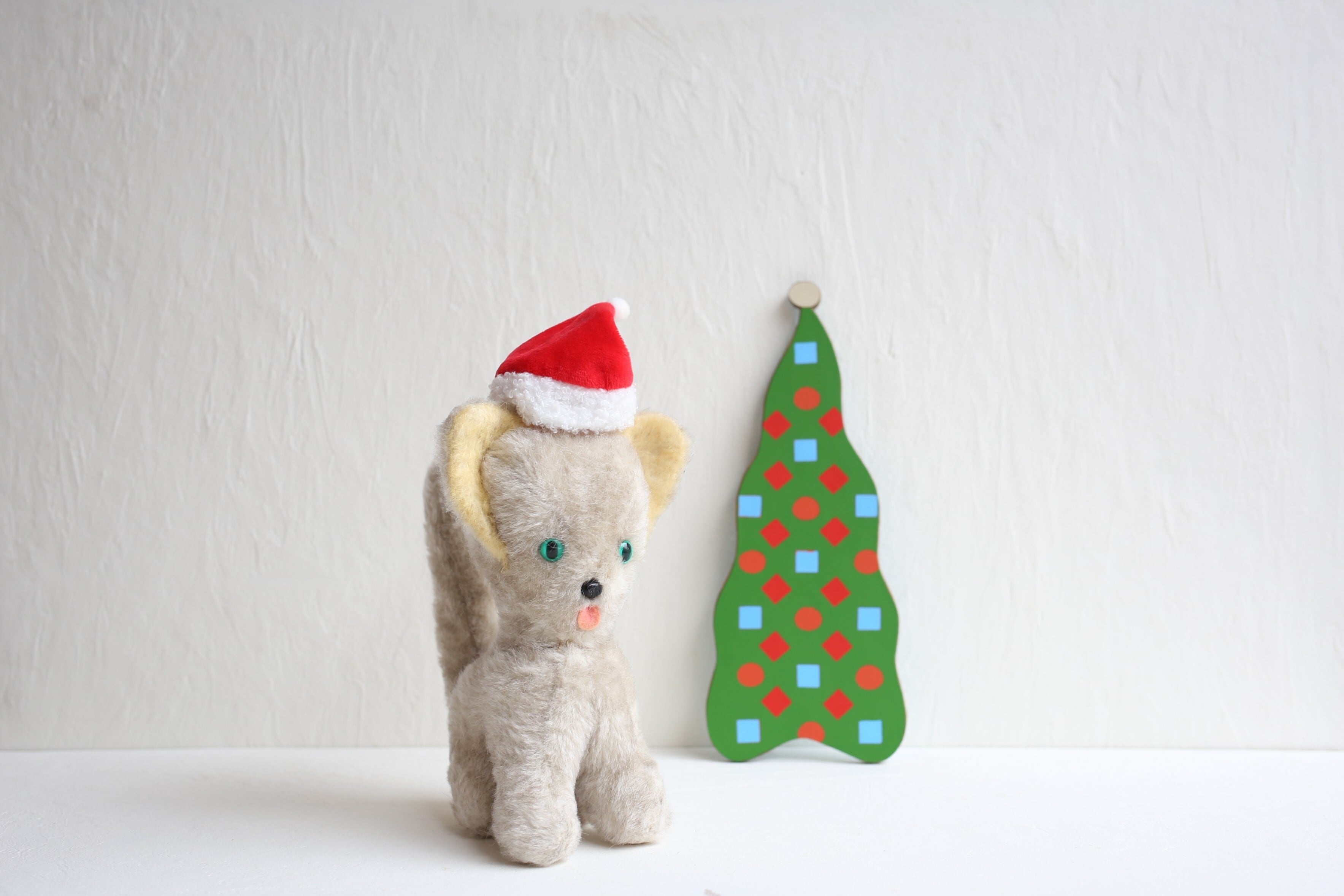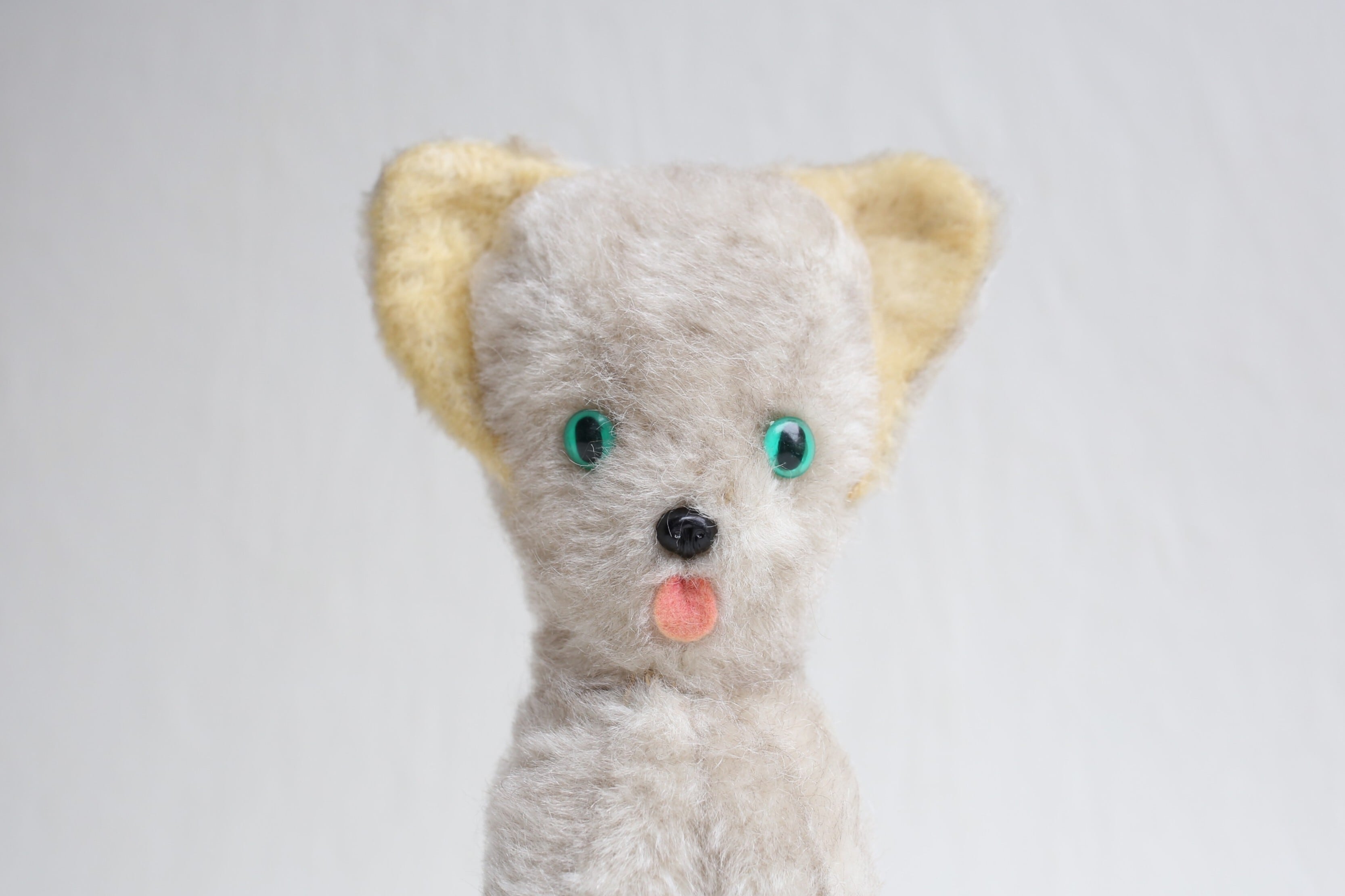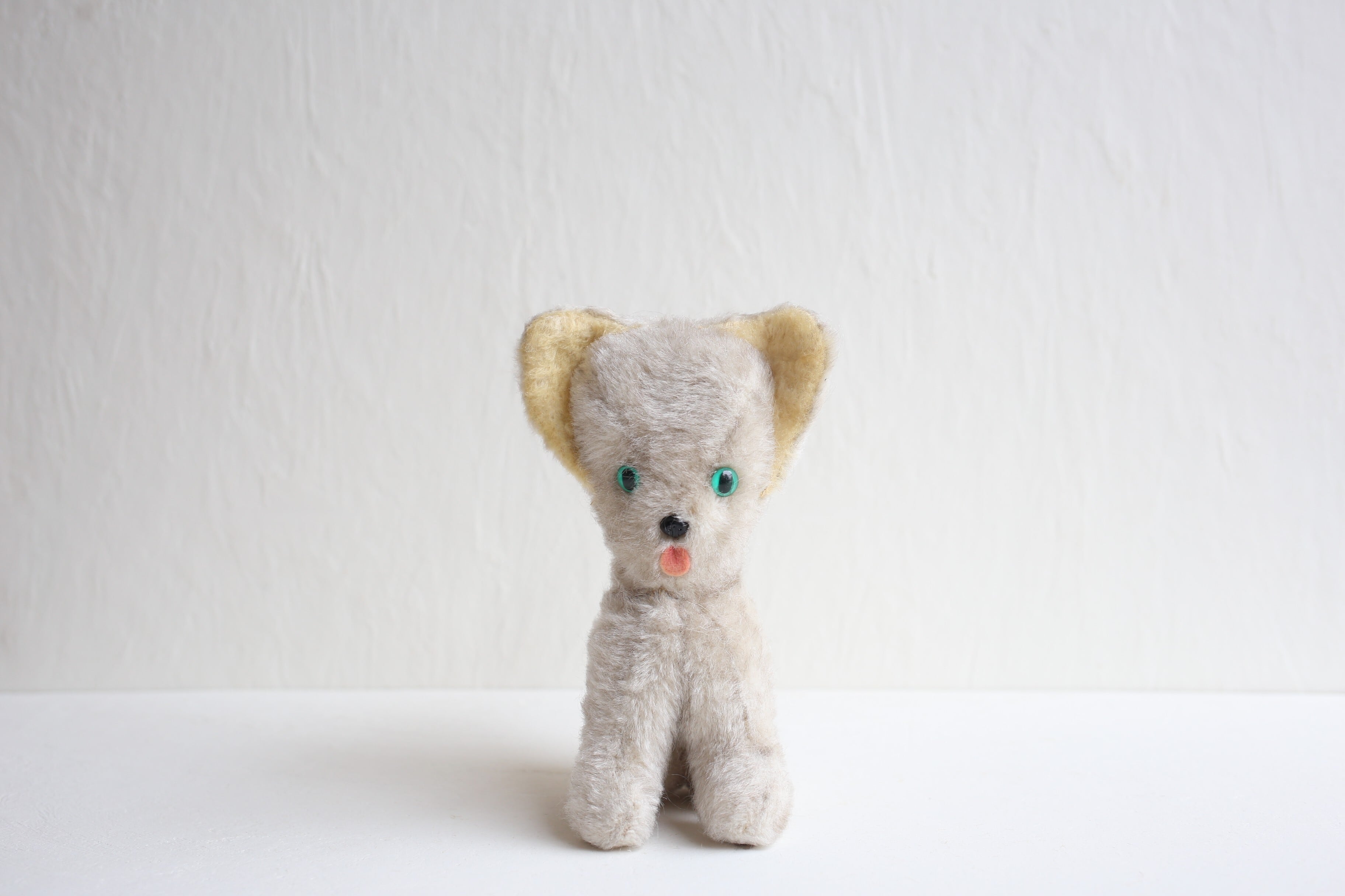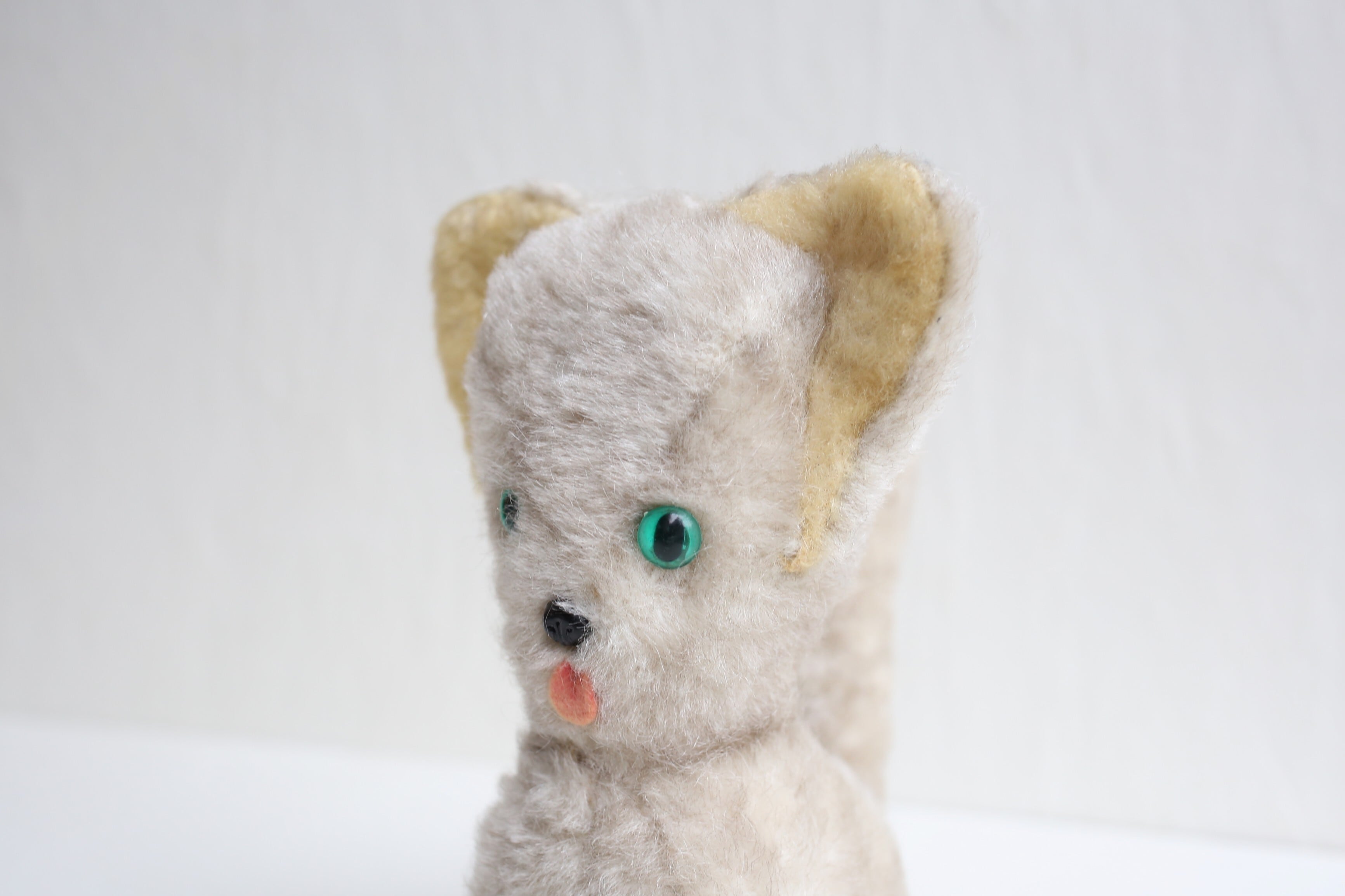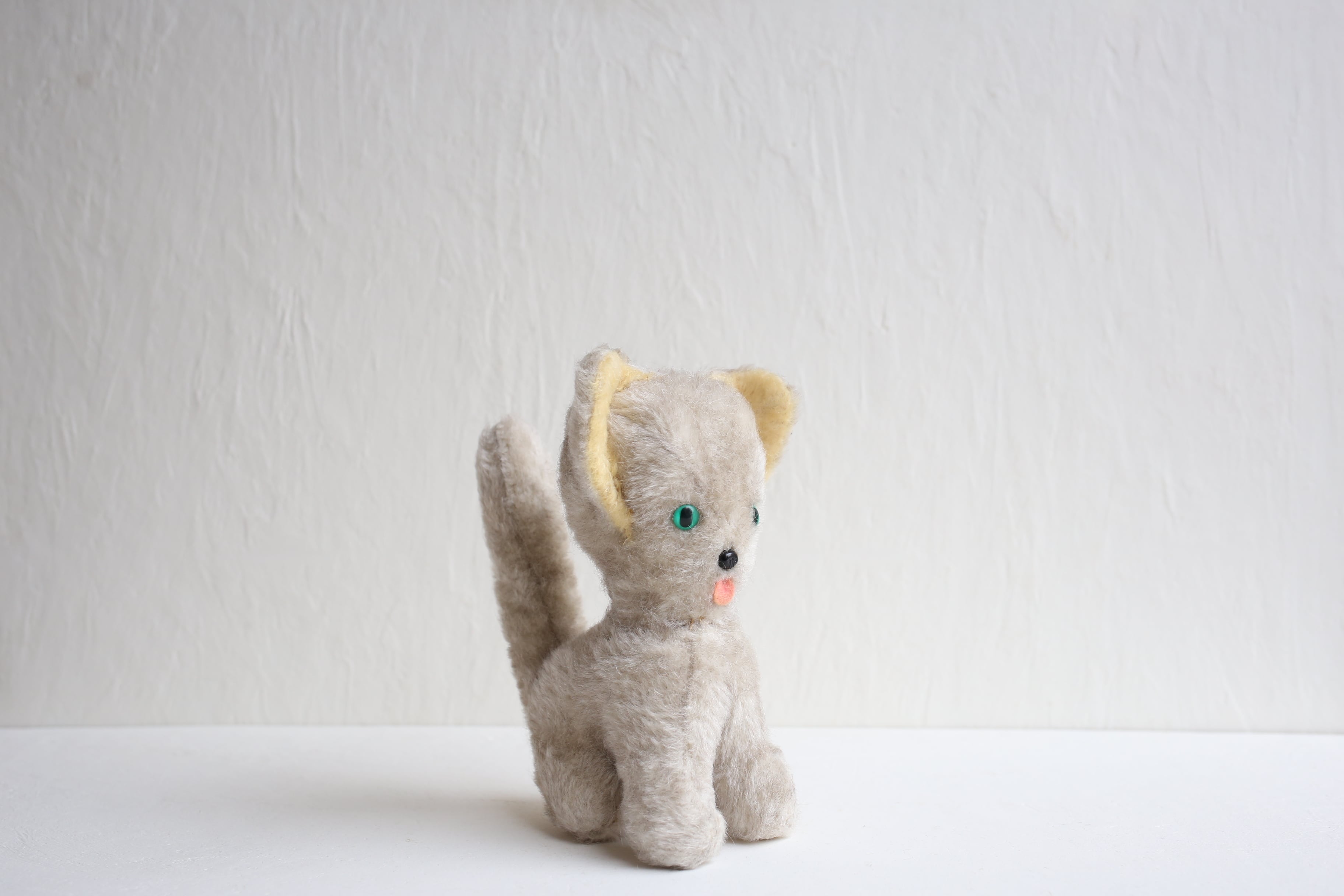 フランス アンティーク ヴィンテージ ぬいぐるみ グリーンアイの大きな耳のネコ N-06655