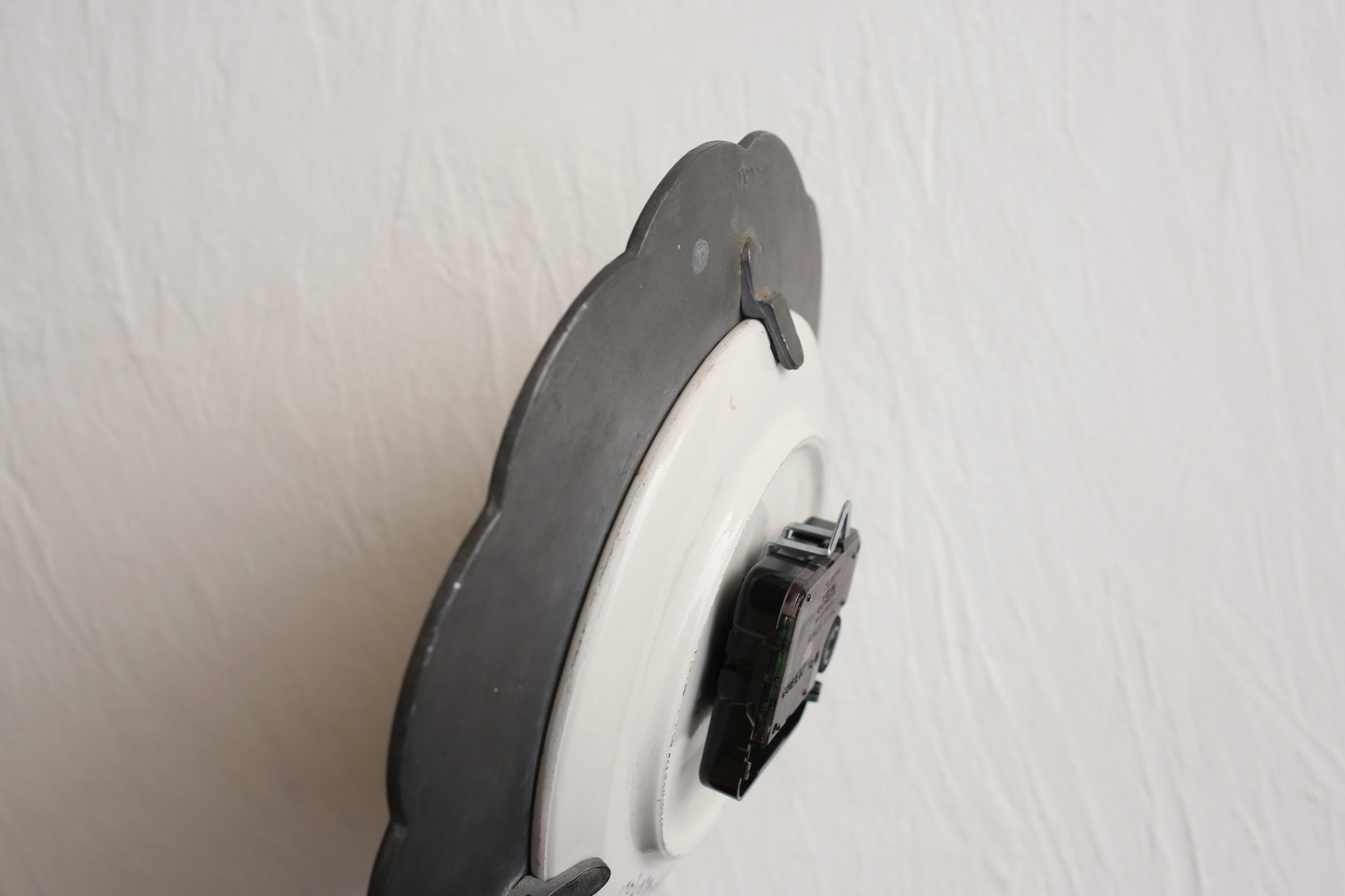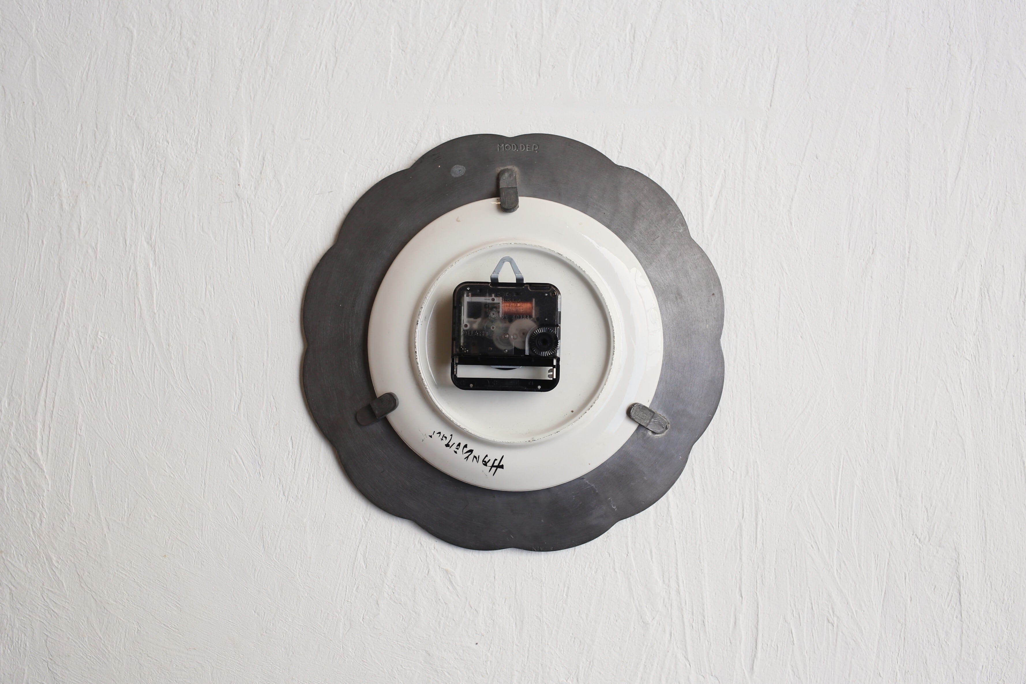 エタン×陶器の珍しい時計ですが、壁に掛けるだけで絵になる素敵な時計です。