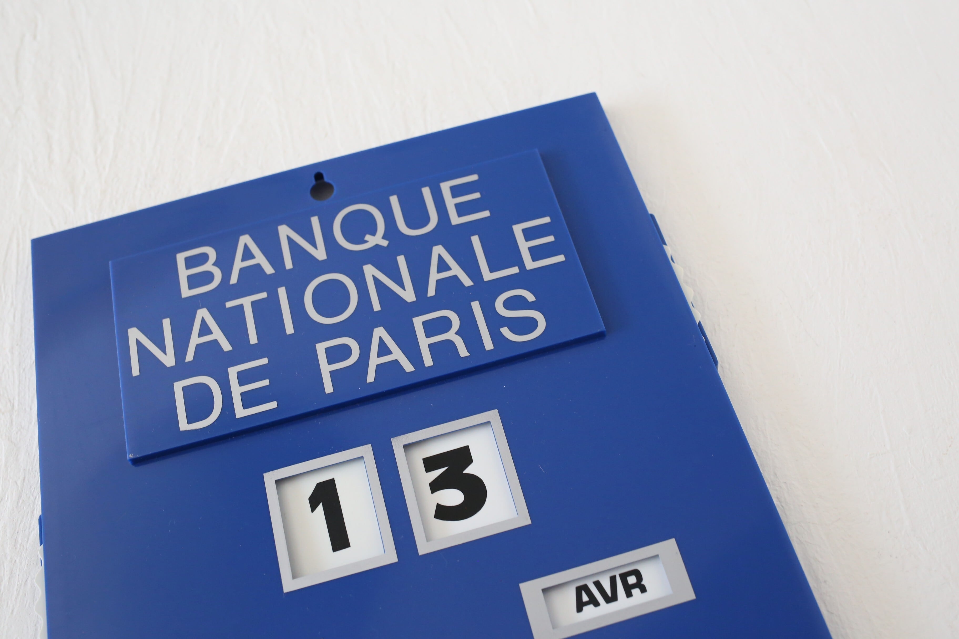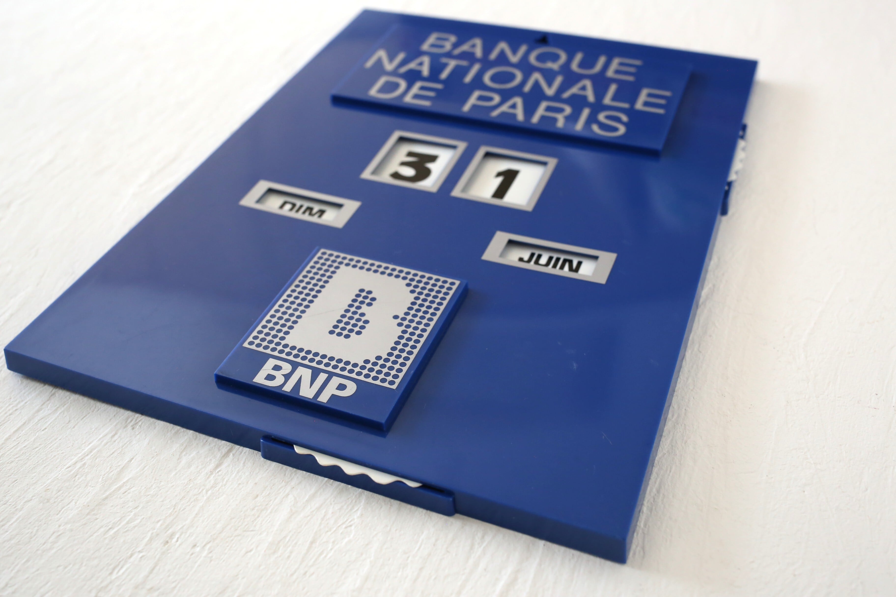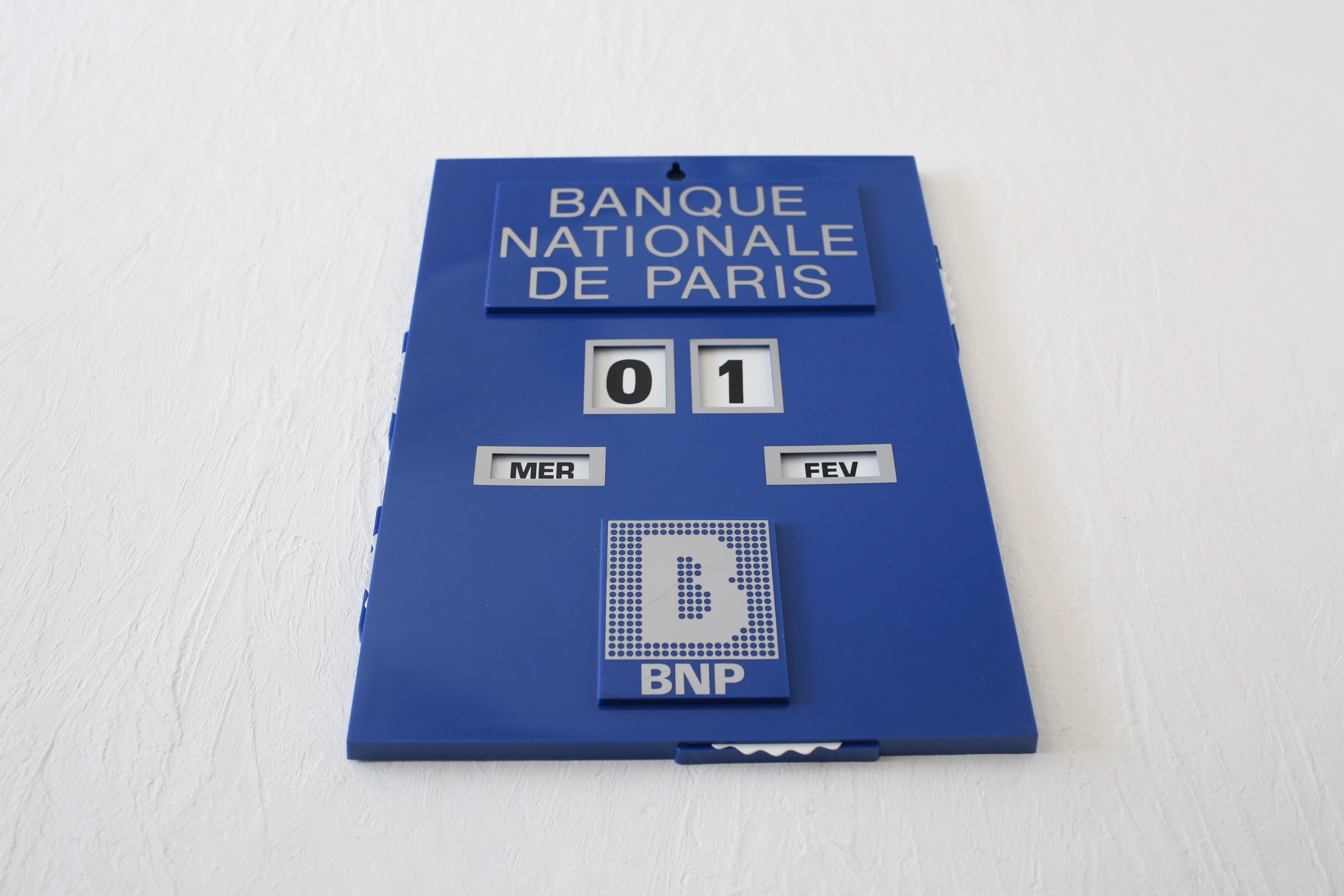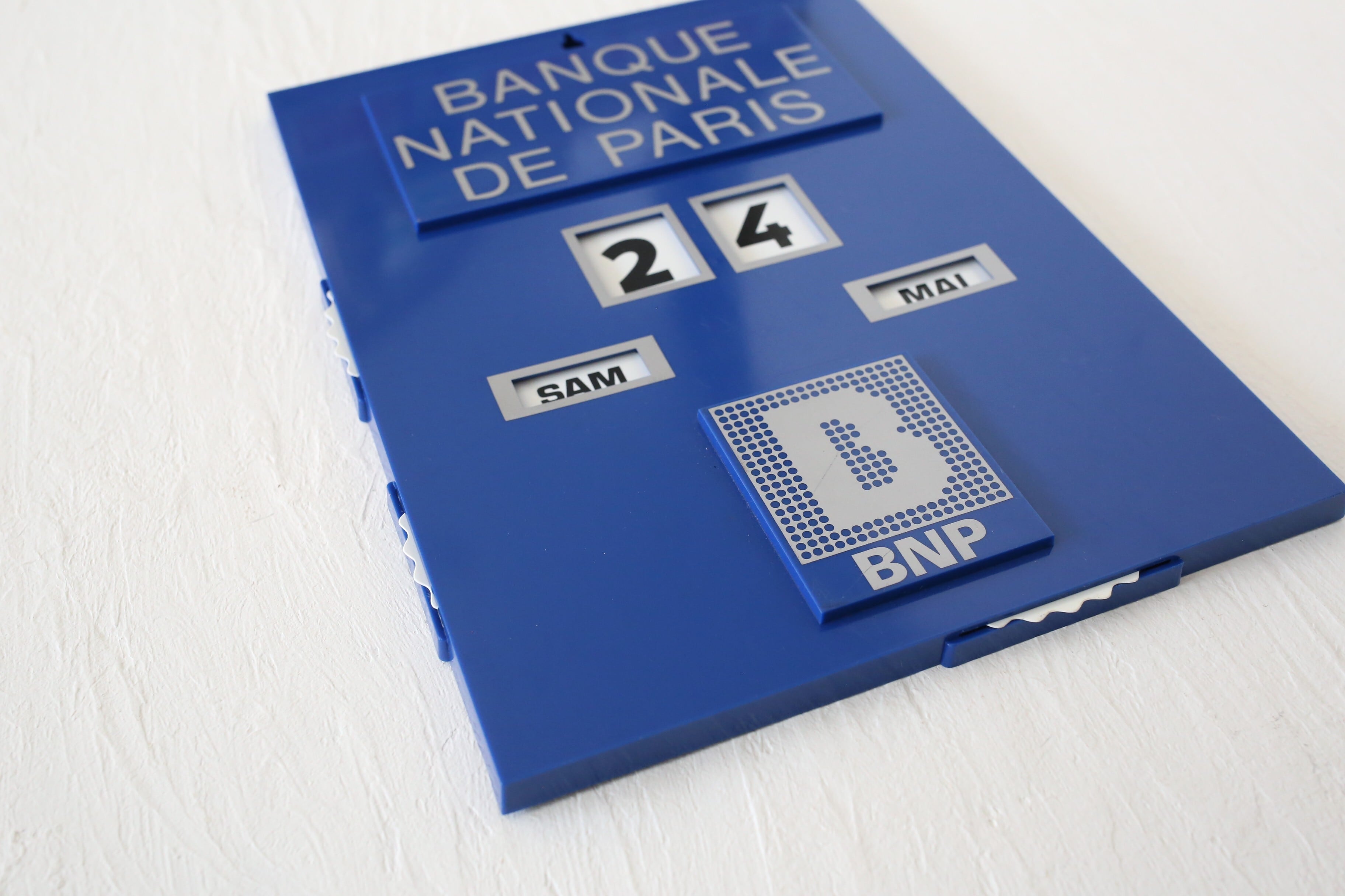 フランス アンティーク ヴィンテージ 壁掛け用 万年カレンダー 『BNP(パリ国立銀行)』 プラスチック製 N-06437