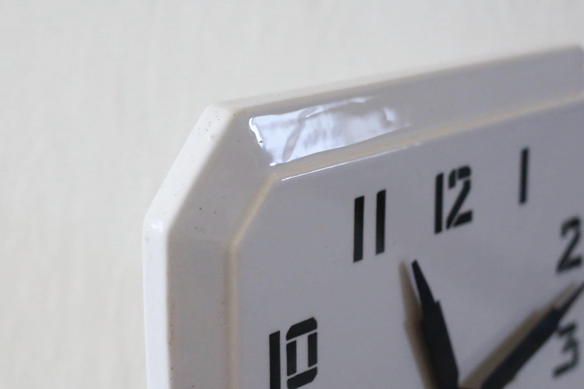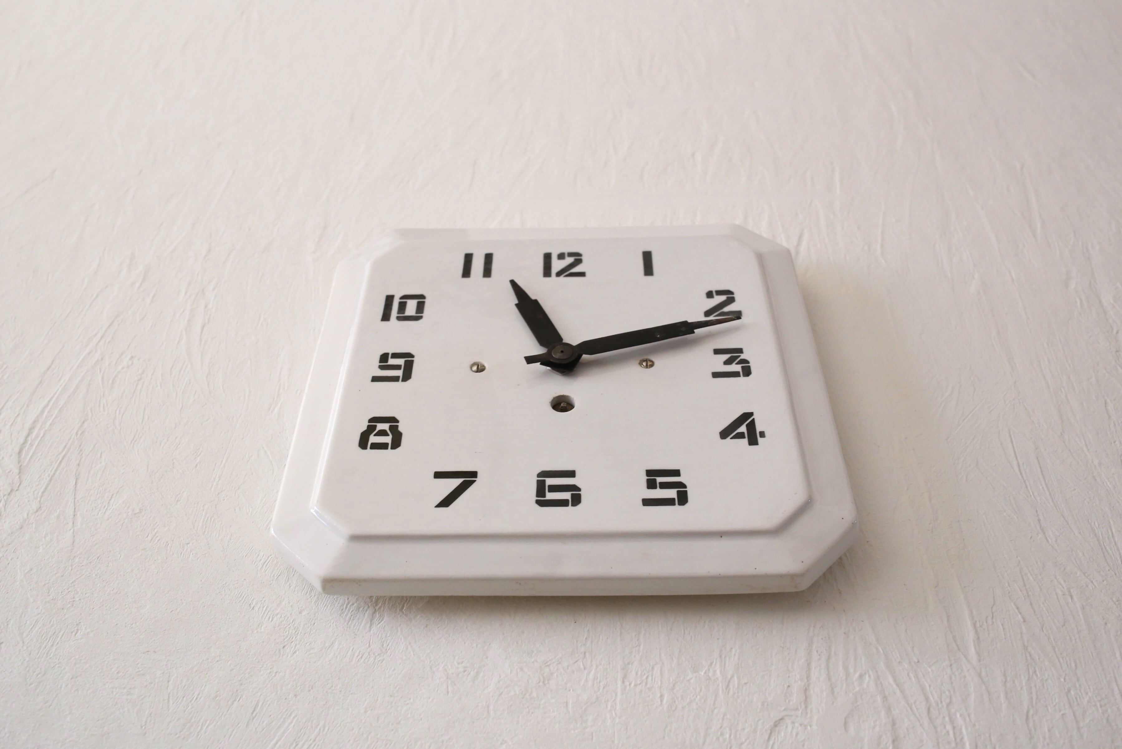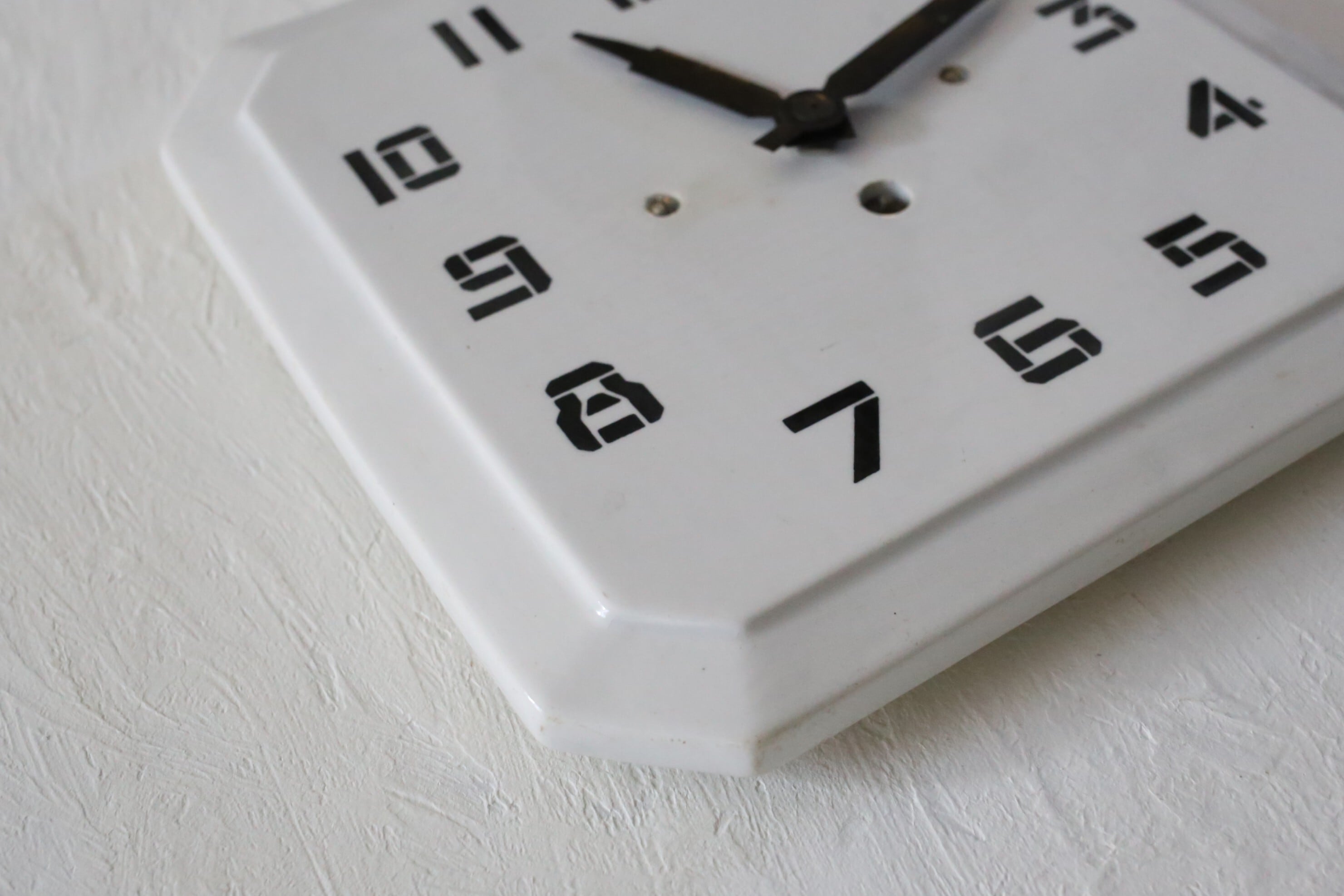 パリの蚤の市で見つけた陶器の八角形の壁掛け時計です。