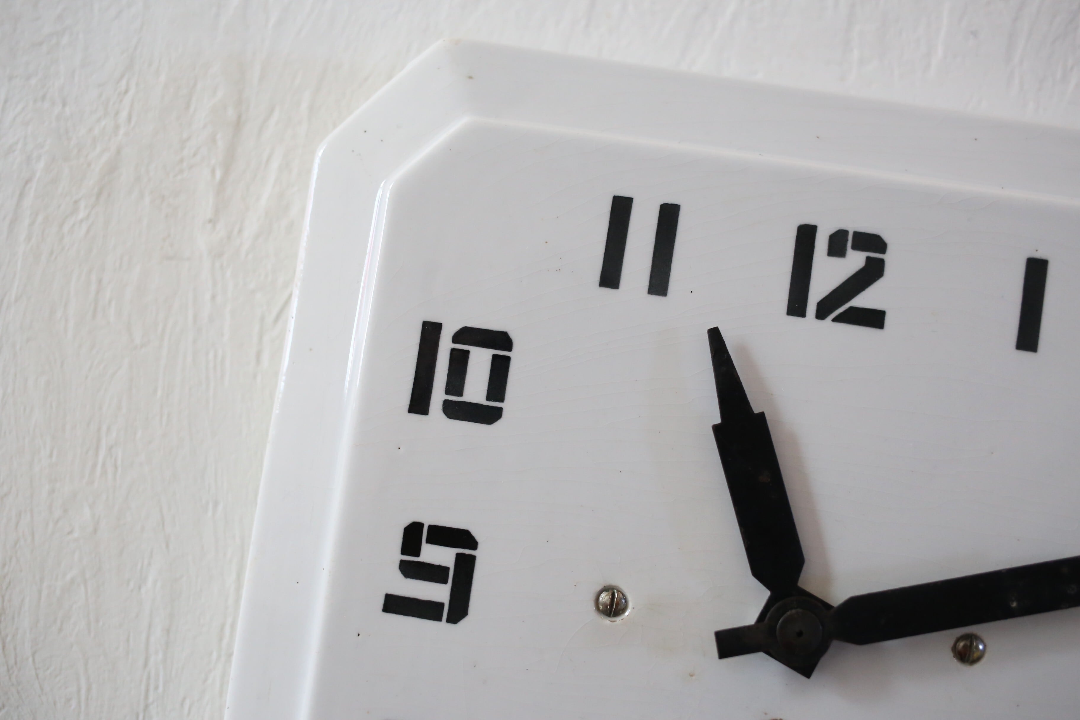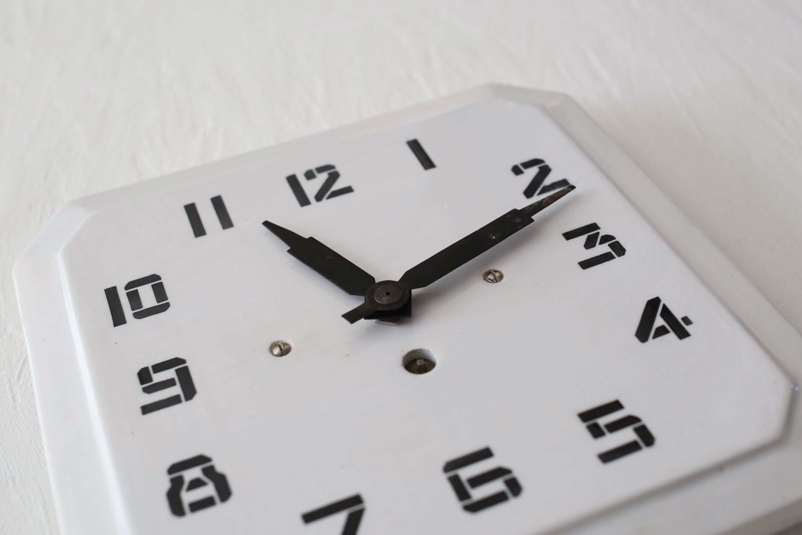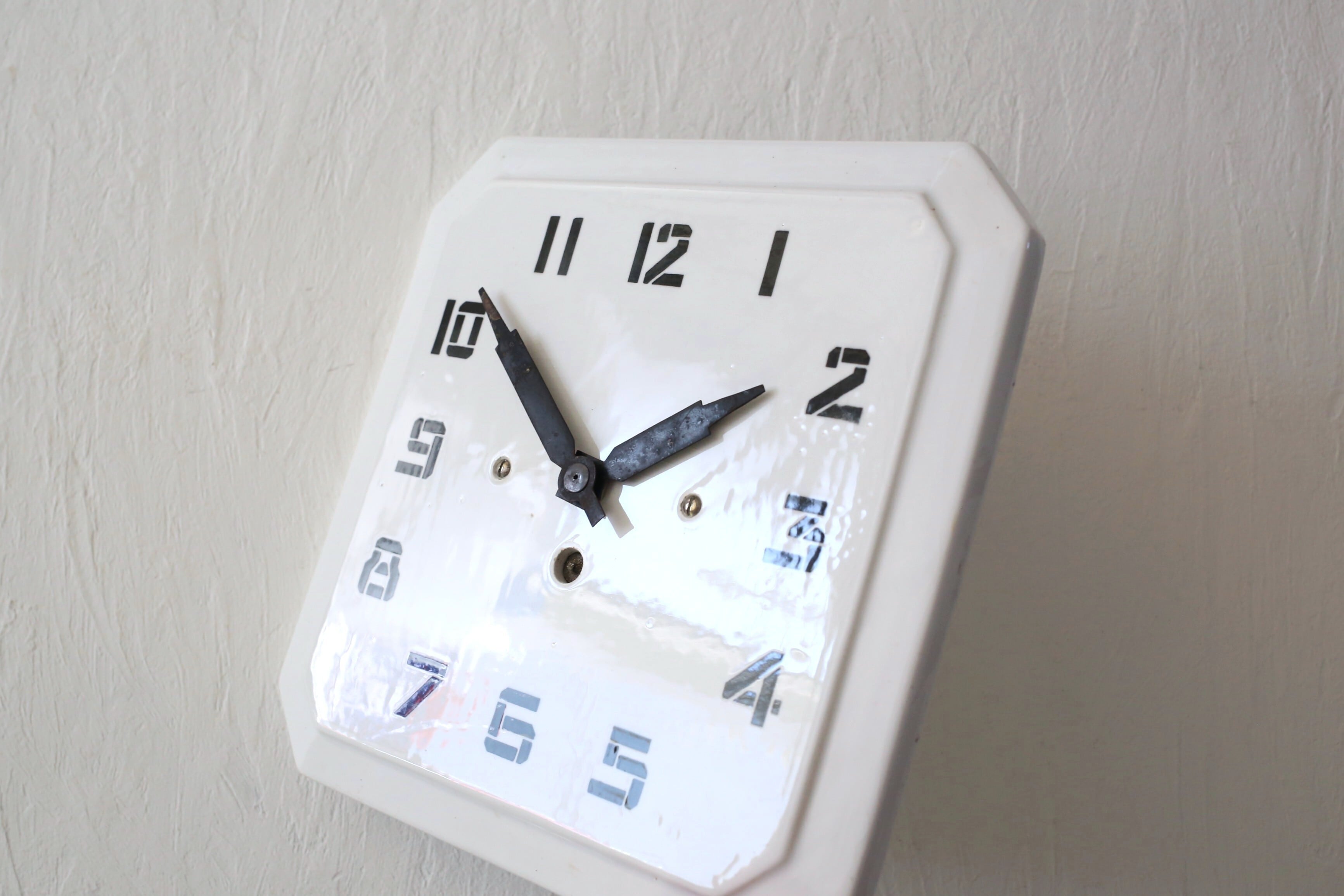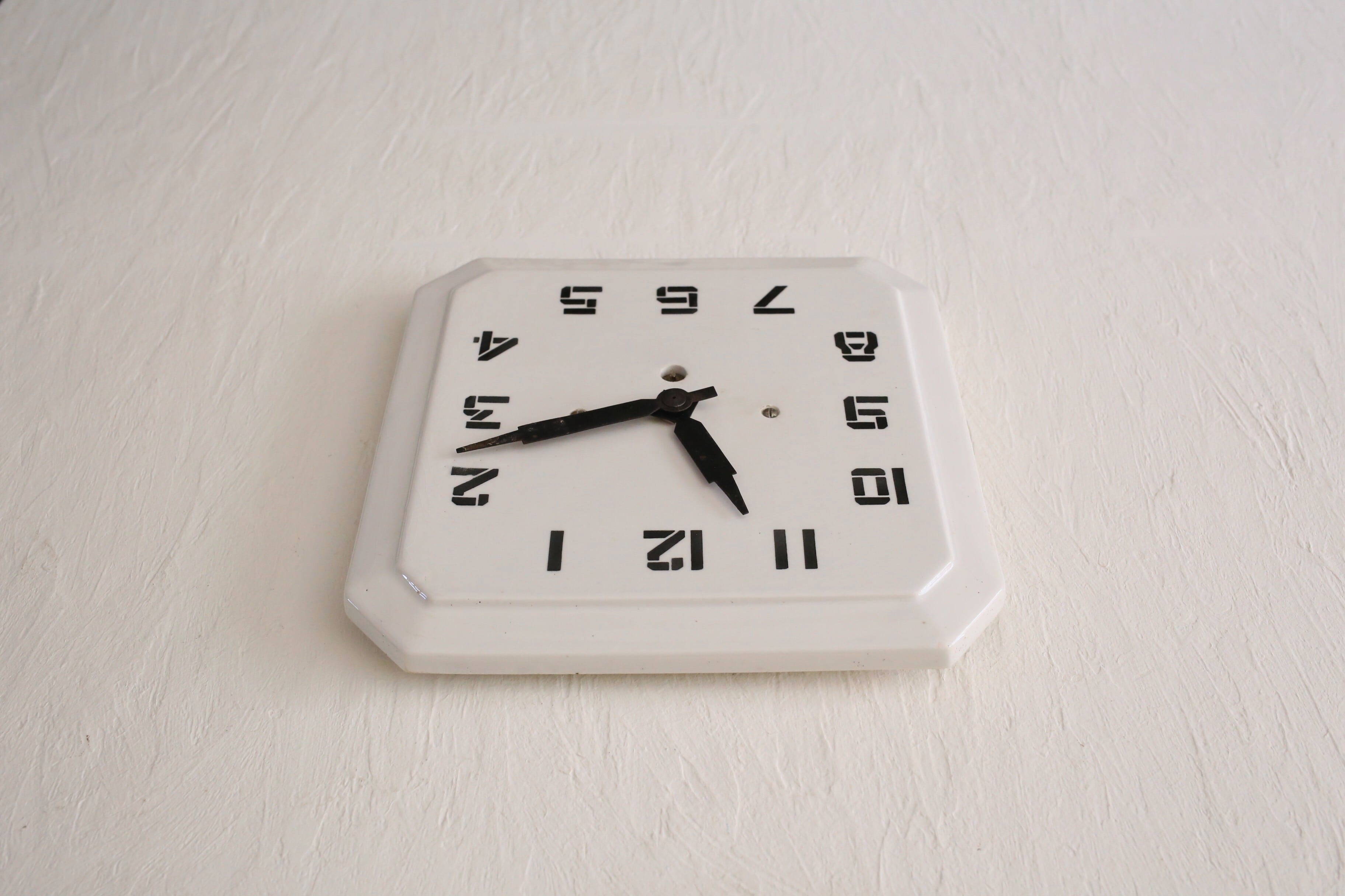 パリの蚤の市で見つけた陶器の八角形の壁掛け時計です。